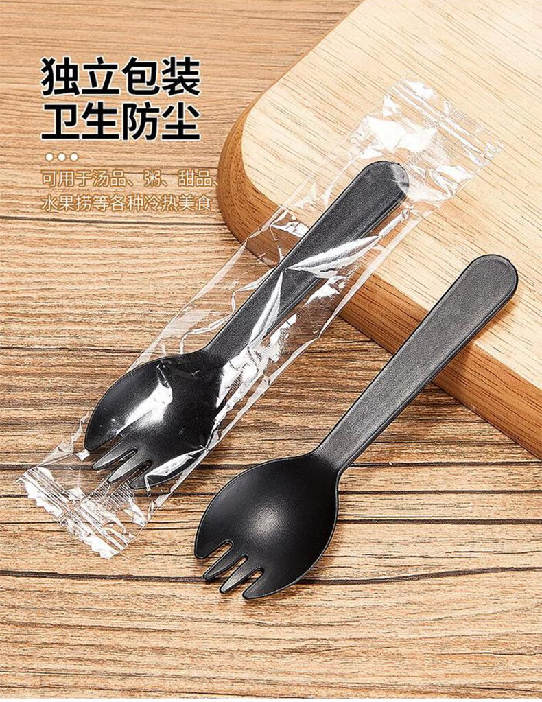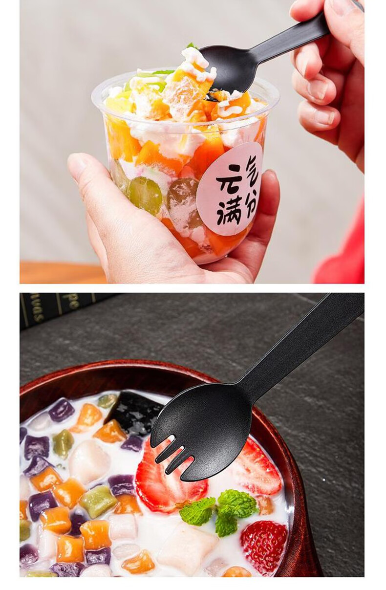 Pick-up disposable forks and spoons, 100 pieces, individually packaged frosted fruit cake dessert spoons, thickened plastic spoons