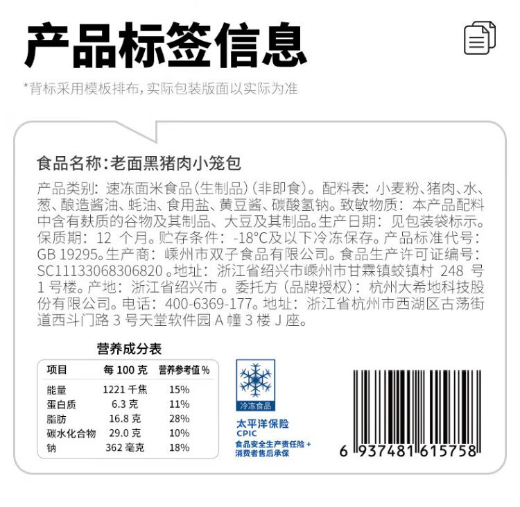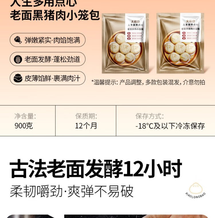 Dahiti Shengzhou old noodles black pork steamed buns 900g about 36 pieces fresh meat handmade steamed buns instant frozen breakfast