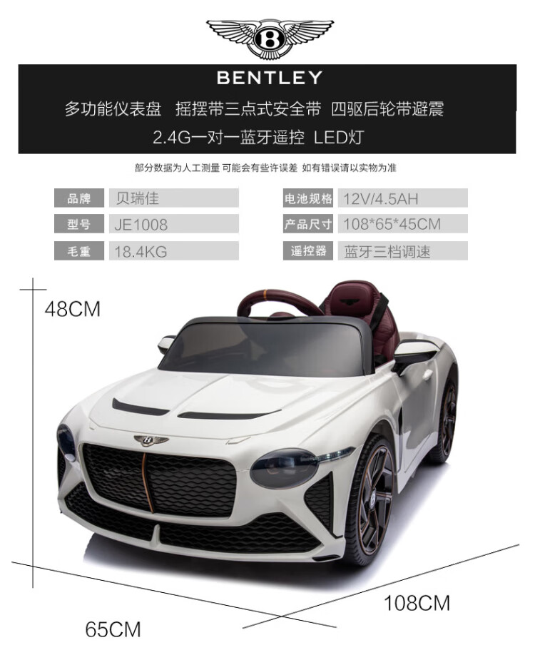 BeRica Bentley authorized baby electric car remote control four-wheel car baby toy car can sit on men and women gifts