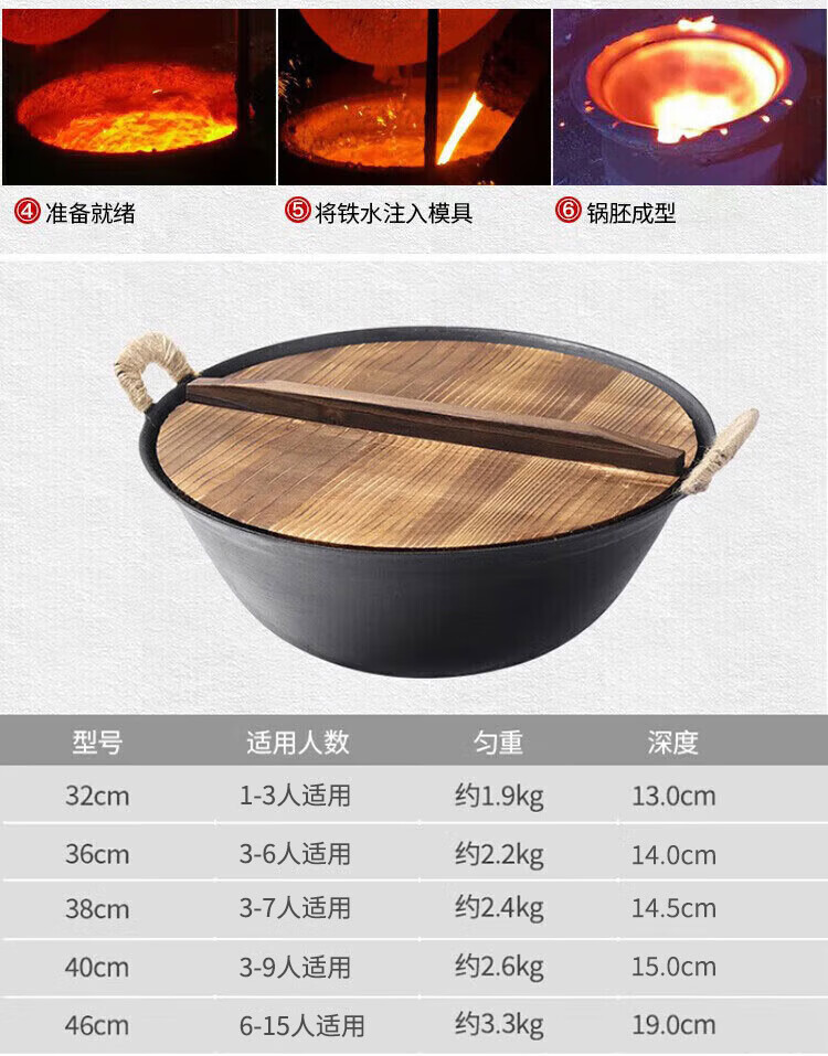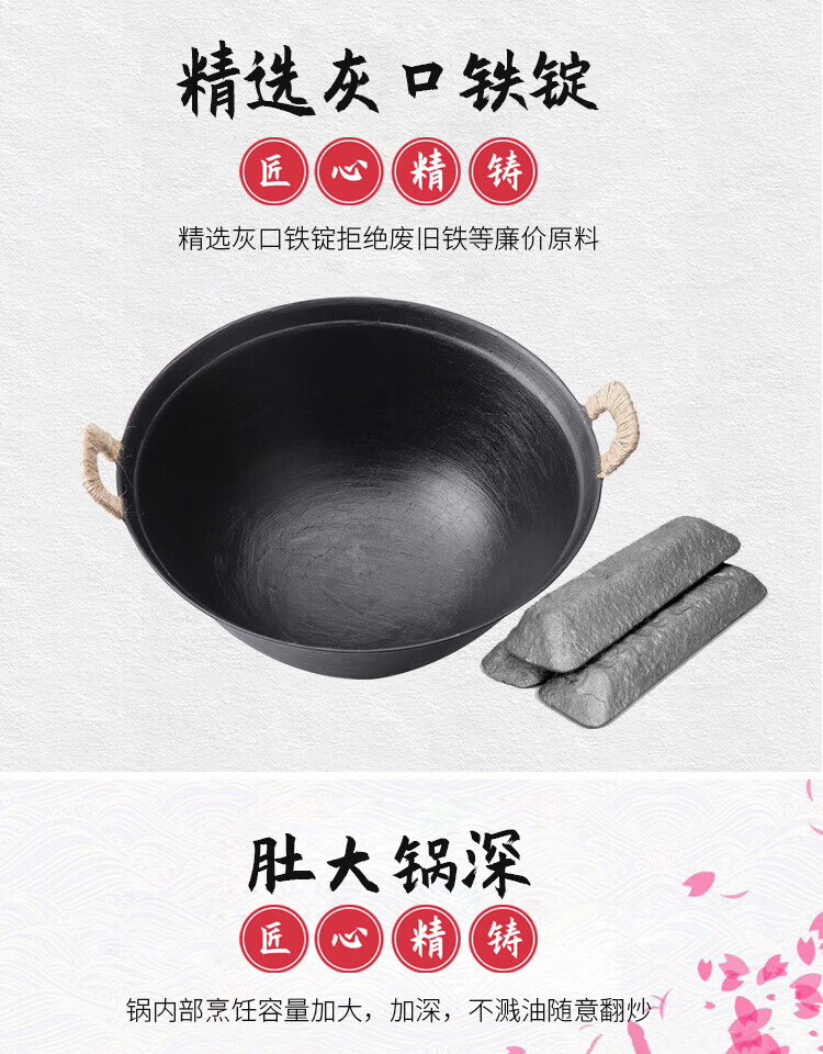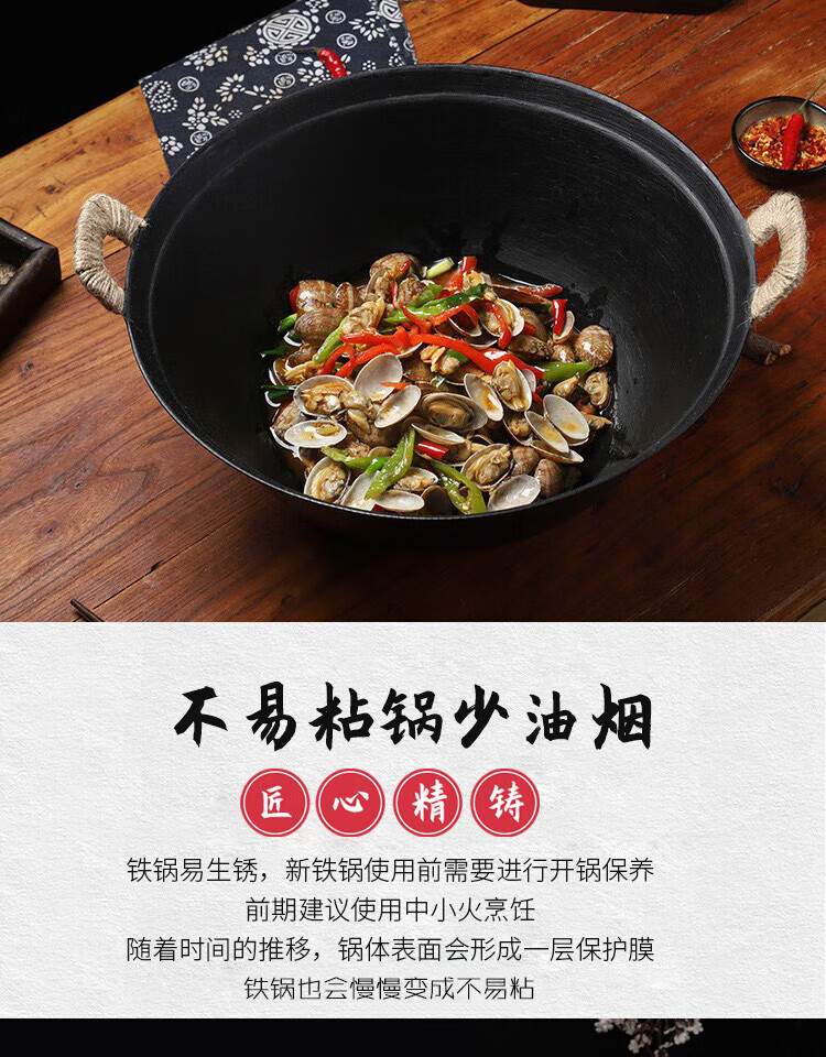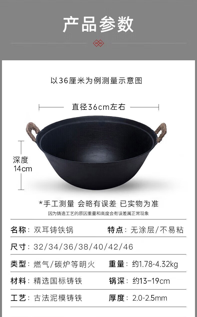 Xia Laoda Zhangqiu cast iron wok ancient method uncoated physical non-stick wok round bottom double ear wok 36