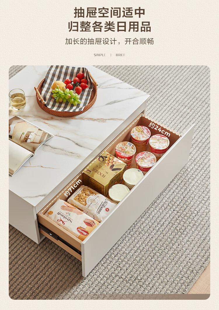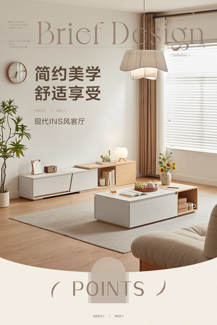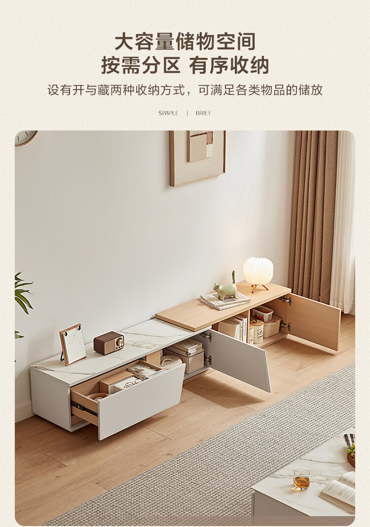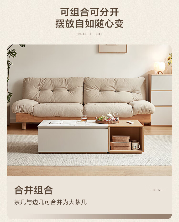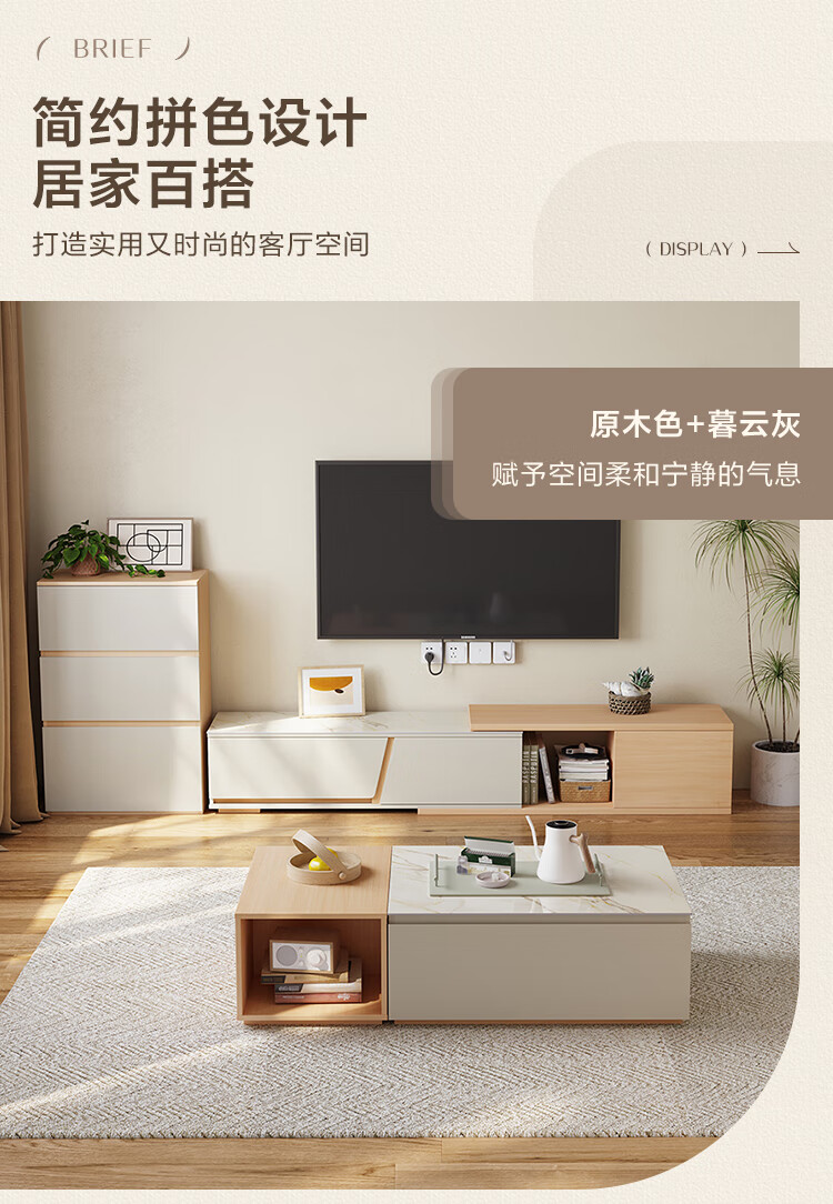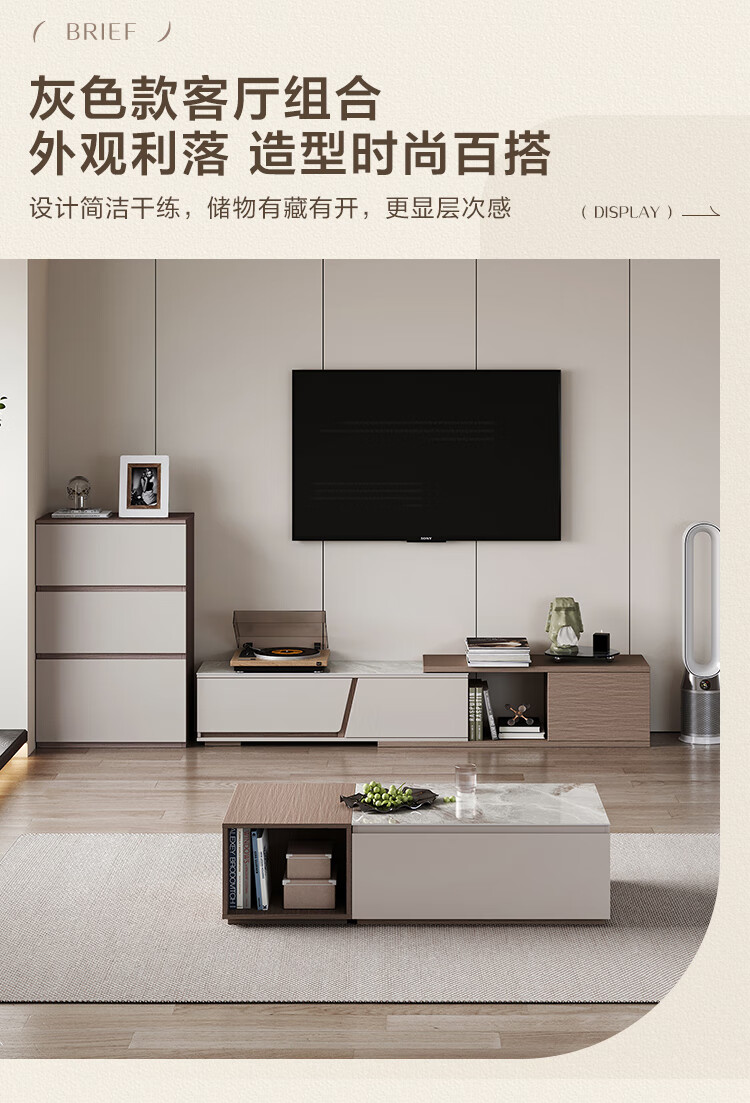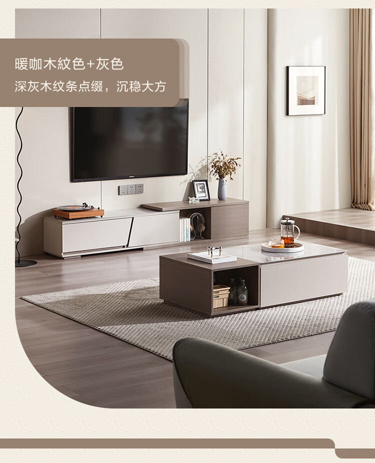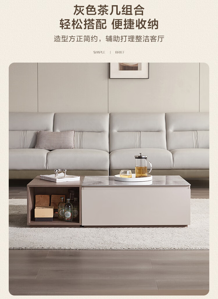 Lin's Home Simple Slate Telescopic TV Cabinet Coffee Table Drawer Cabinet Living Room OV2L Gray Square Coffee Table + Side Table