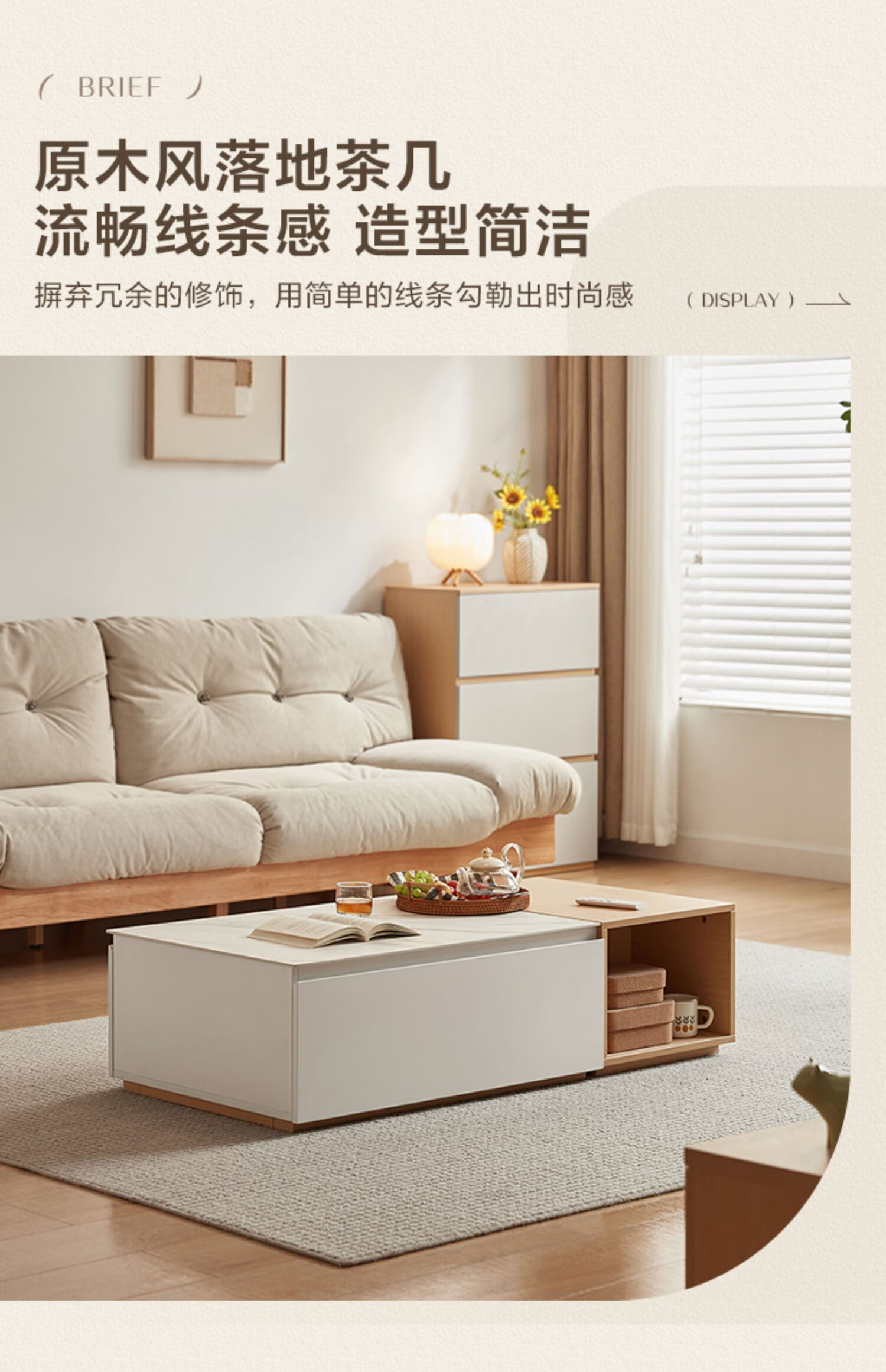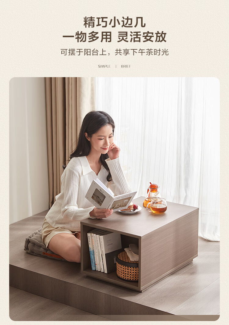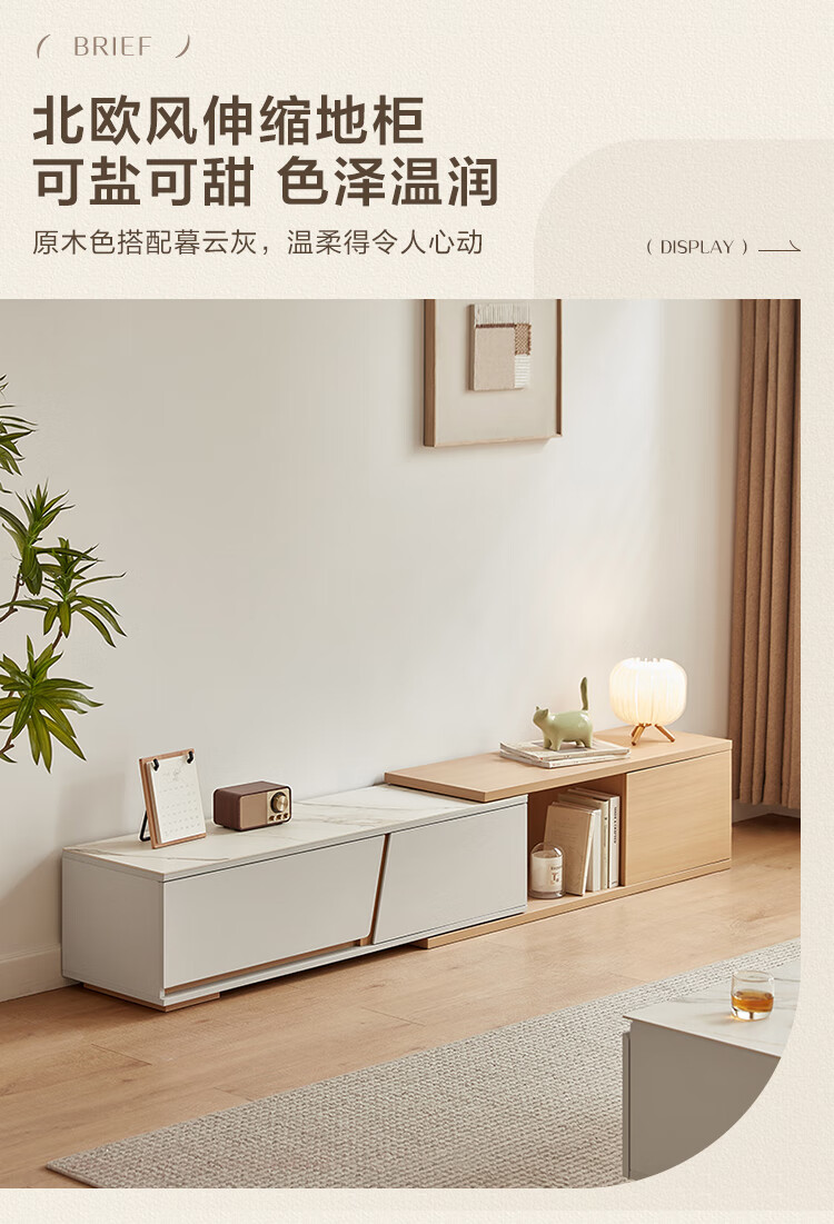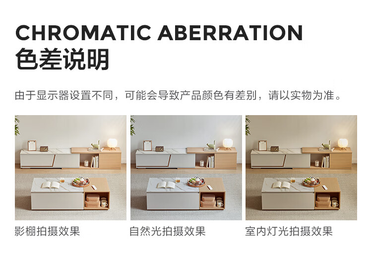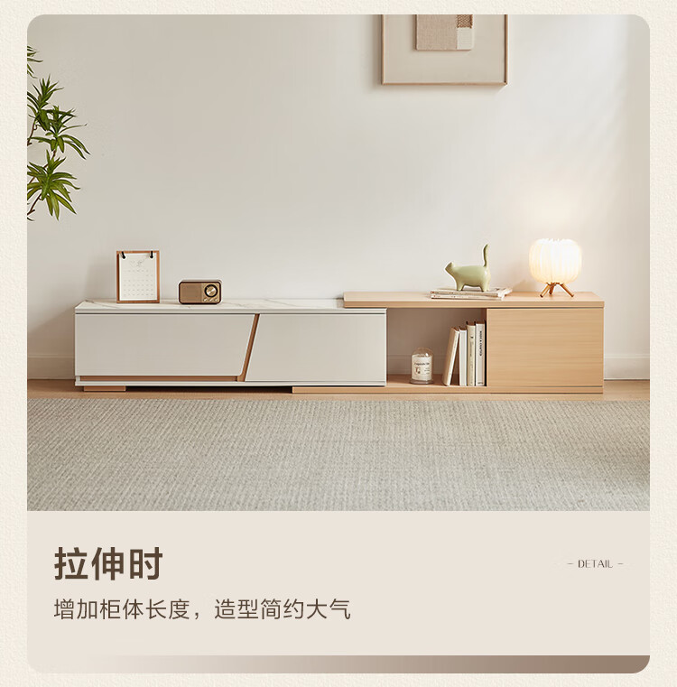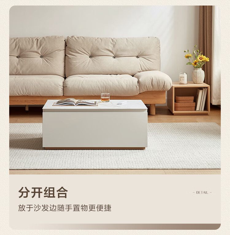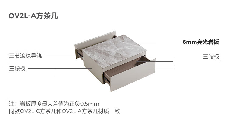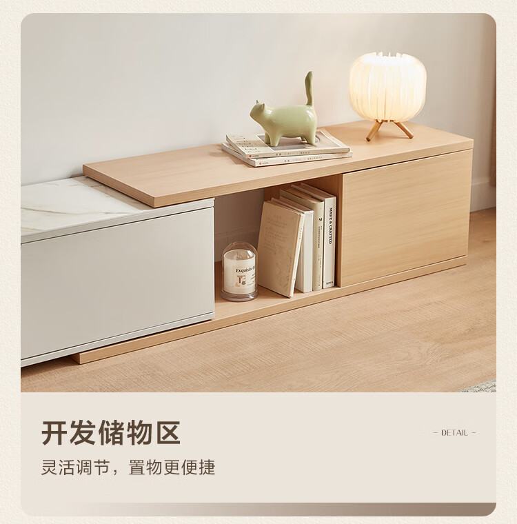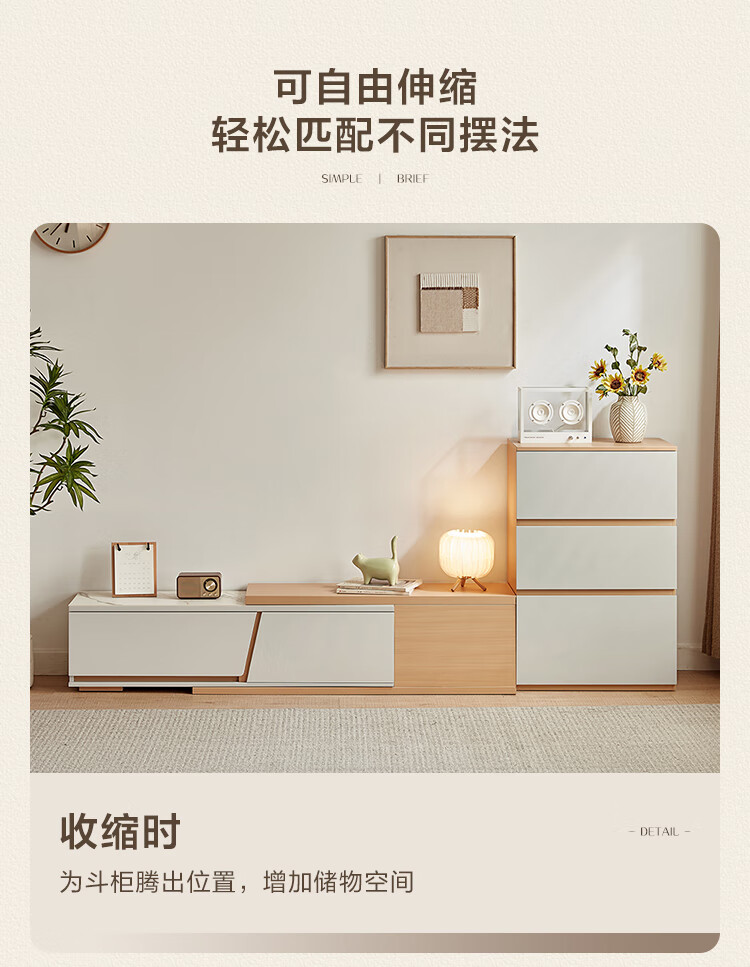 Lin's Home Simple Slate Telescopic TV Cabinet Coffee Table Drawer Cabinet Living Room OV2L Gray Square Coffee Table + Side Table