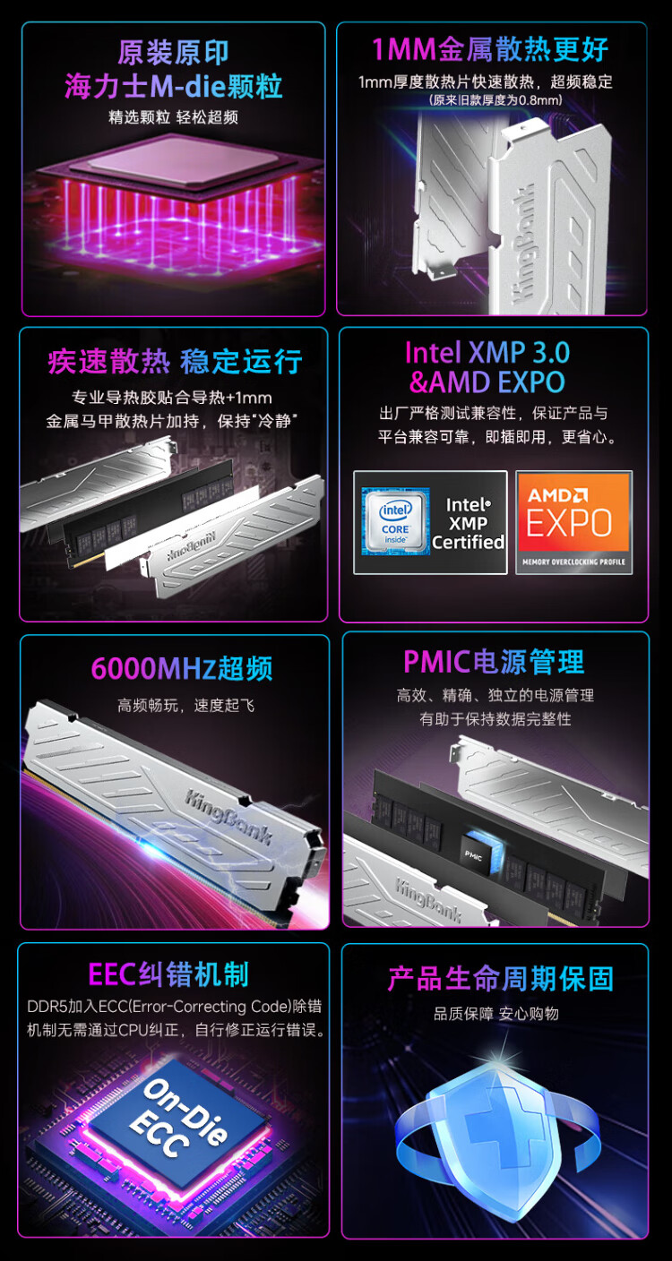 KINGBANK 64GB (32GBX2) set DDR5 6000 desktop memory Hynix M-die particles Yinjue C36 Deepseek hardware
