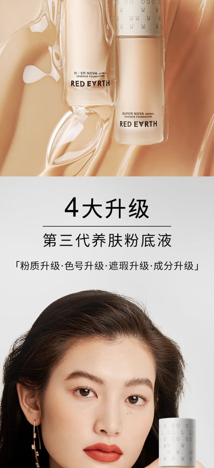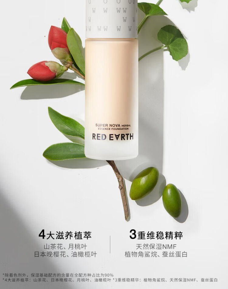 Red Earth Liquid Foundation F400L 30g + Loose Powder 6.5g Concealer, Nourish Skin, Oil Control, Long-lasting Gift Box for Girlfriend and Wife