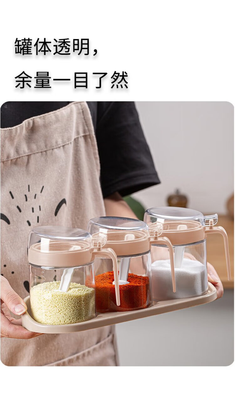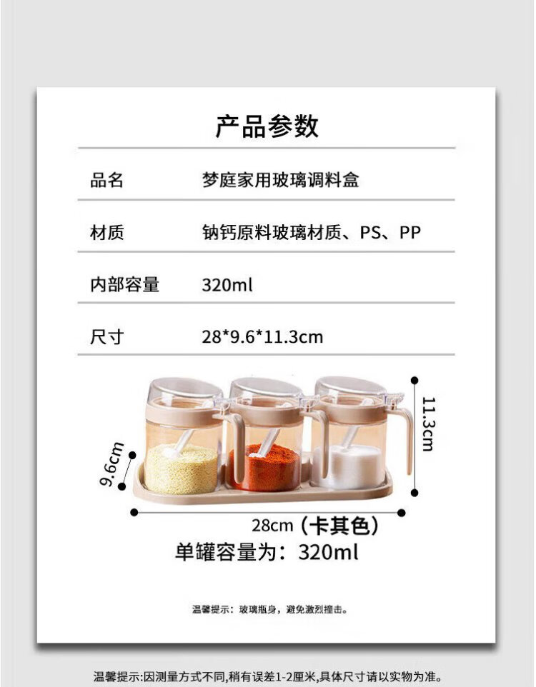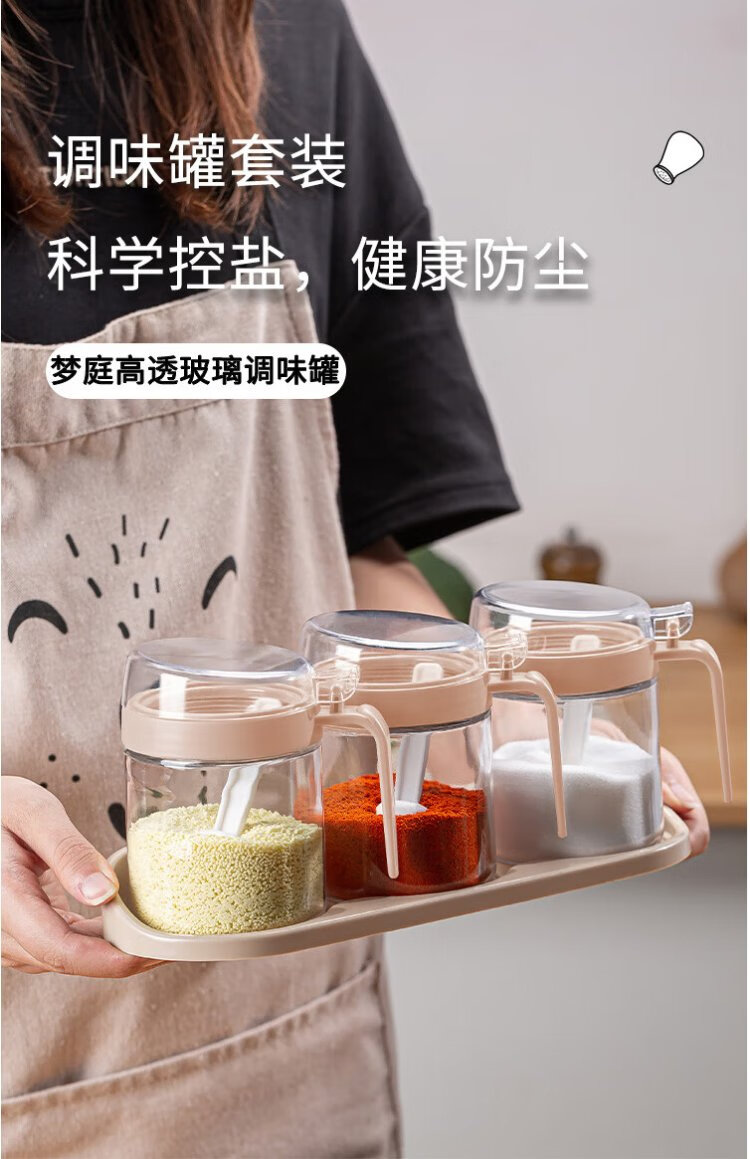 Mengting glass seasoning box seasoning bottle household salt shaker seasoning jar set seasoning box 3-piece set with storage rack