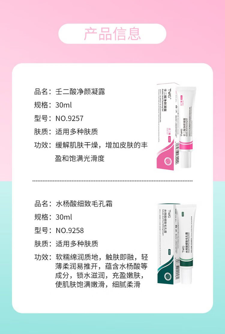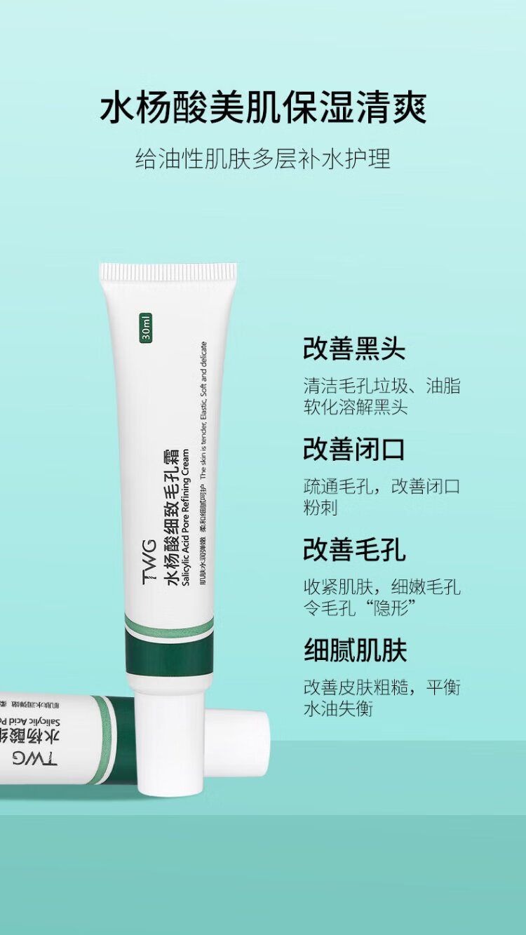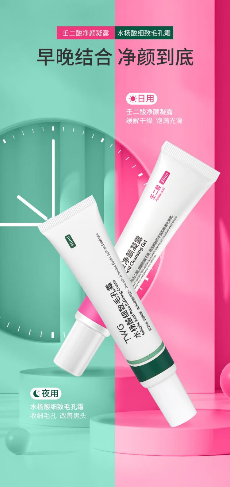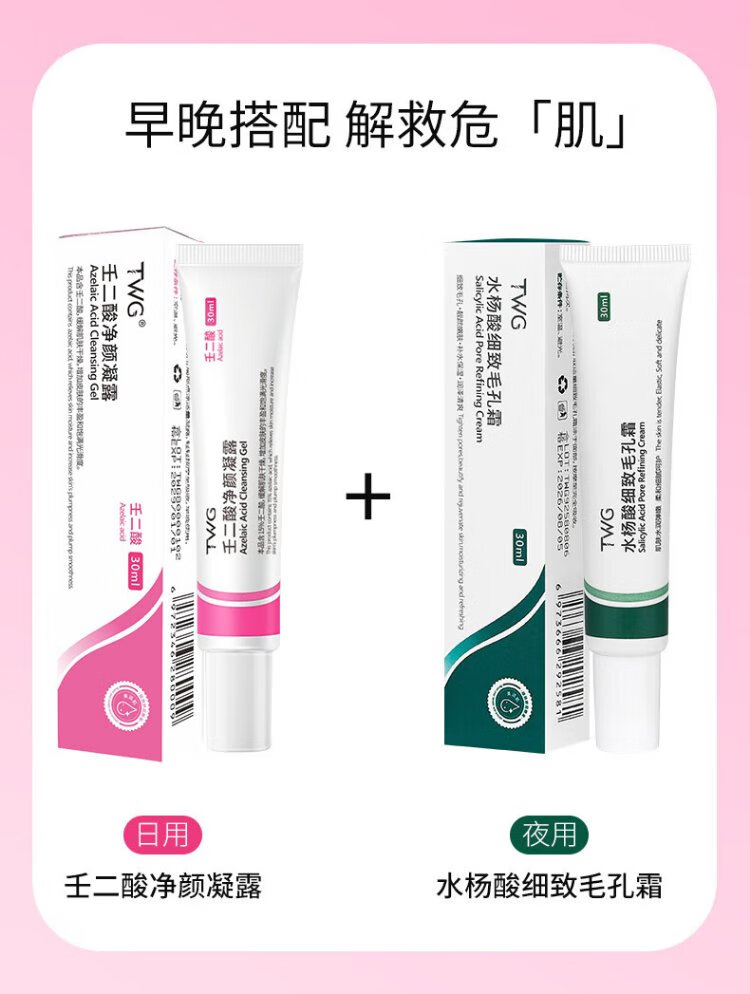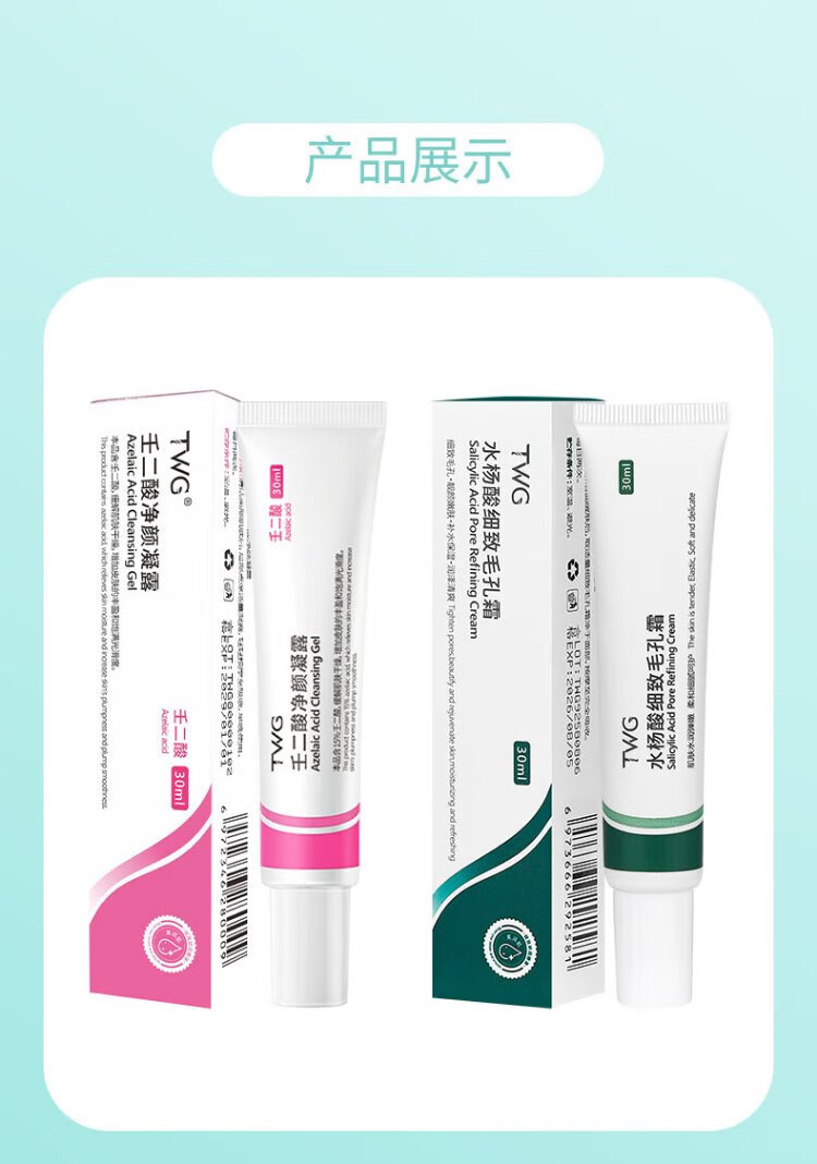 TWG Azelaic Acid 15% 30ml*2 Gel with Salicylic Acid Pore Refining Cream Blackhead Closed Acne Set