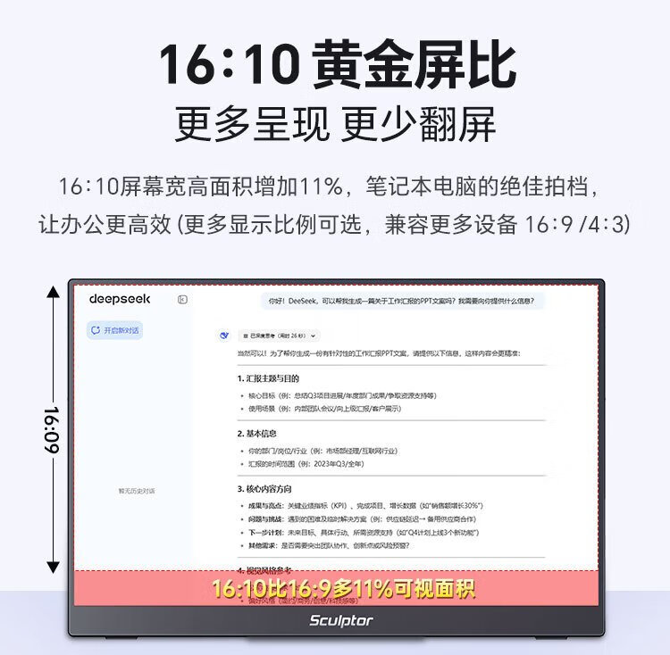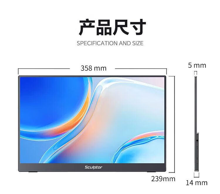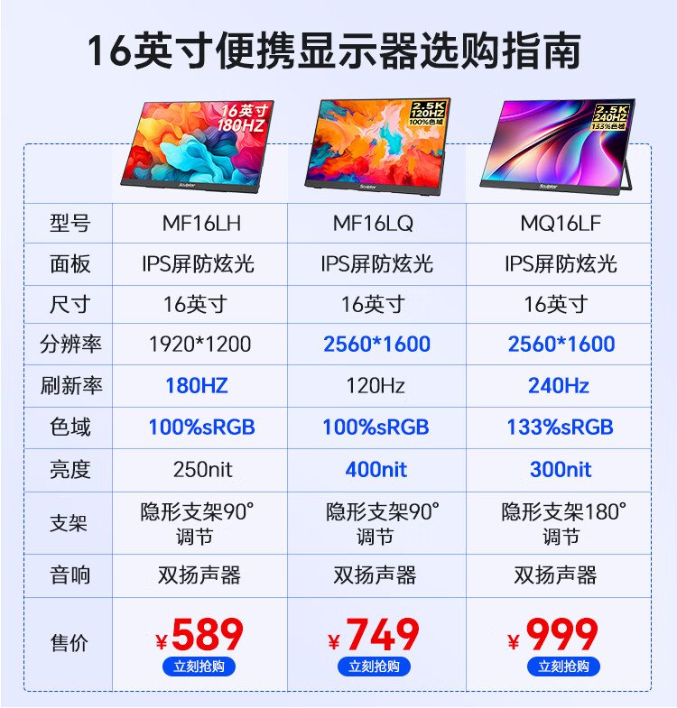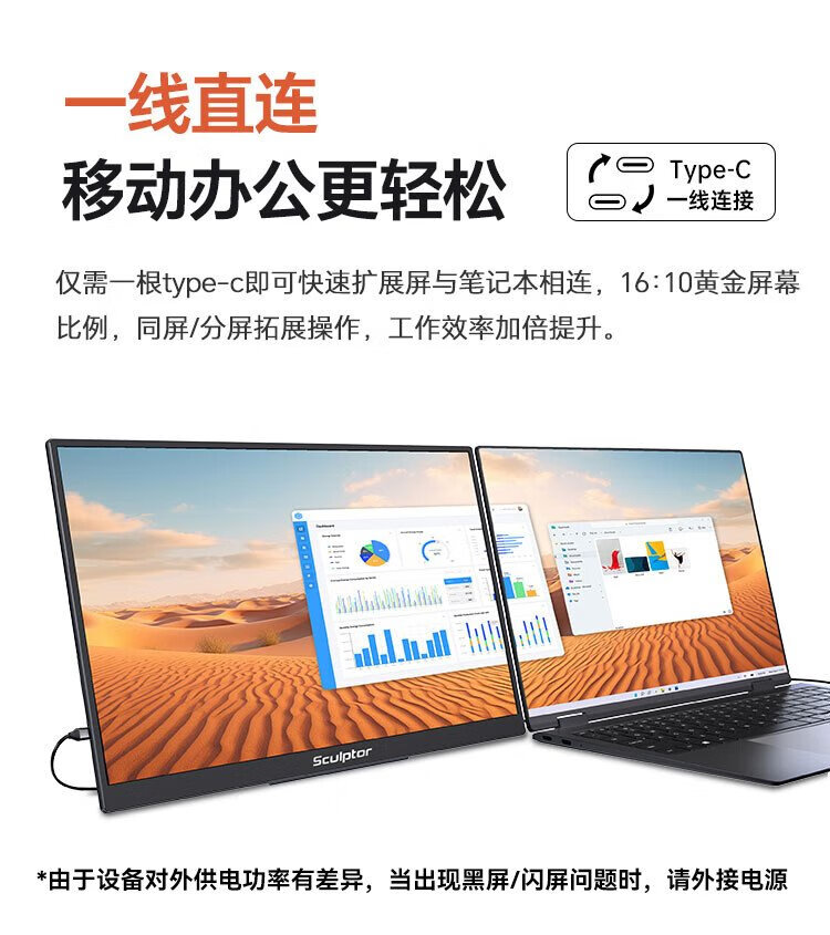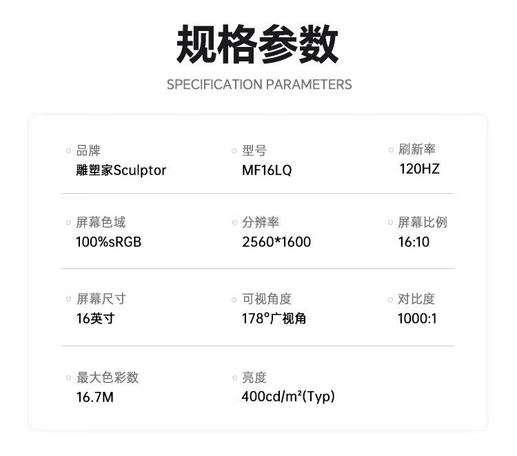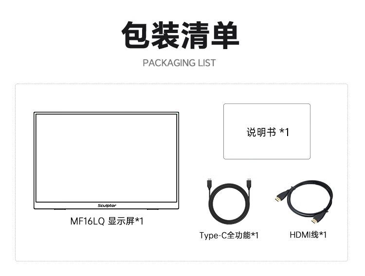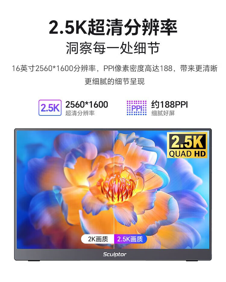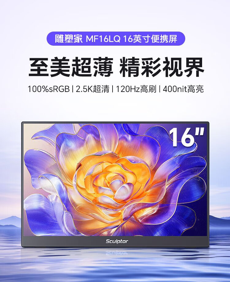 Sculptor 16-inch 2K/2.5k portable monitor 120Hz high brush 100% sRGB color gamut computer notebook secondary screen switch mobile phone PS5 extended screen MF16LQ