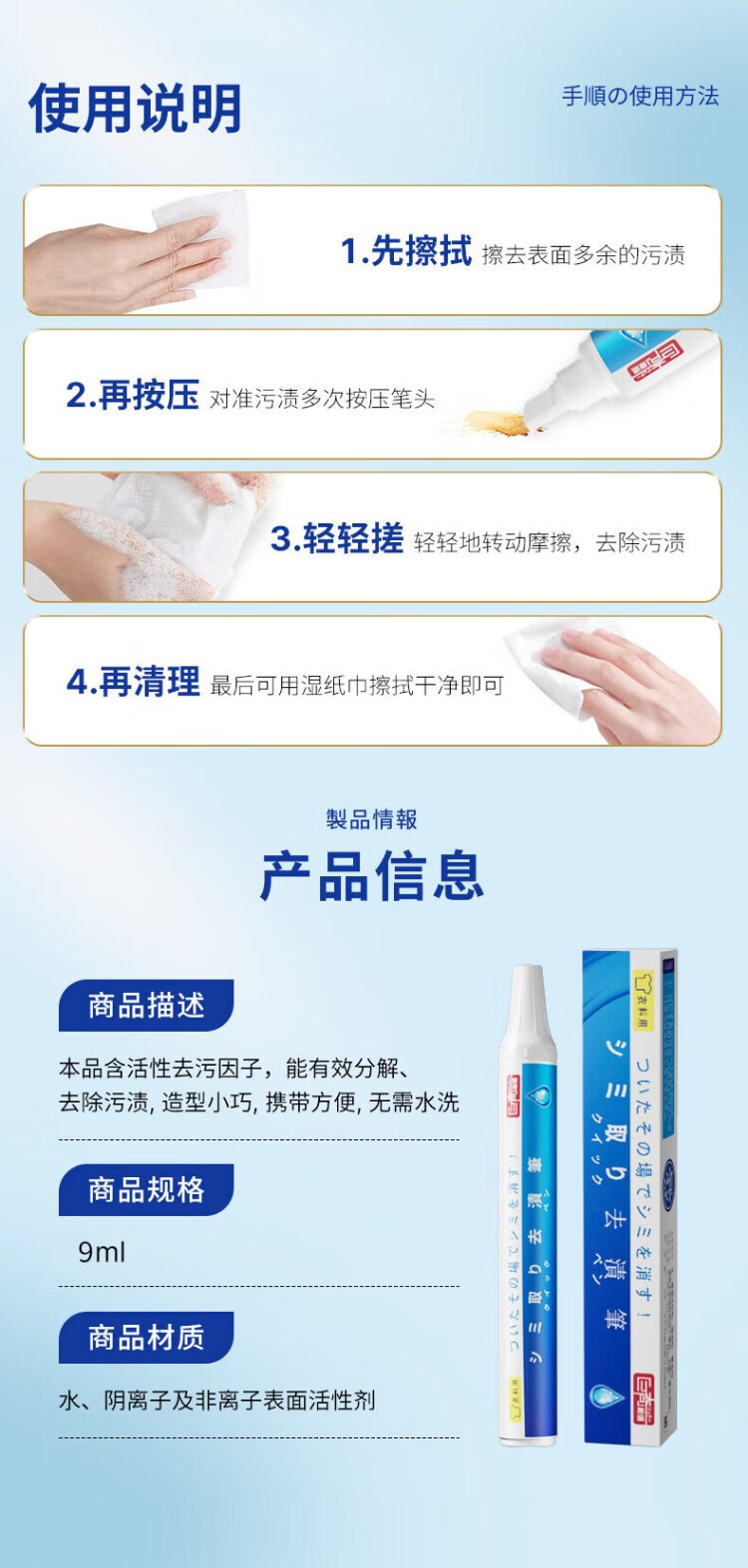 Juqi carefully selected stain remover pen 9ml oil stain remover ballpoint pen stubborn stain remover stain remover artifact
