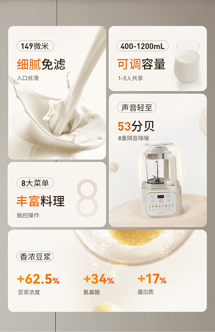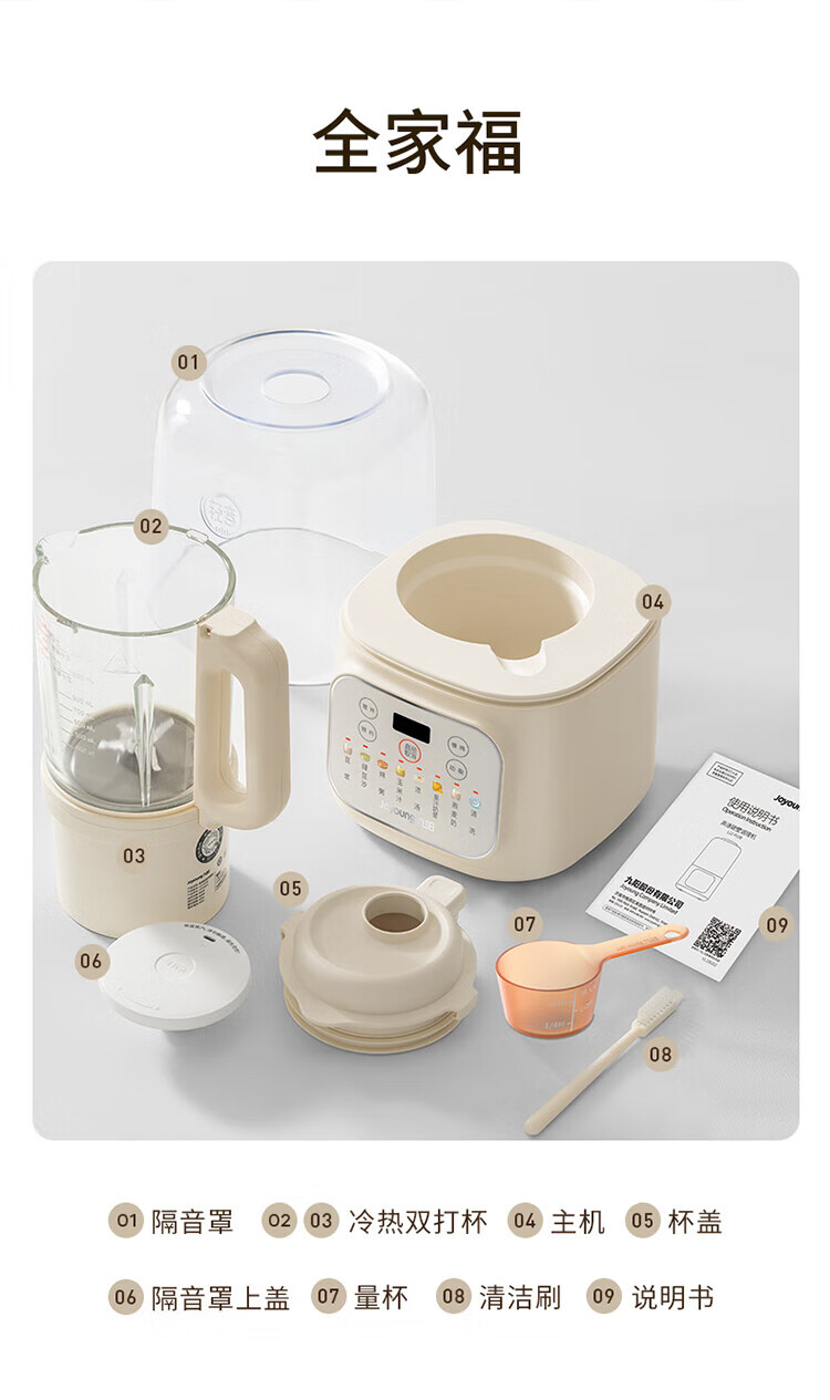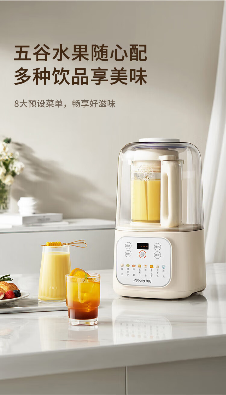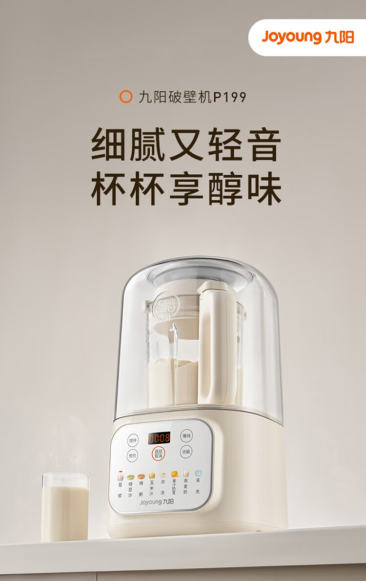 Joyoung Bass Wall Breaker Household Fully Automatic Soybean Milk Machine Light Juicing and Cooking Machine 1.2L Compact Small Grain Wall Breaker for 2-3 People P199