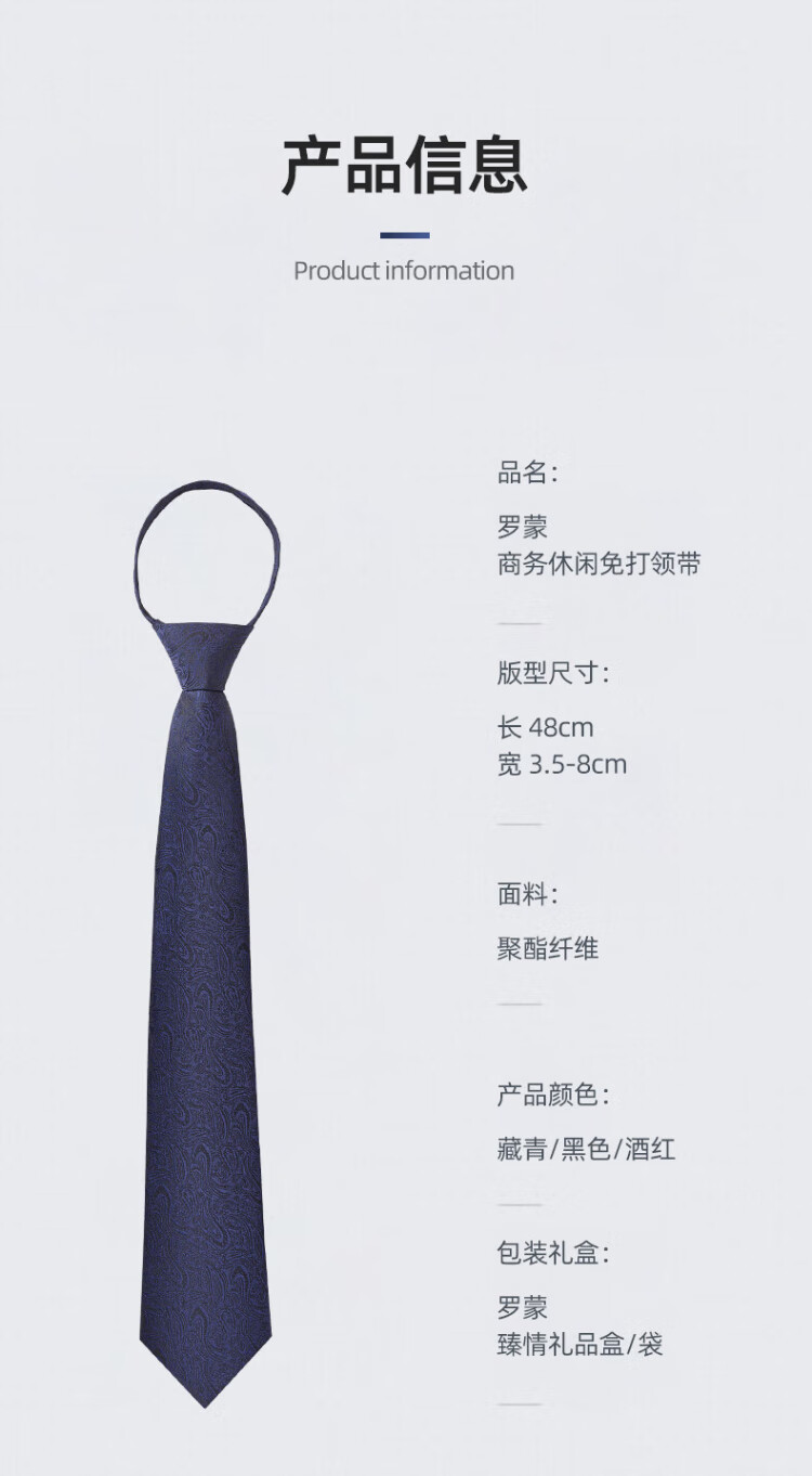 Romon men's tie 8cm hands-free business easy-to-tie classic versatile wedding professional fashion gift box for boyfriend