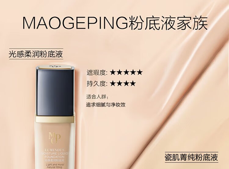 Mao Ge Ping Porcelain Jing Jing Pure Liquid Foundation 811 White Color 30ml Concealer Long-lasting Non-removing Makeup Birthday Gift for Women with Mixed Oily Skin