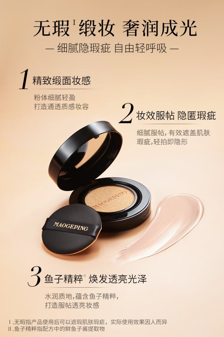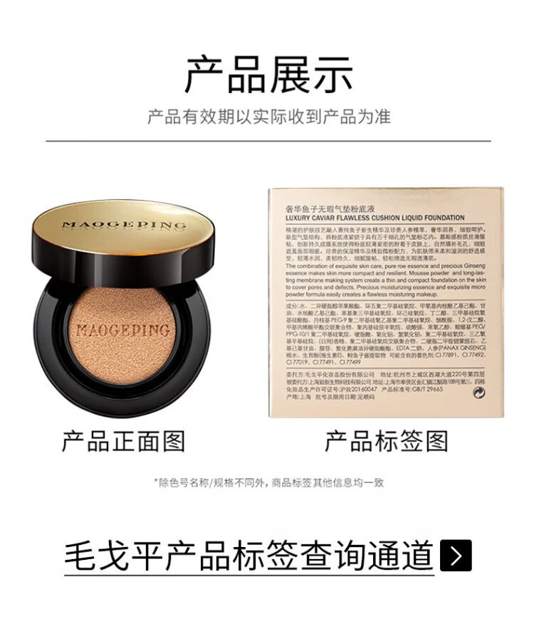 Mao Geping Caviar Cushion Foundation 801 White Color 14g Sunscreen Concealer Oil Control Moisturizing Long-lasting BB Cream Birthday Gift for Women