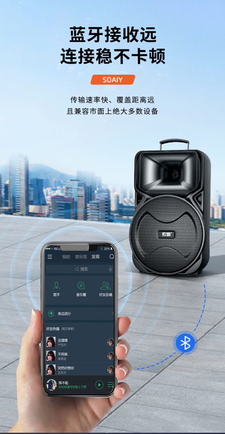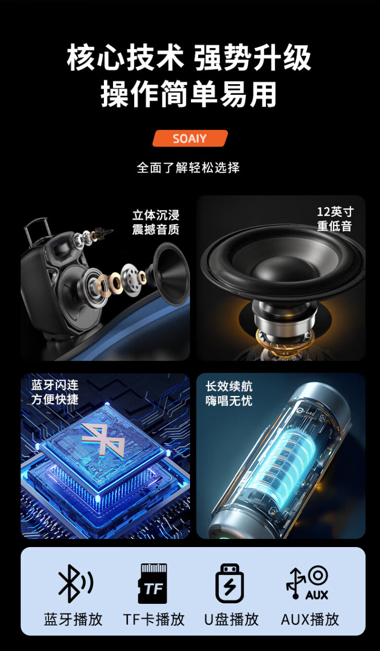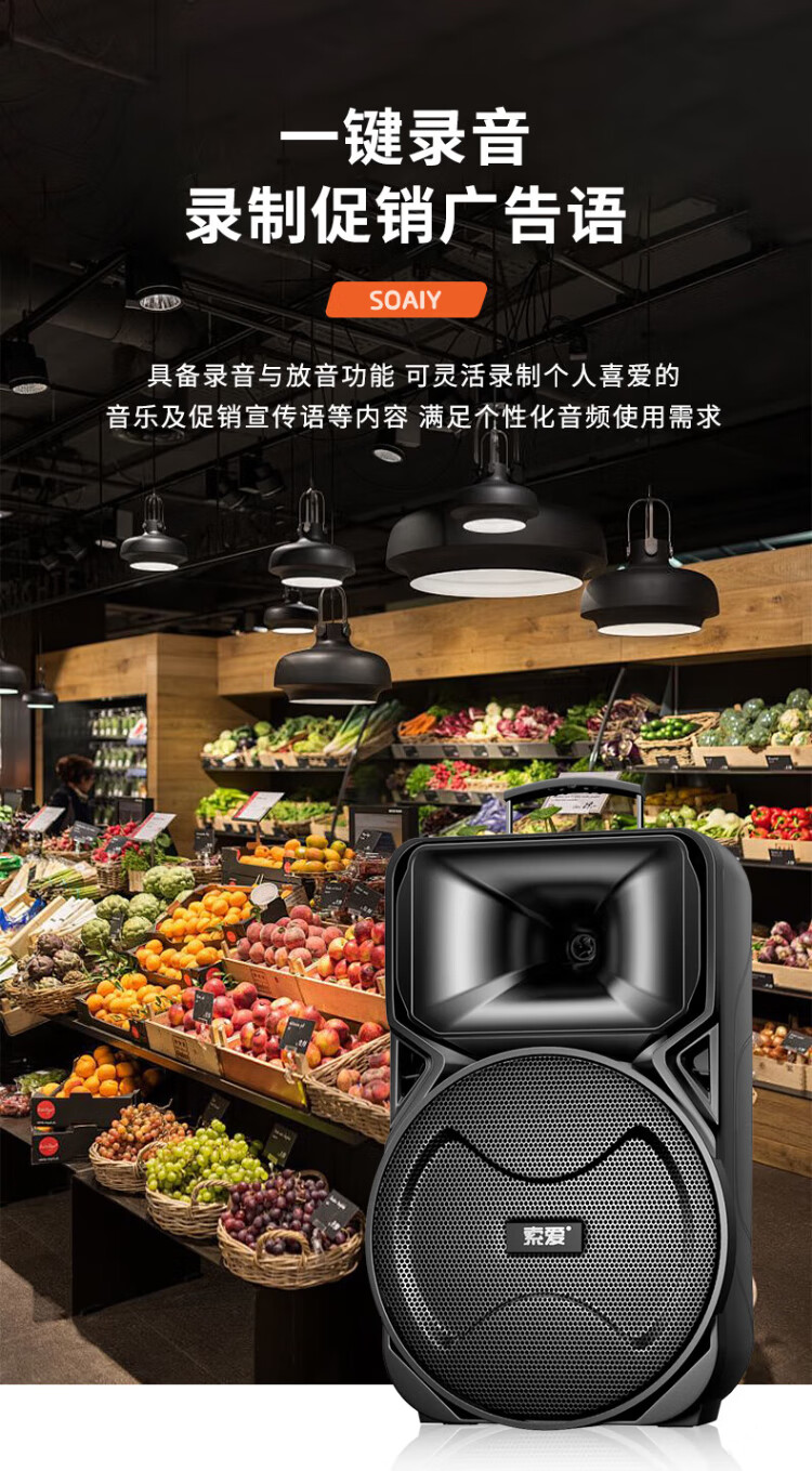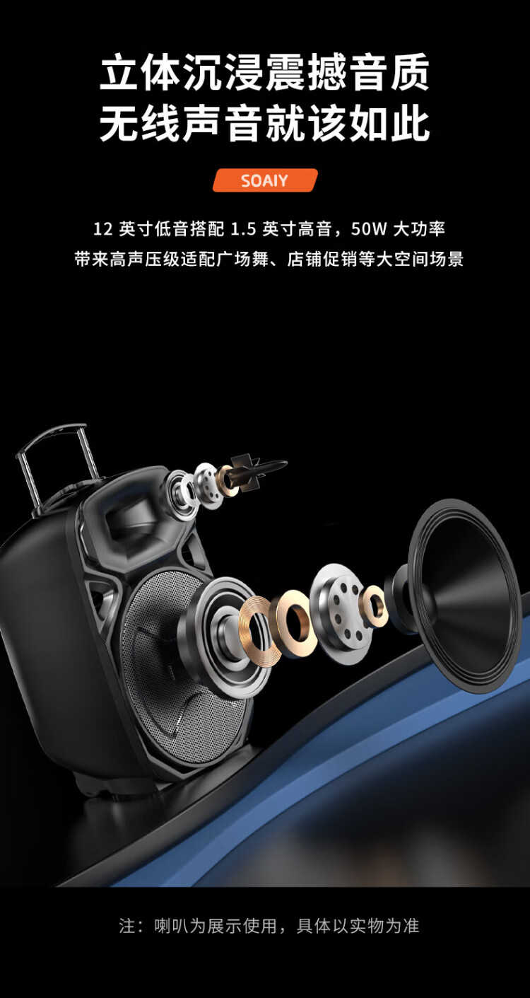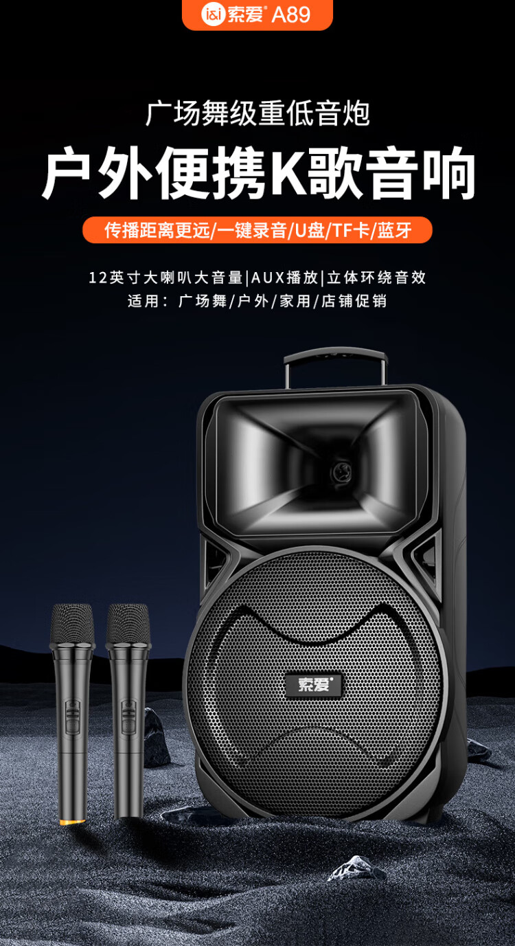 Sony Ericsson (soaiy) 12-inch square dance audio high-power portable outdoor heavy bass Bluetooth karaoke special high-volume mobile trolley speaker outdoor performance equipment dual microphone A89WM