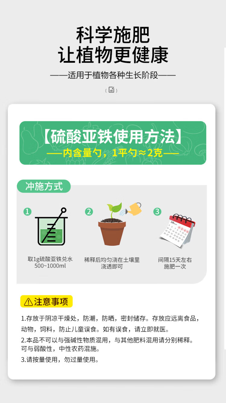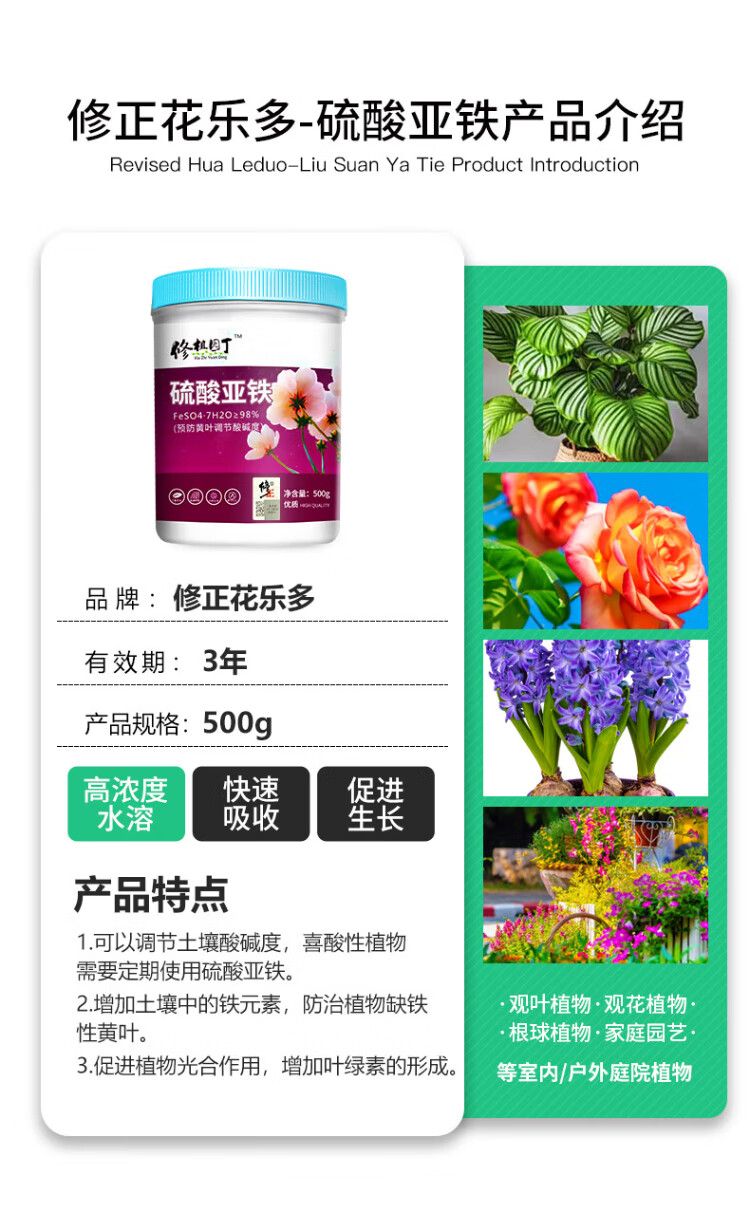 Correct Flower Lotto * Ferrous Sulfate Flower Fertilizer Acid-loving Plants Yellow Leaves Fall Leaves for Flowers and Green Plants Iron Supplementing Water-Soluble Fertilizer 500g