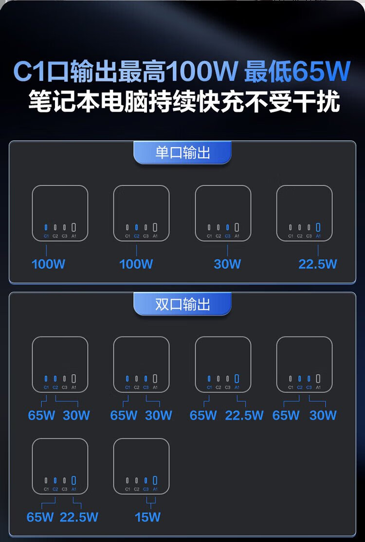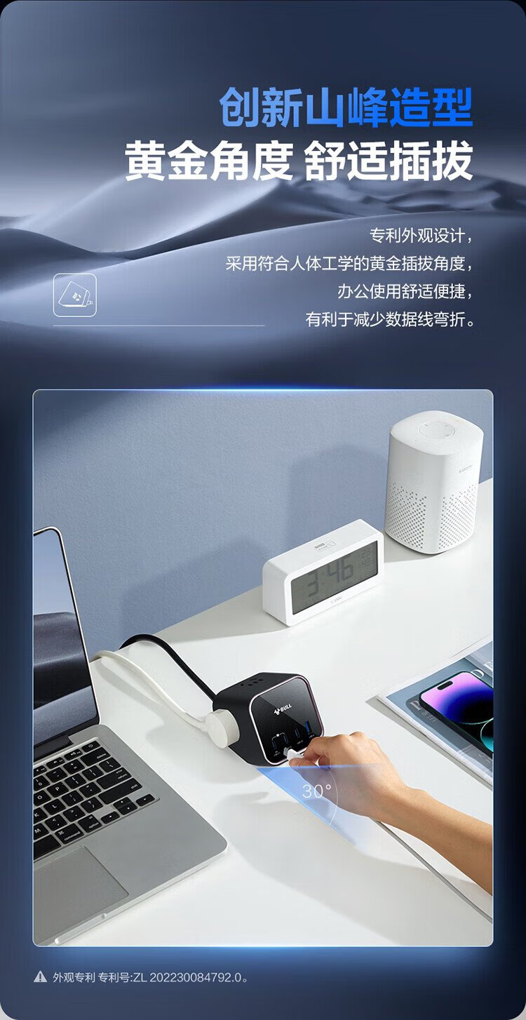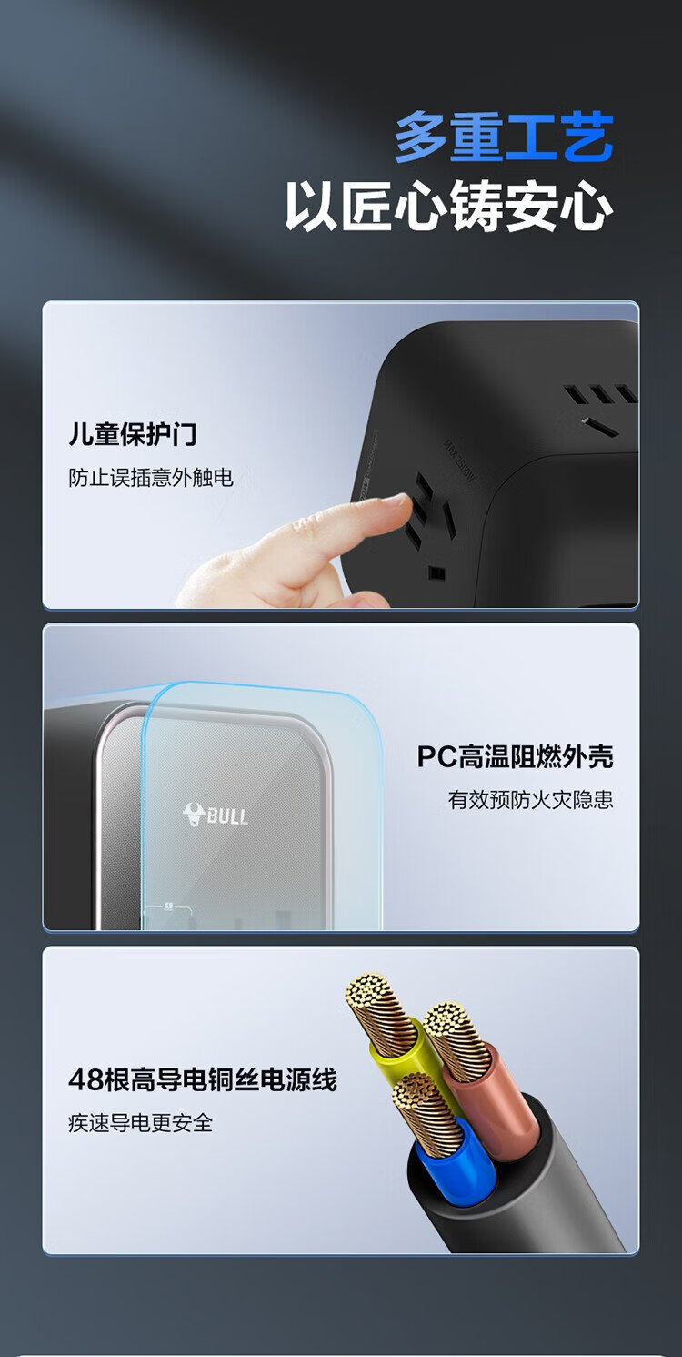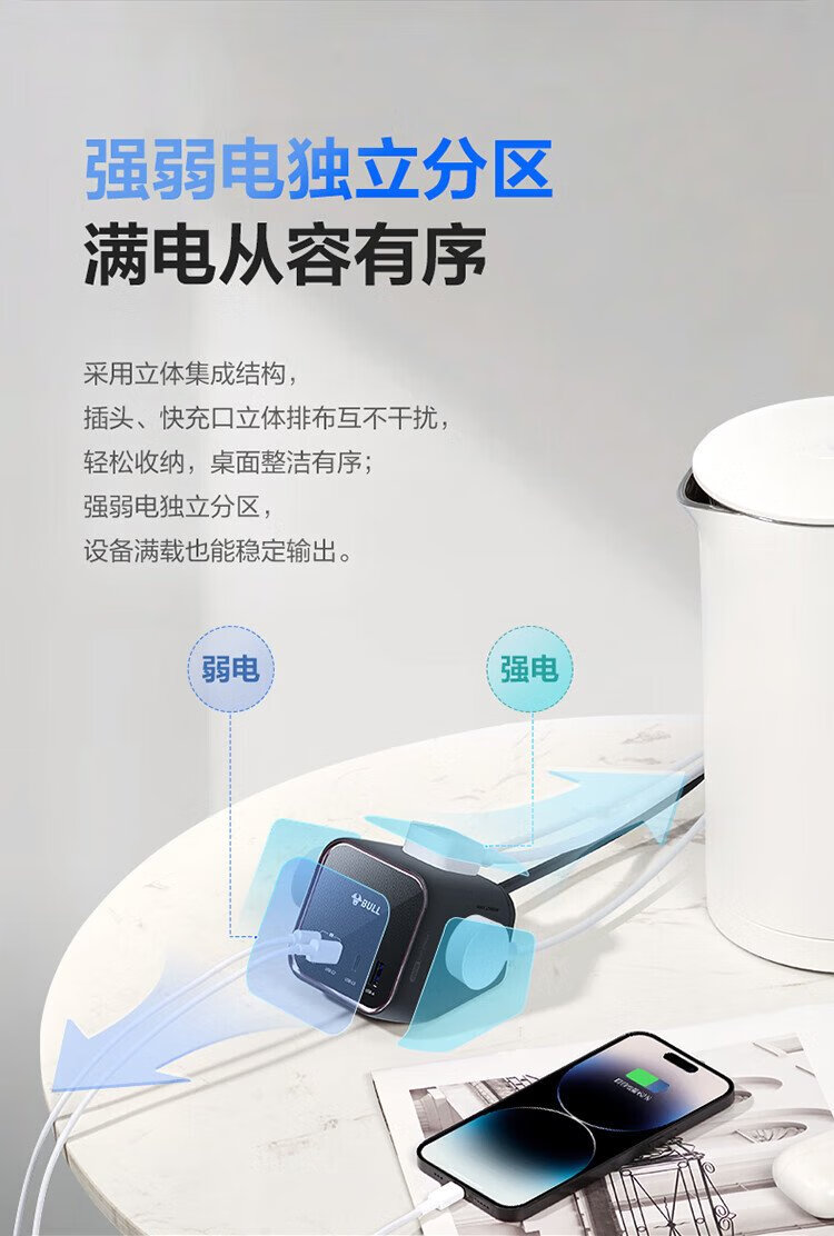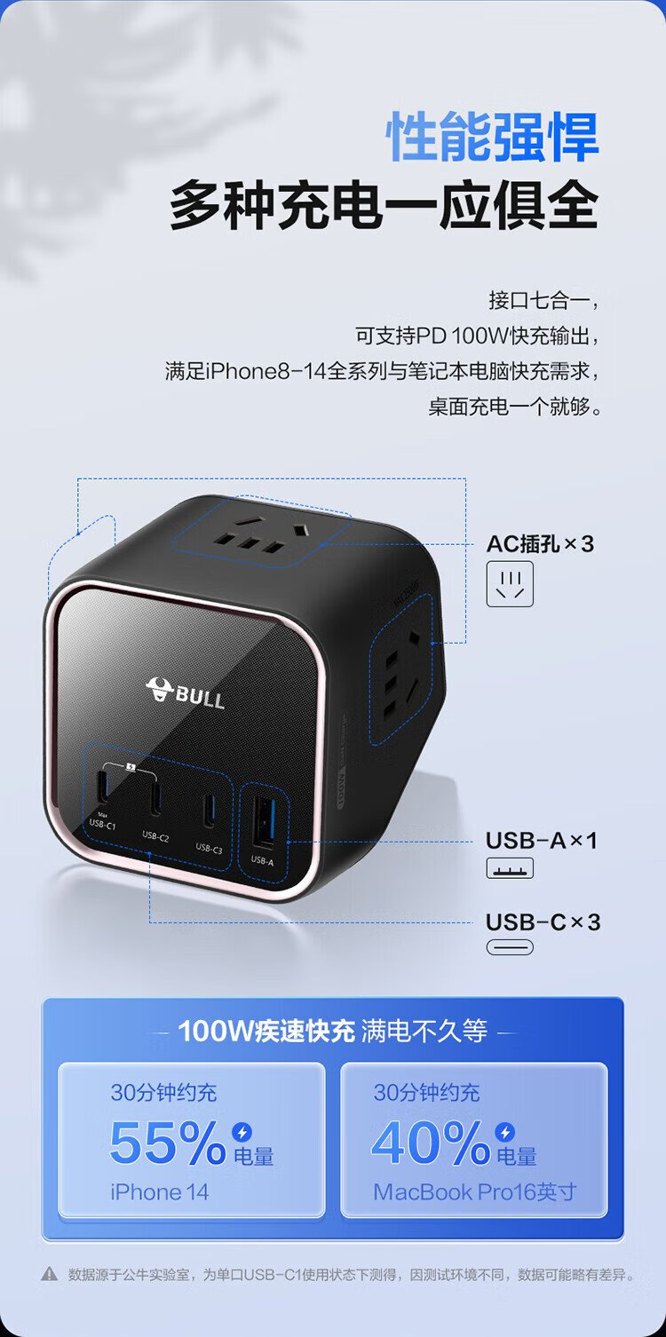 BULL gallium nitride 100W fast charging laptop socket/desktop charging station socket/plug board/socket strip 3C certification suitable for iphone17 master control switch 3C1A+3 jacks