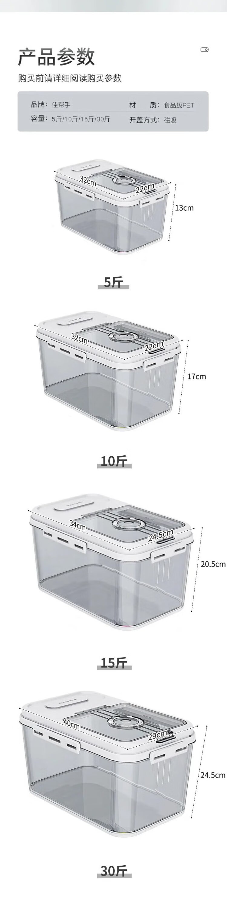 Jia helper rice barrel sealed rice container household insect-proof and moisture-proof rice tank rice storage box rice box flour storage tank 30Jin Jin is equal to 0.5 kg