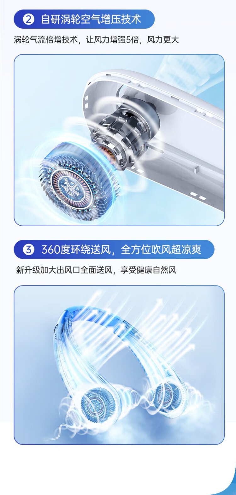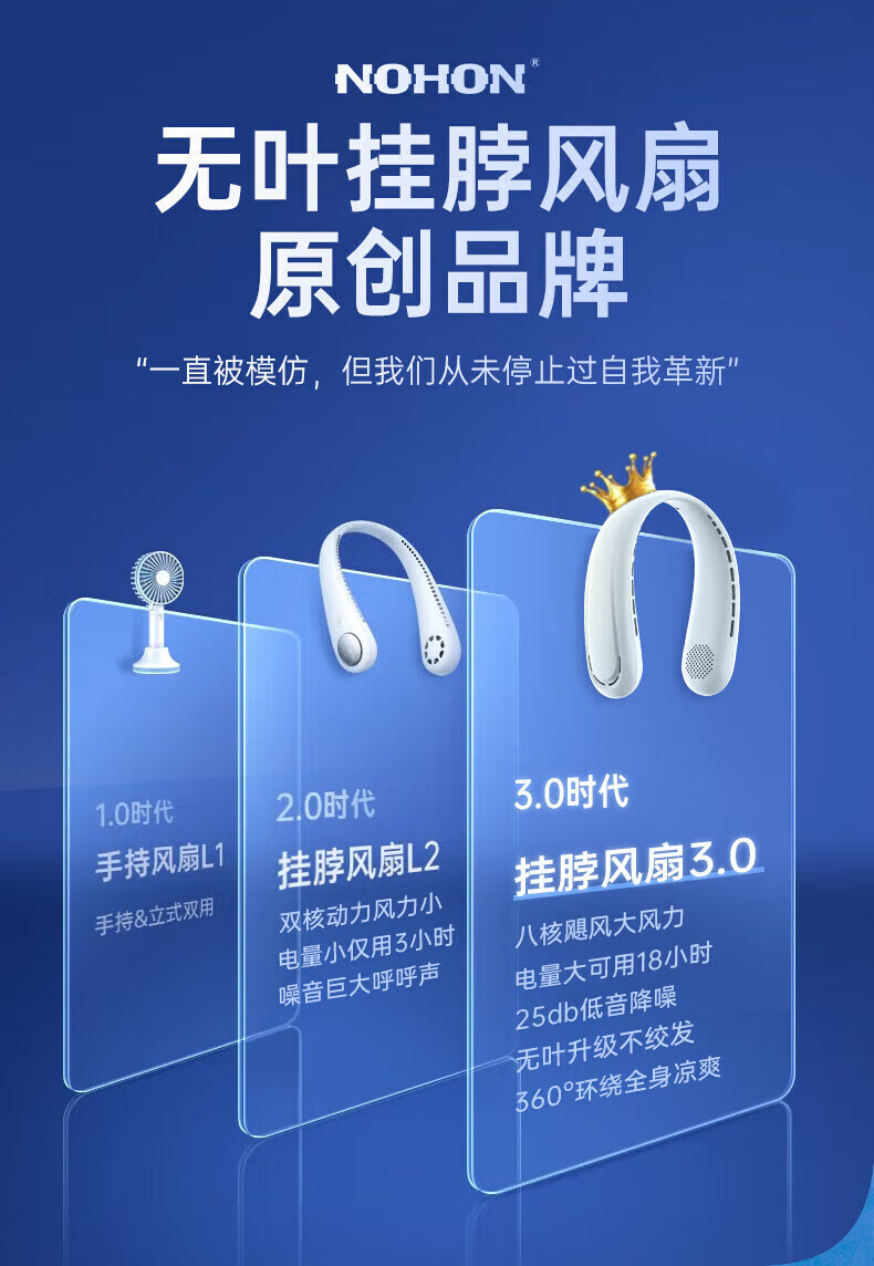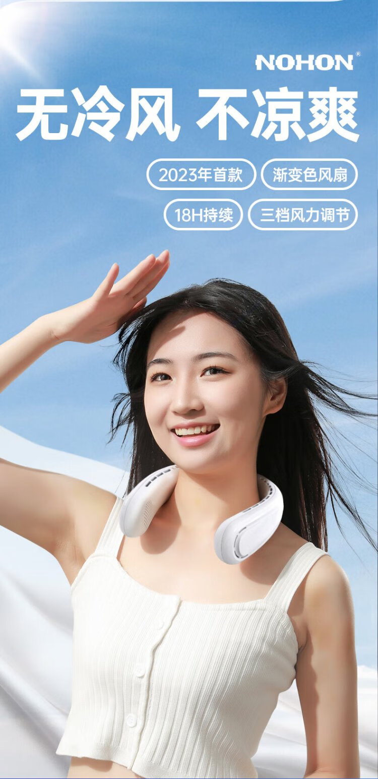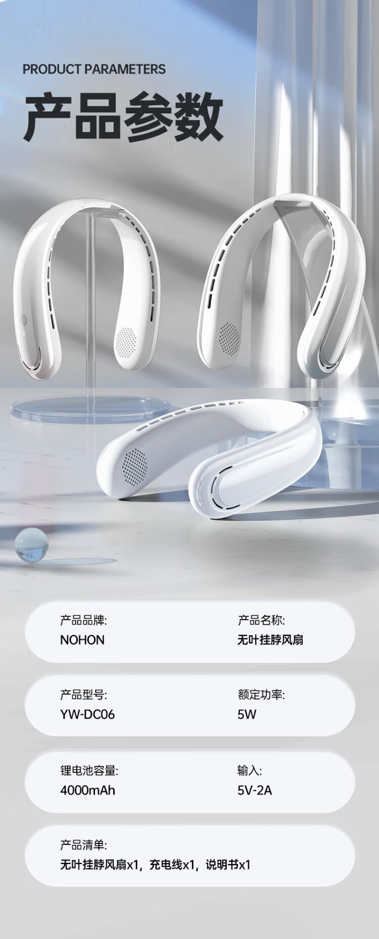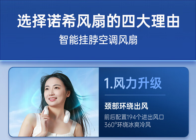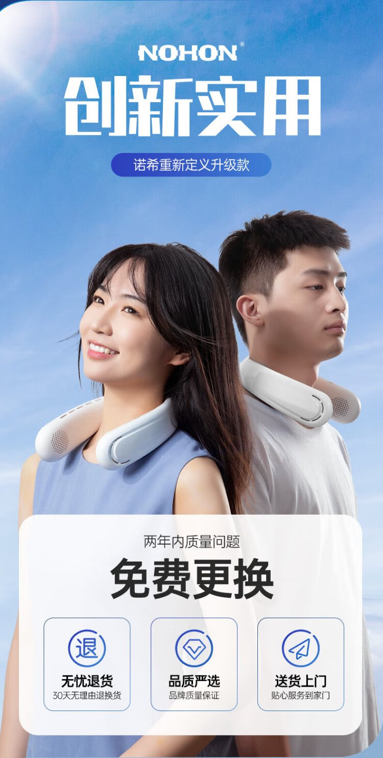 NOHON hanging neck fan portable mini fan hanging neck lazy bass student dormitory office high wind rechargeable fan