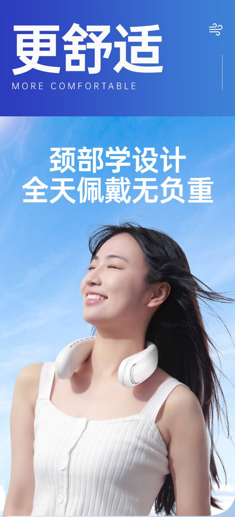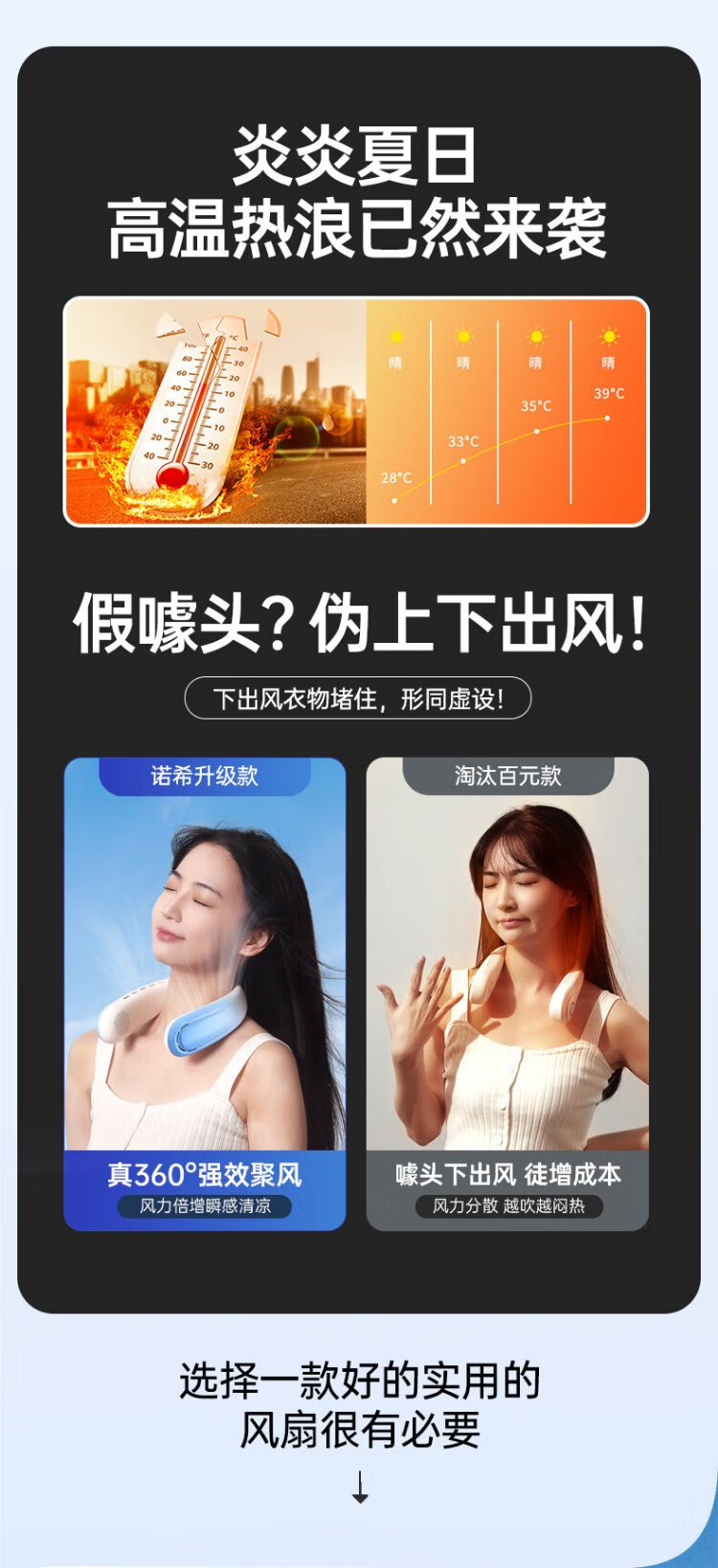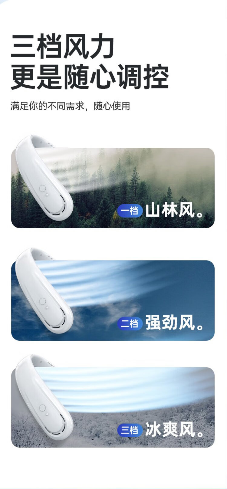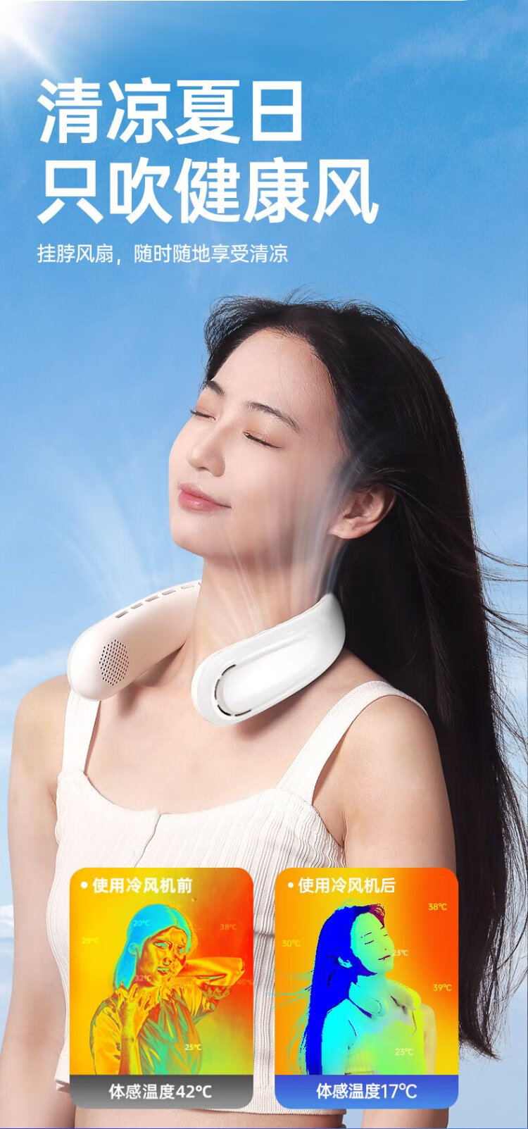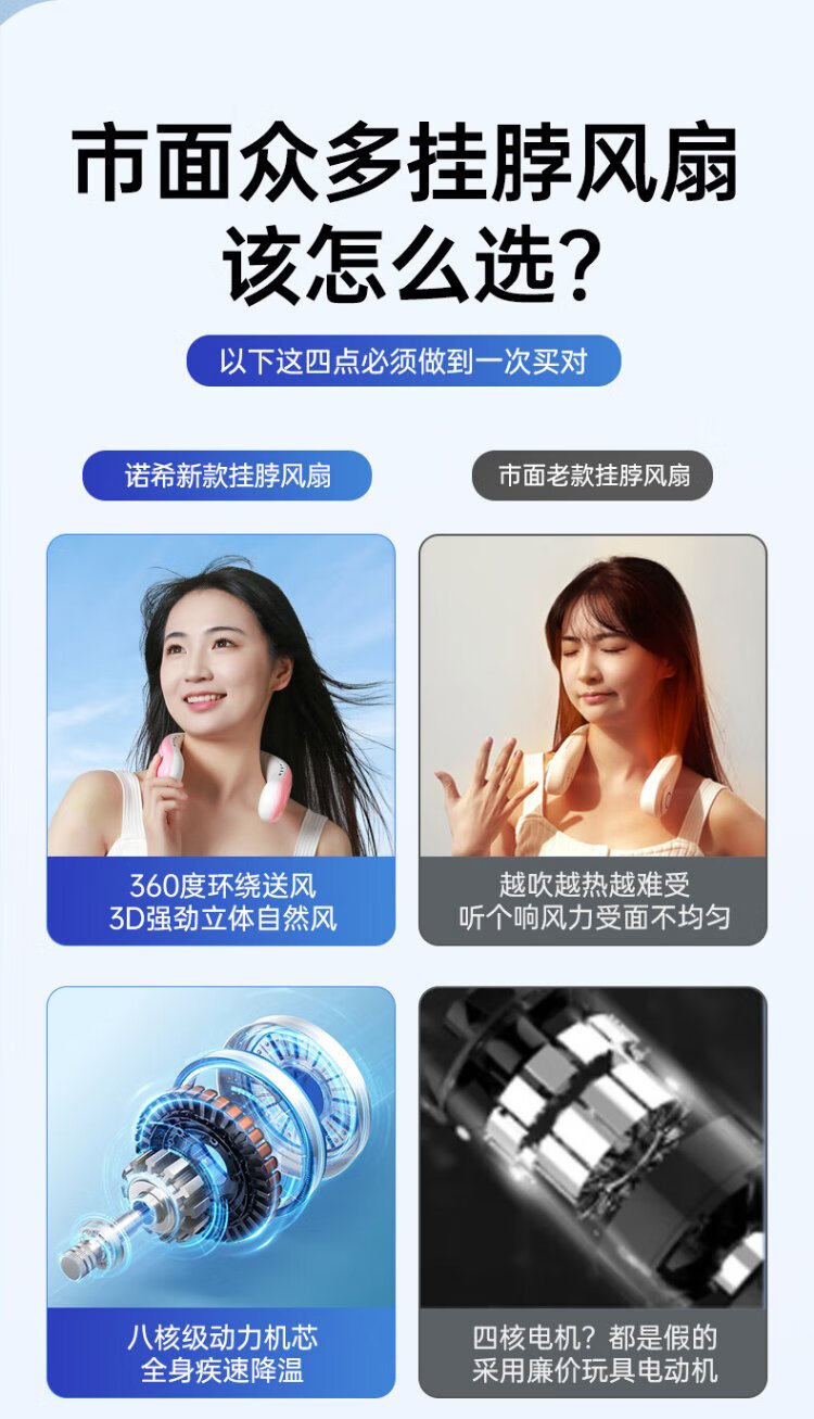 NOHON hanging neck fan portable mini fan hanging neck lazy bass student dormitory office high wind rechargeable fan