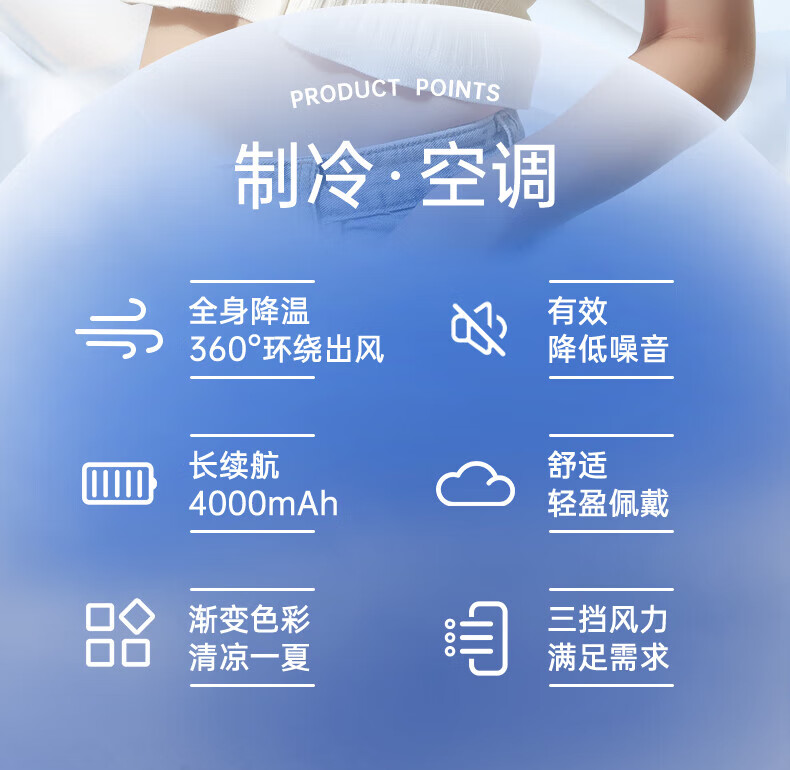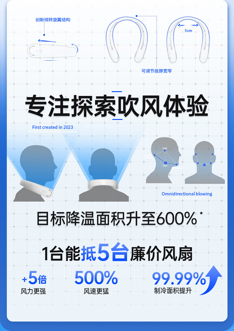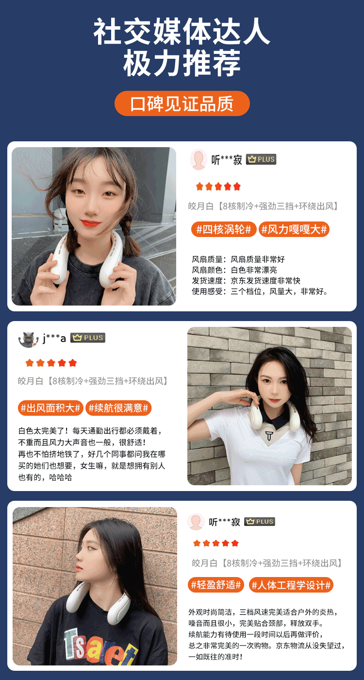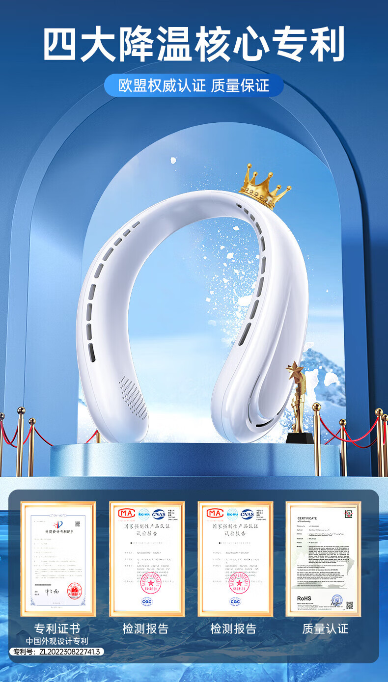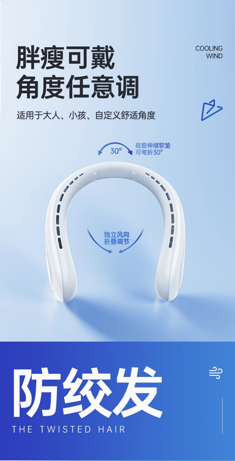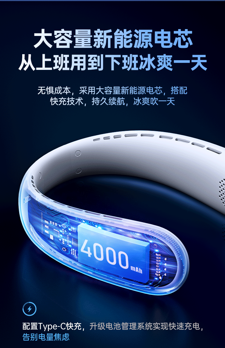 NOHON hanging neck fan portable mini fan hanging neck lazy bass student dormitory office high wind rechargeable fan
