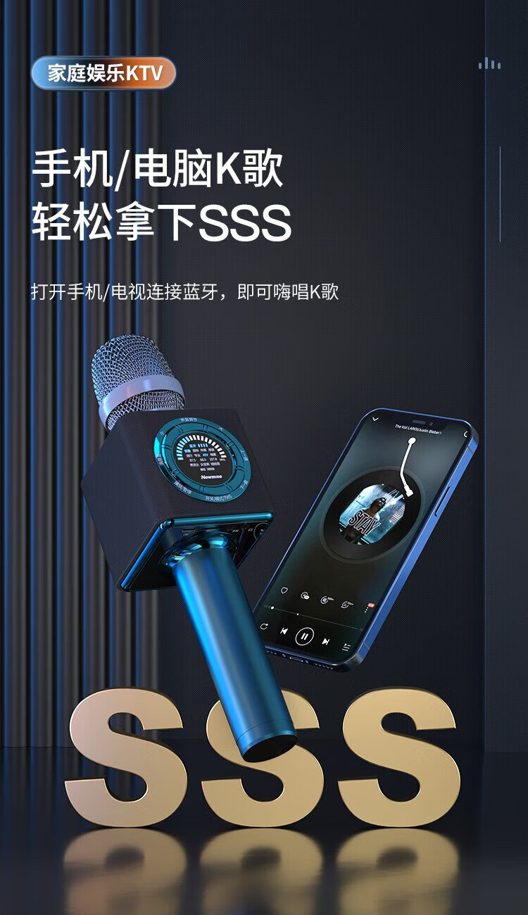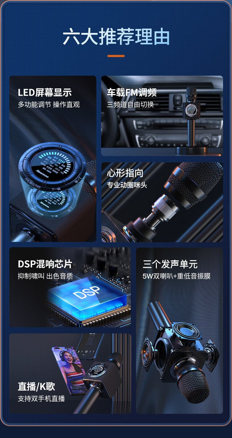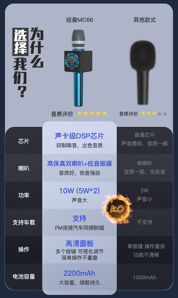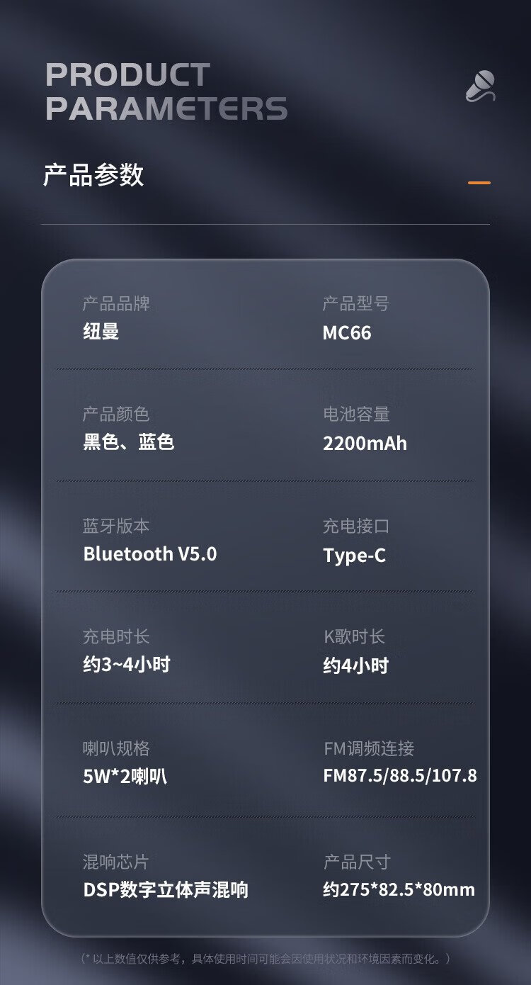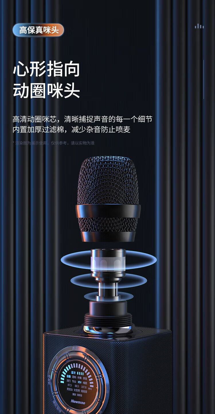 Newmine MC66 wireless microphone and audio integrated microphone for karaoke, built-in sound card, radio microphone, national karaoke bar entertainment mobile phone bluetooth car dynamic microphone blue