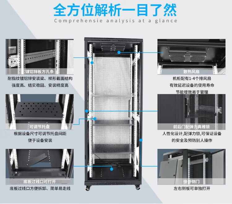 Tuten server cabinet standard network data room headhunting cabinet enterprise office weak current project G2.6842U glass door size width 600*depth 800*height 2055MM