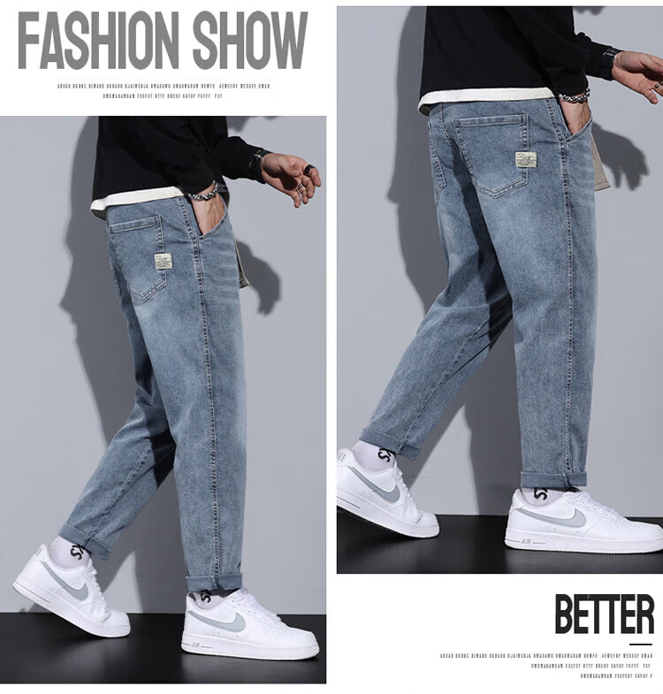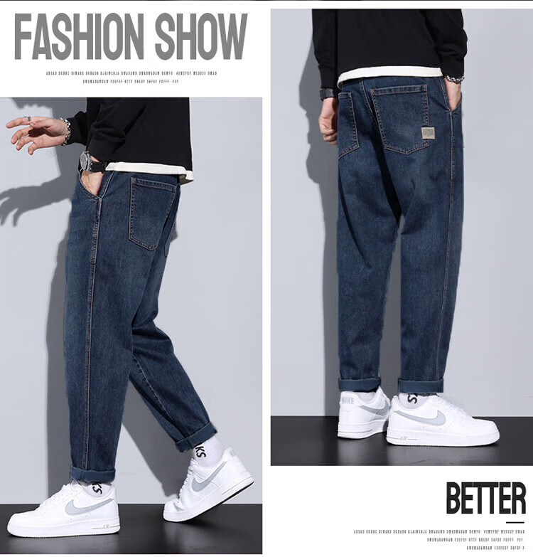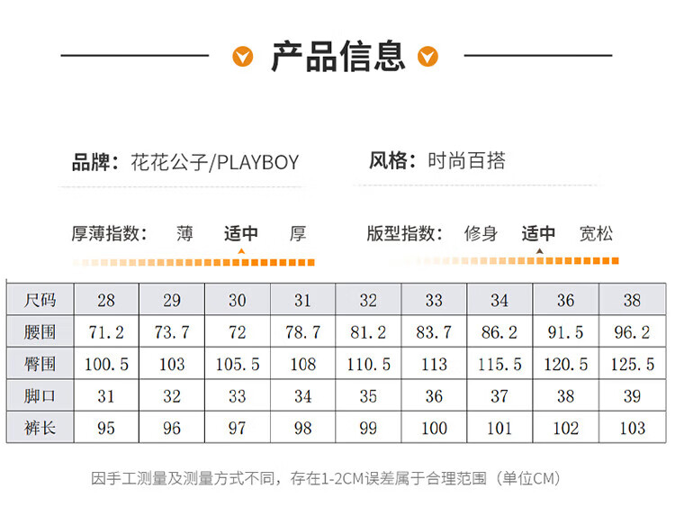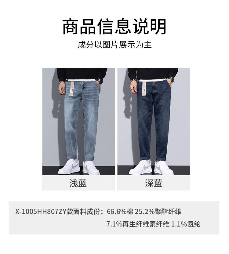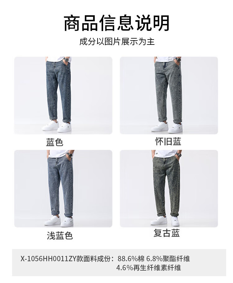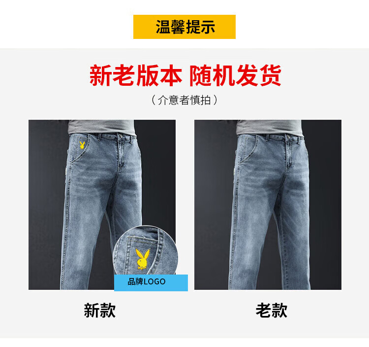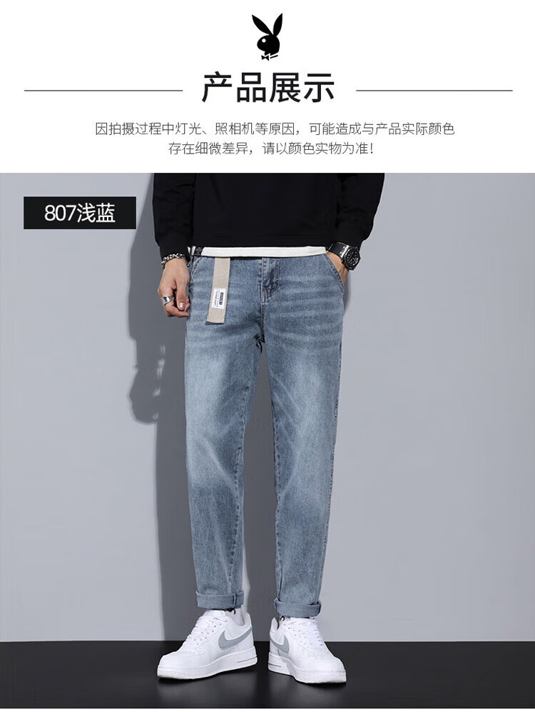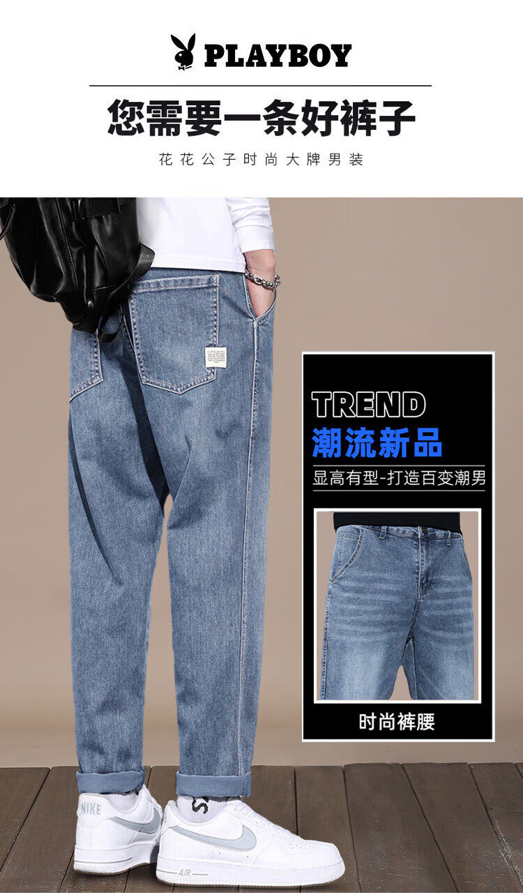 Playboy (PLAYBOY) jeans men's autumn and winter casual pants men's trendy brand loose straight men's pants light blue 32