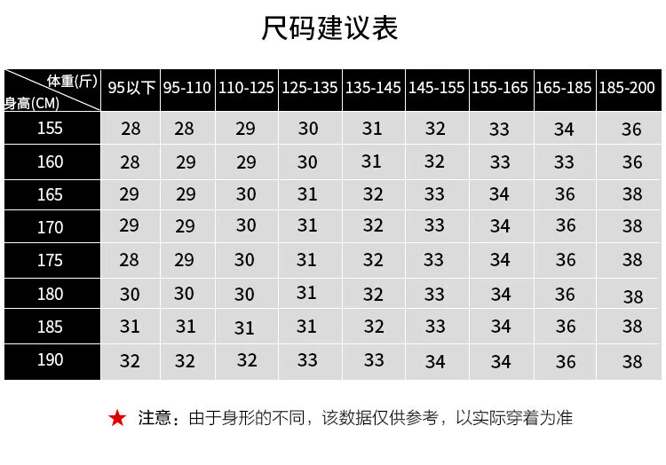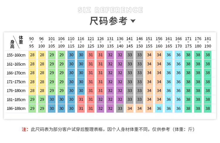 USA(inch) 28-30 30-32 32-34 34-38 38-42
