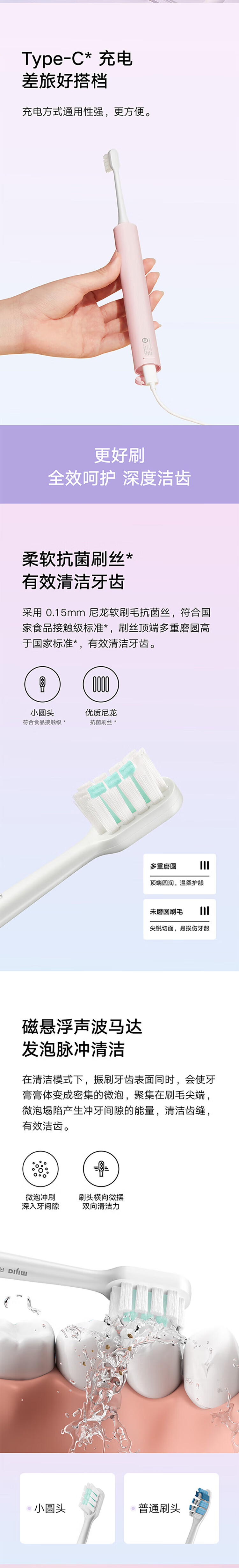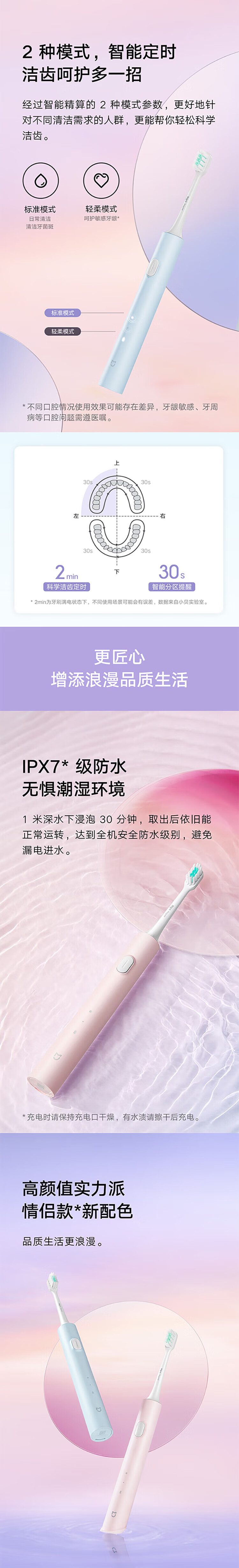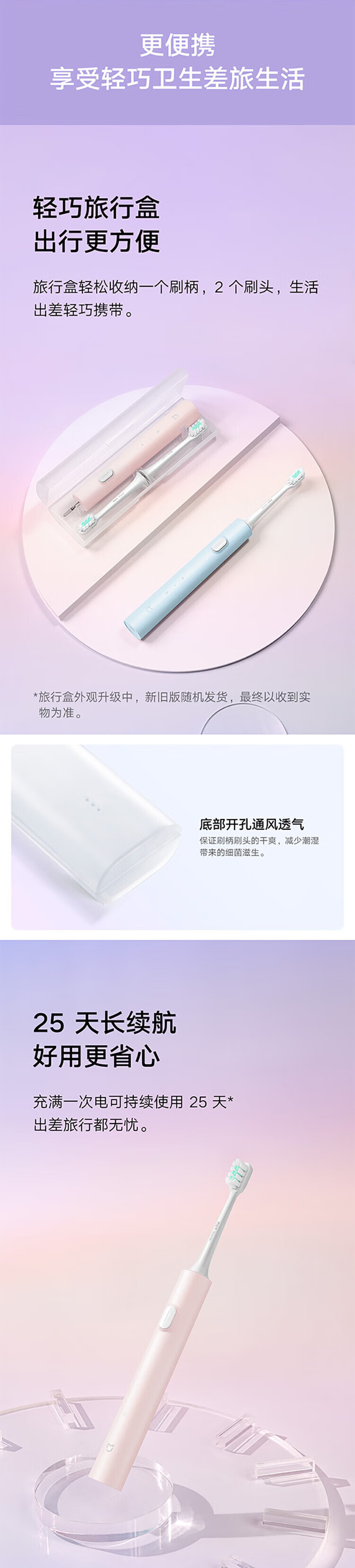 Mijia Xiaomi Electric Toothbrush T200C Adult/Student Dual Brush Head Portable Gum Protection Set Couple Style Male/Female Blue Portable Travel Necessary