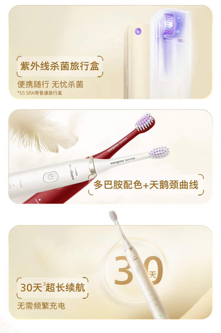 Philips (PHILIPS) Electric Toothbrush SPA Spa Brush S5 Birthday Gift Couple Gives Boy and Girlfriend 5 Modes Soft Power Whitening Gum Protection HX2491/02 Red 2451 Upgraded Model