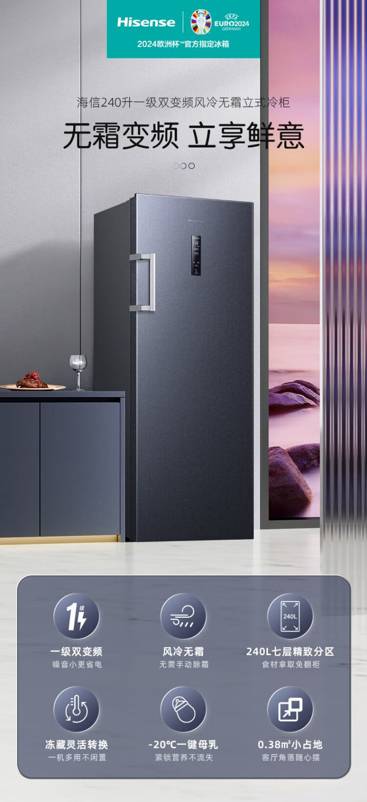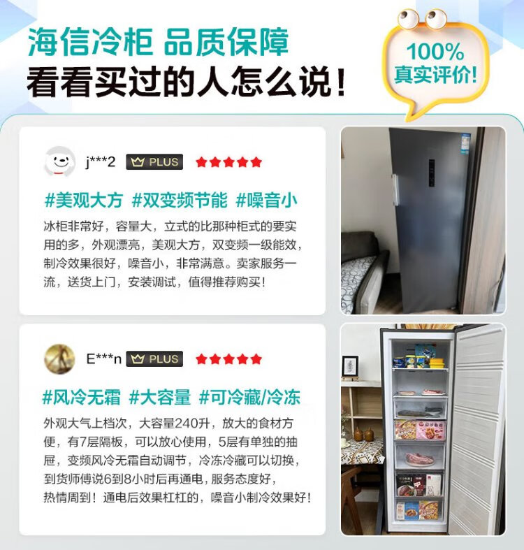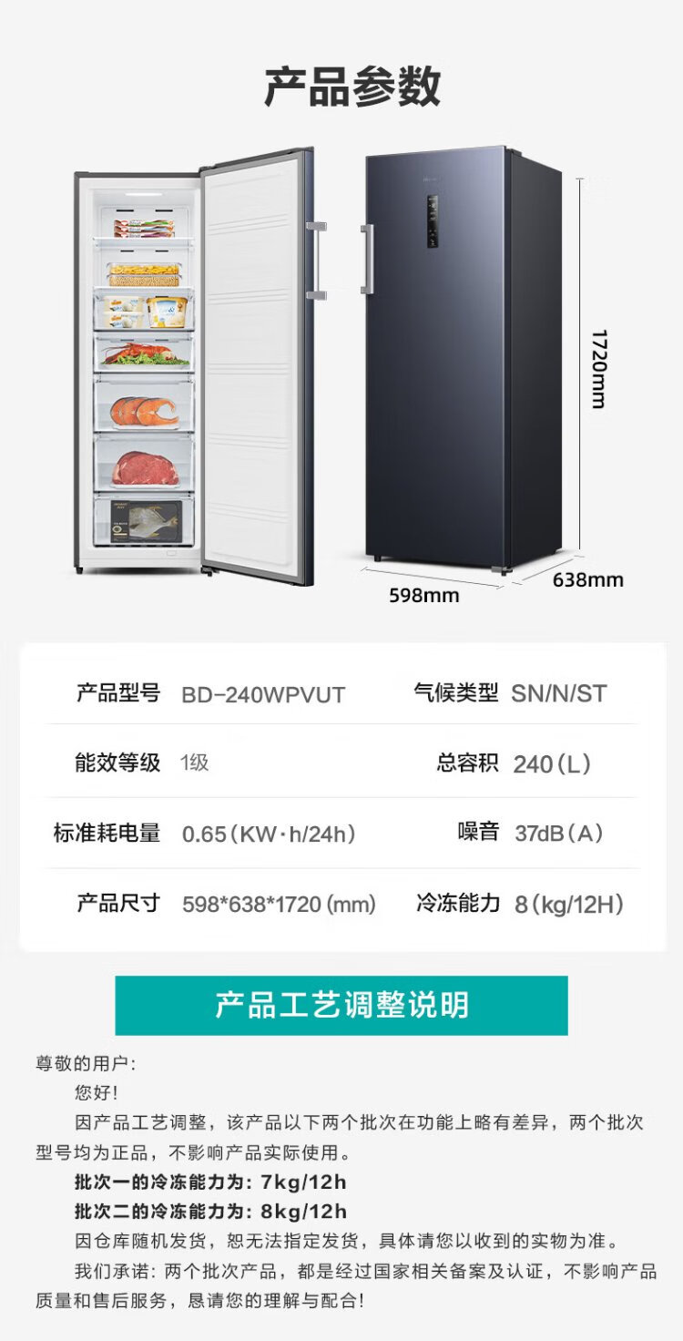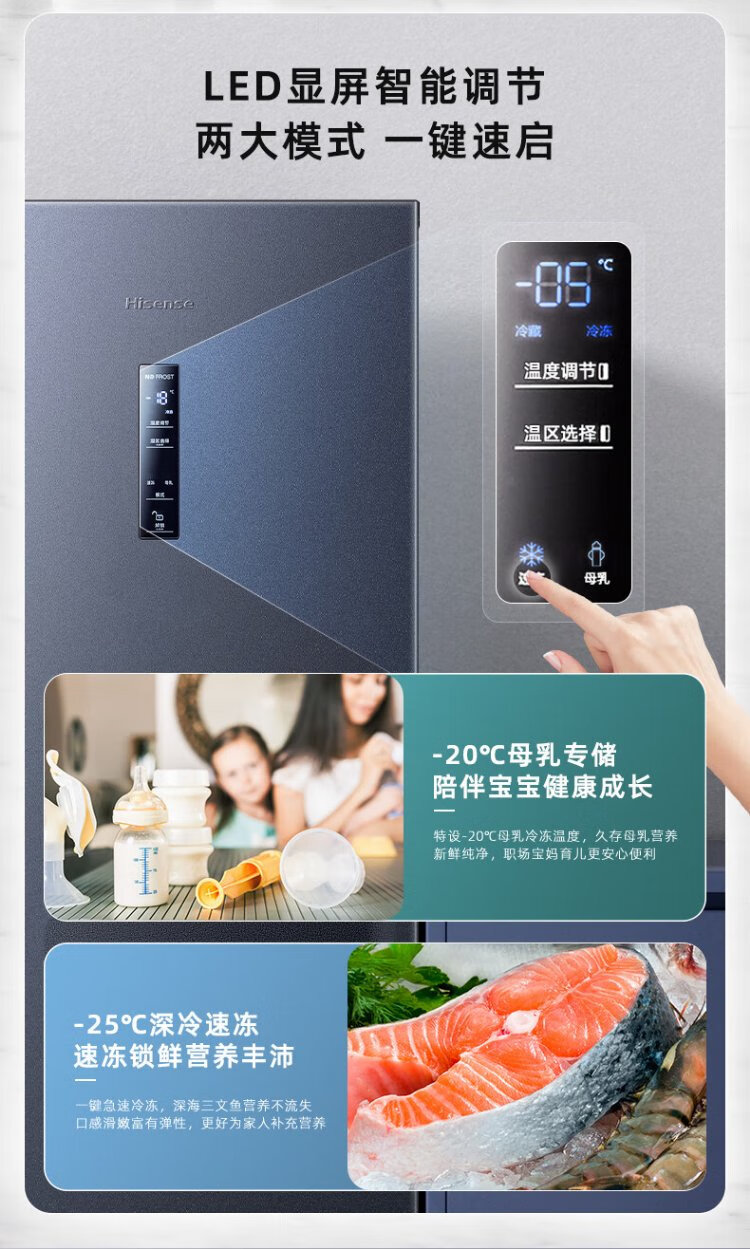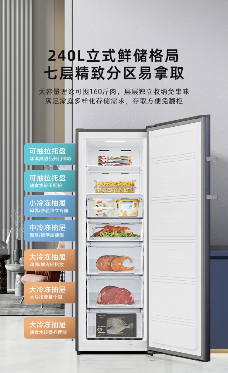 Hisense 240-liter vertical freezer, variable frequency first-level energy efficiency air-cooled frost-free freezer, maternal and infant breast milk refrigeration and freezing drawer-type single-door refrigerator BD-240WPVUT
