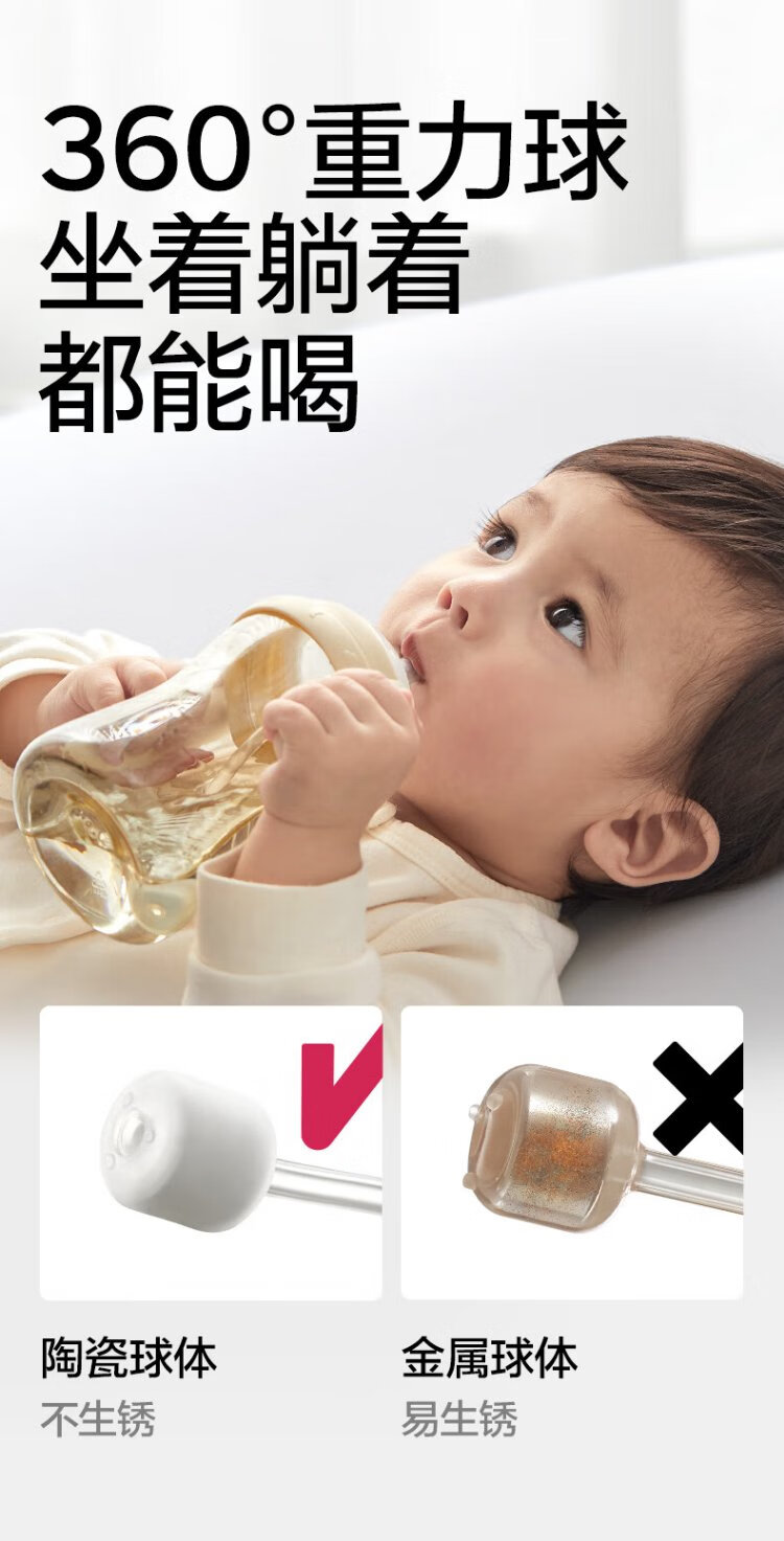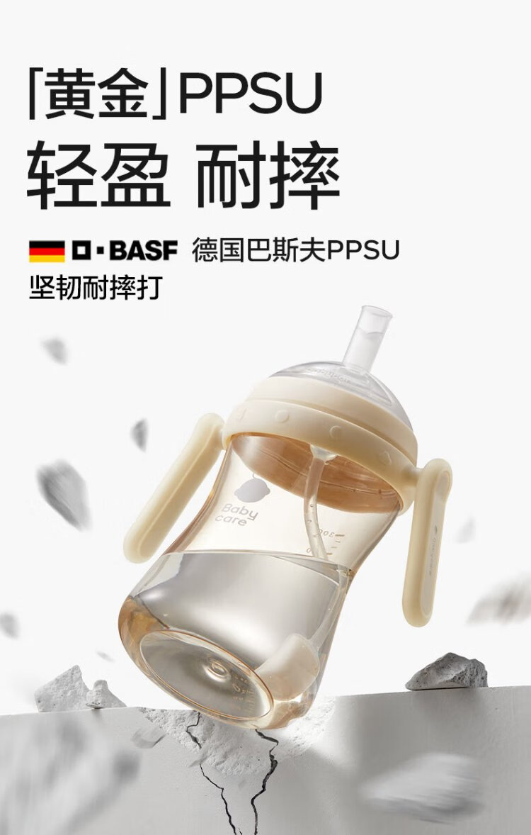 Babycare straw bottle 1-3 years old direct drinking baby PPSU big baby learning cup 12 months + bottle with gravity ball 300ml