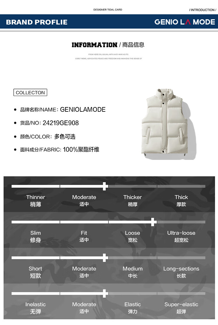 GENIOLAMODE Semir Group Cotton Clothes Vest Men's Trendy Waistcoat Warm Cotton Clothes Vest Basic Casual All-Match Jacket