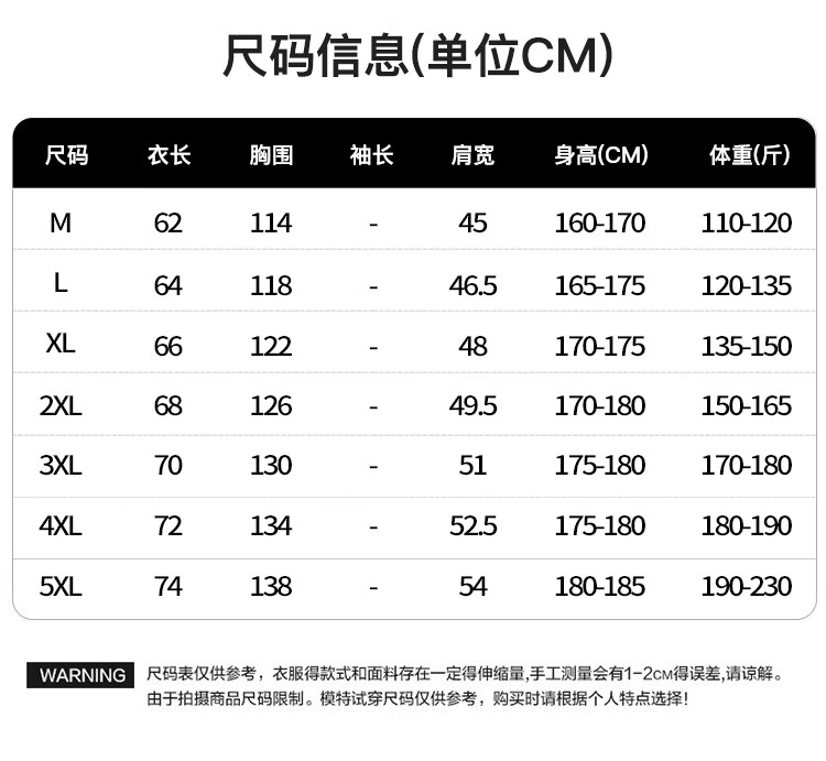China (cm) 165 / 88-90 170 / 96-98 175 / 108-110 180 / 118-122 185 / 126-130