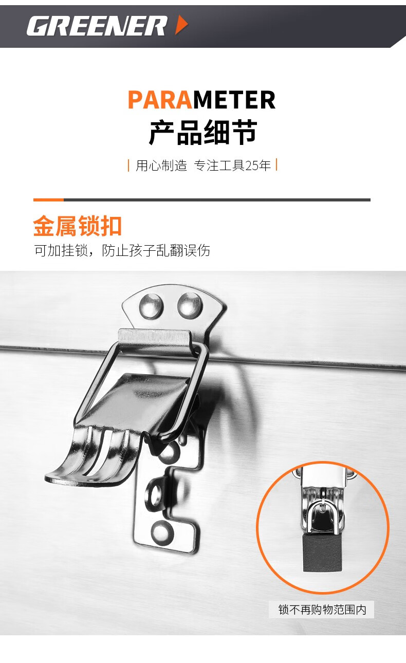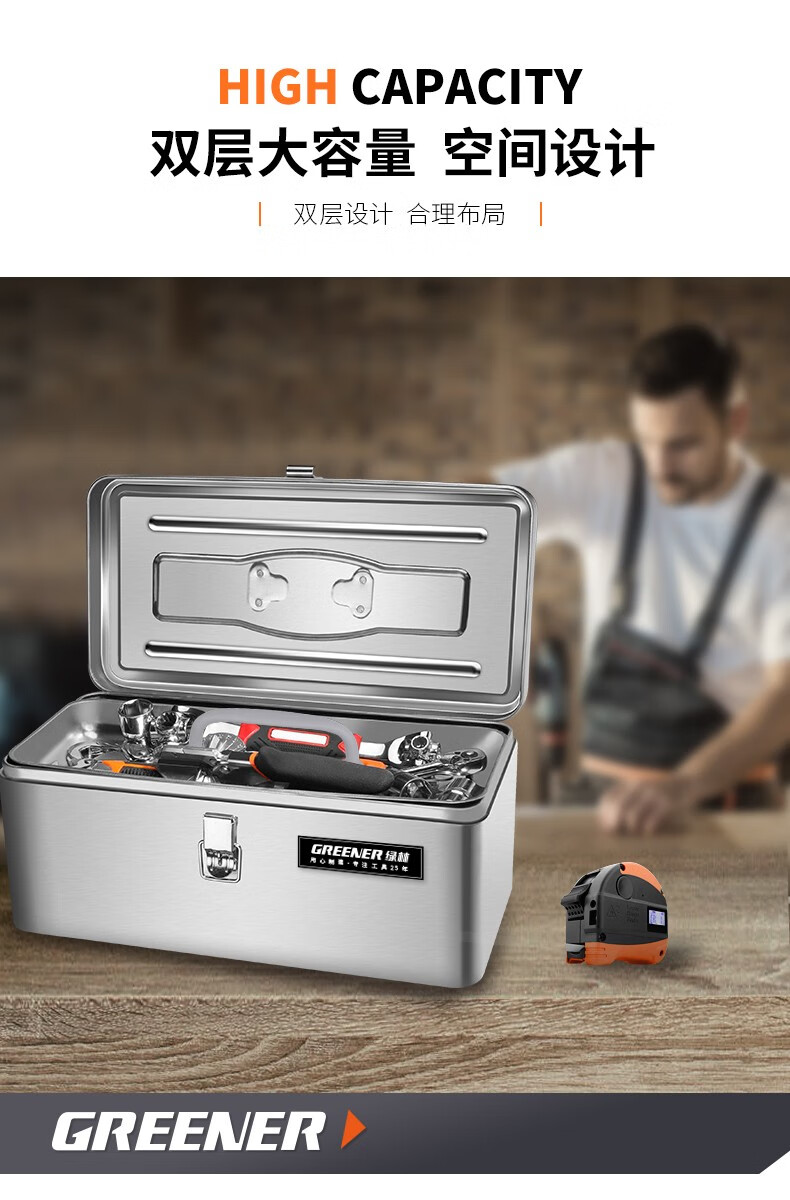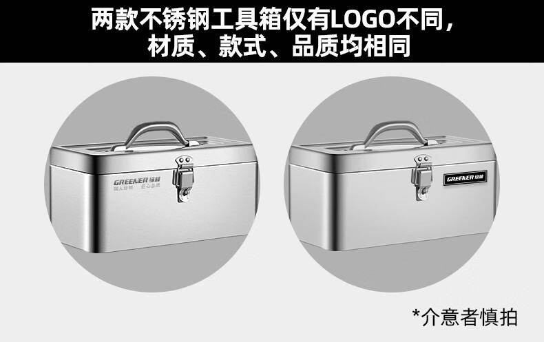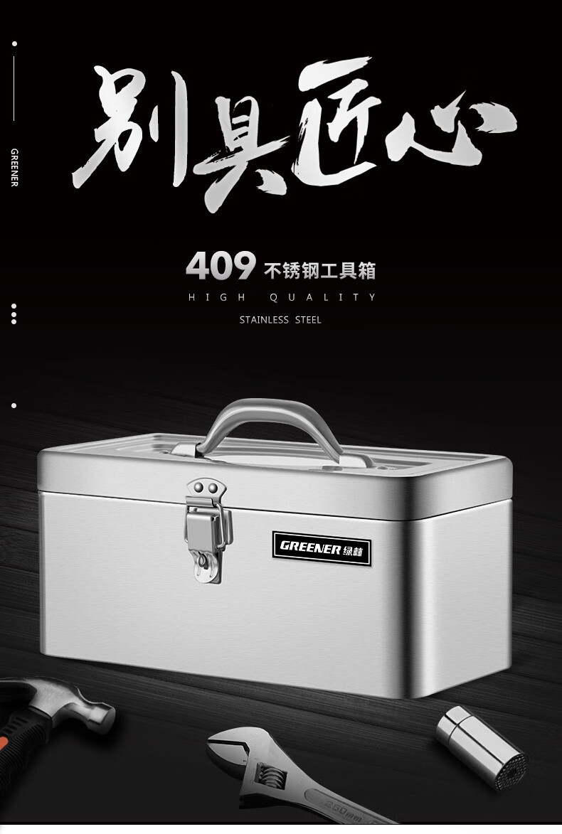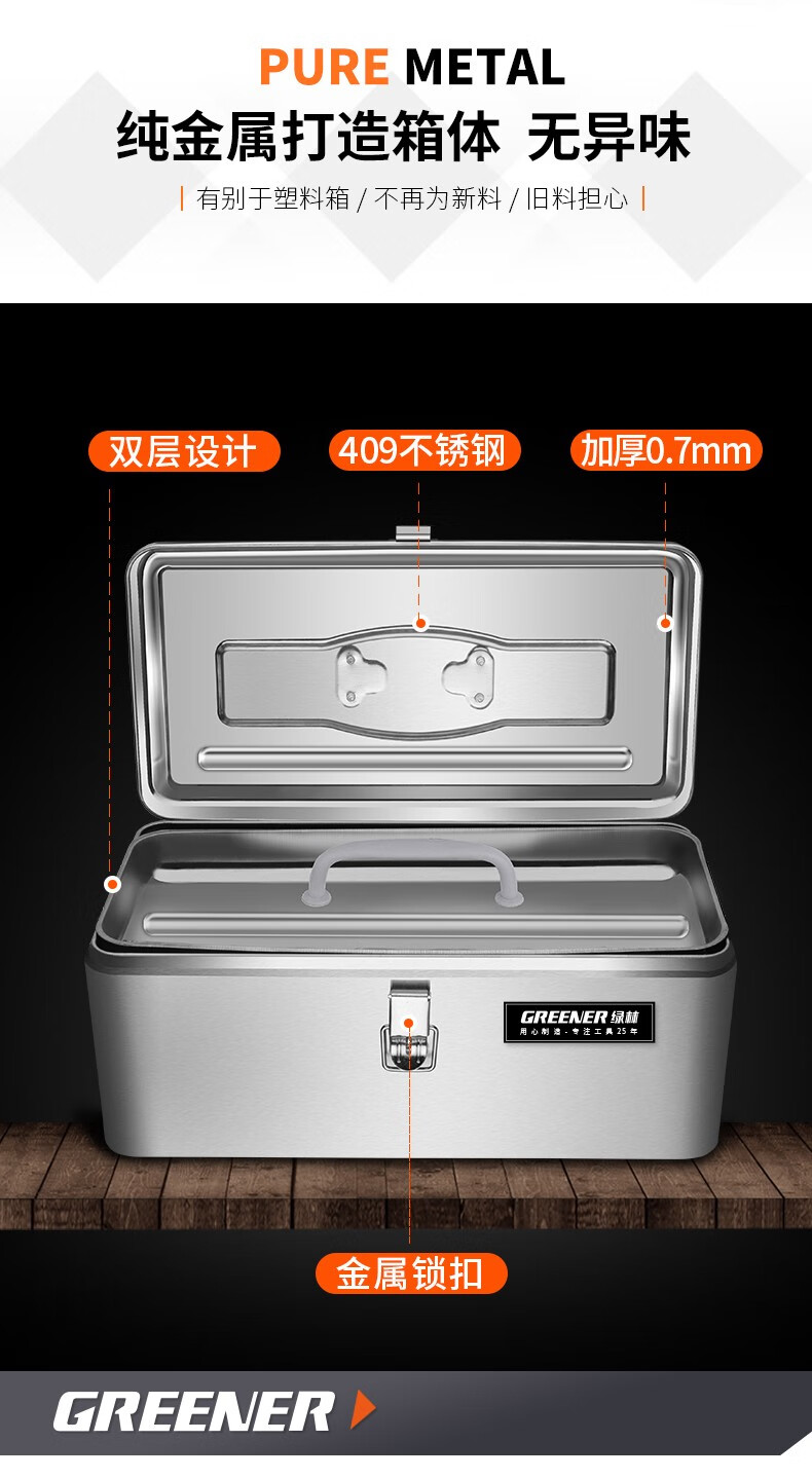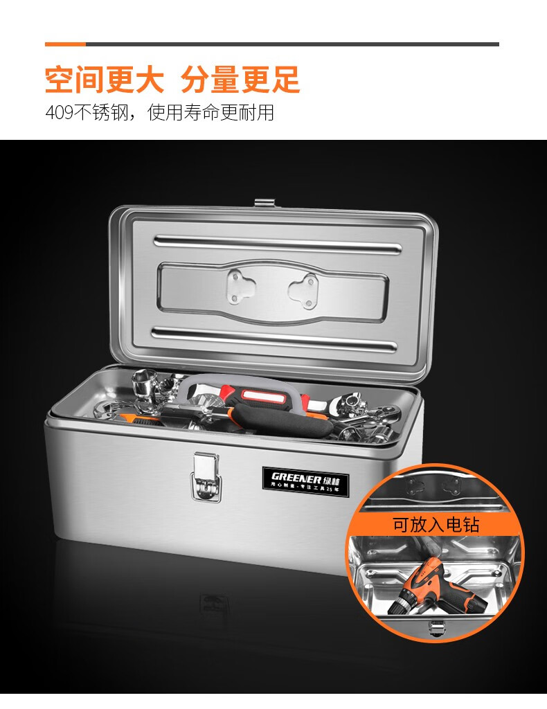 GREENER stainless steel tool box 18-inch industrial-grade storage box car home multi-functional thickened hardware iron box portable