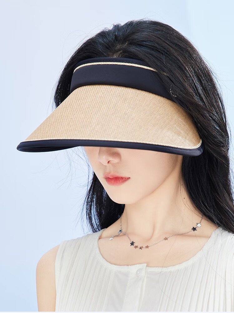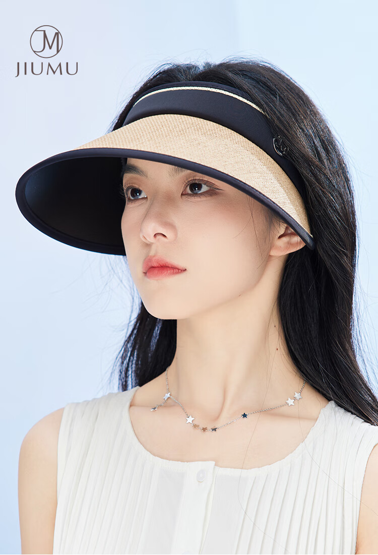 JIUMU sun protection hat women's sun hat empty hat straw hat summer outdoor face covering anti-UV hat women