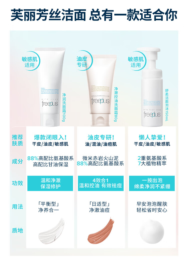 Freeplus Facial Cleanser Men and Women Amino Acid Facial Cleanser 150g