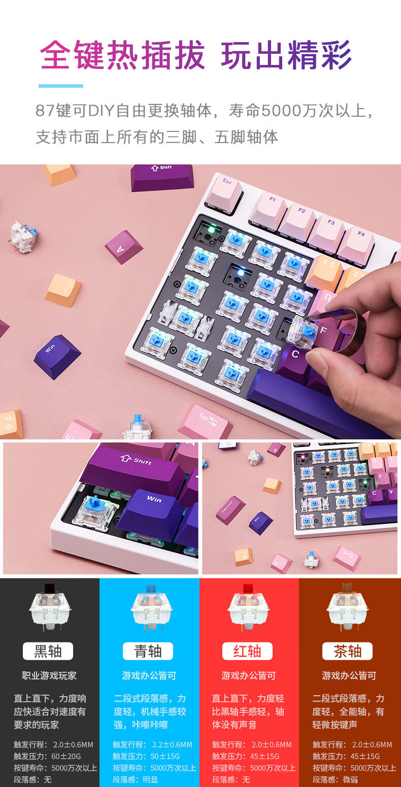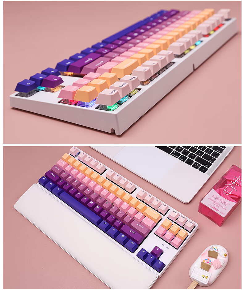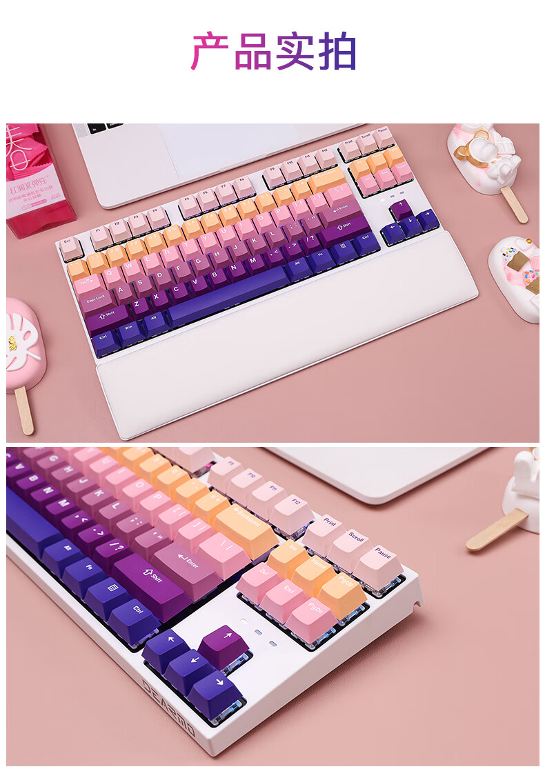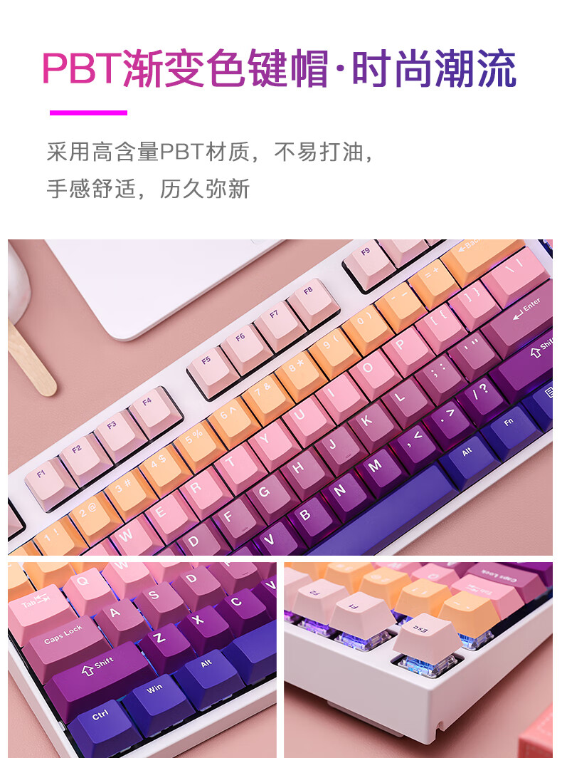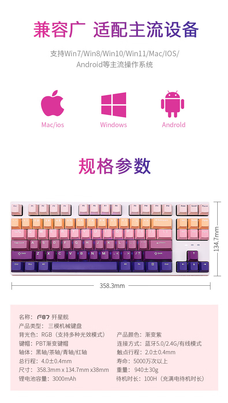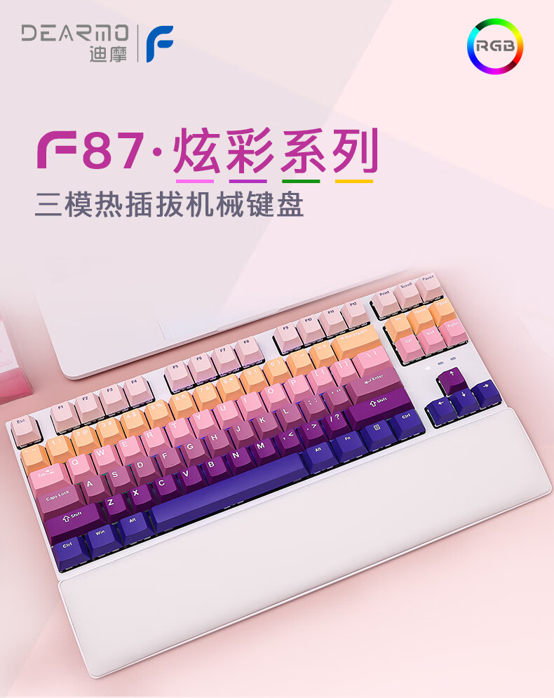 DEARMO F87 mechanical keyboard three-mode hot-swappable customized keyboard RGB backlight gaming keyboard laptop office keyboard gradient purple black axis