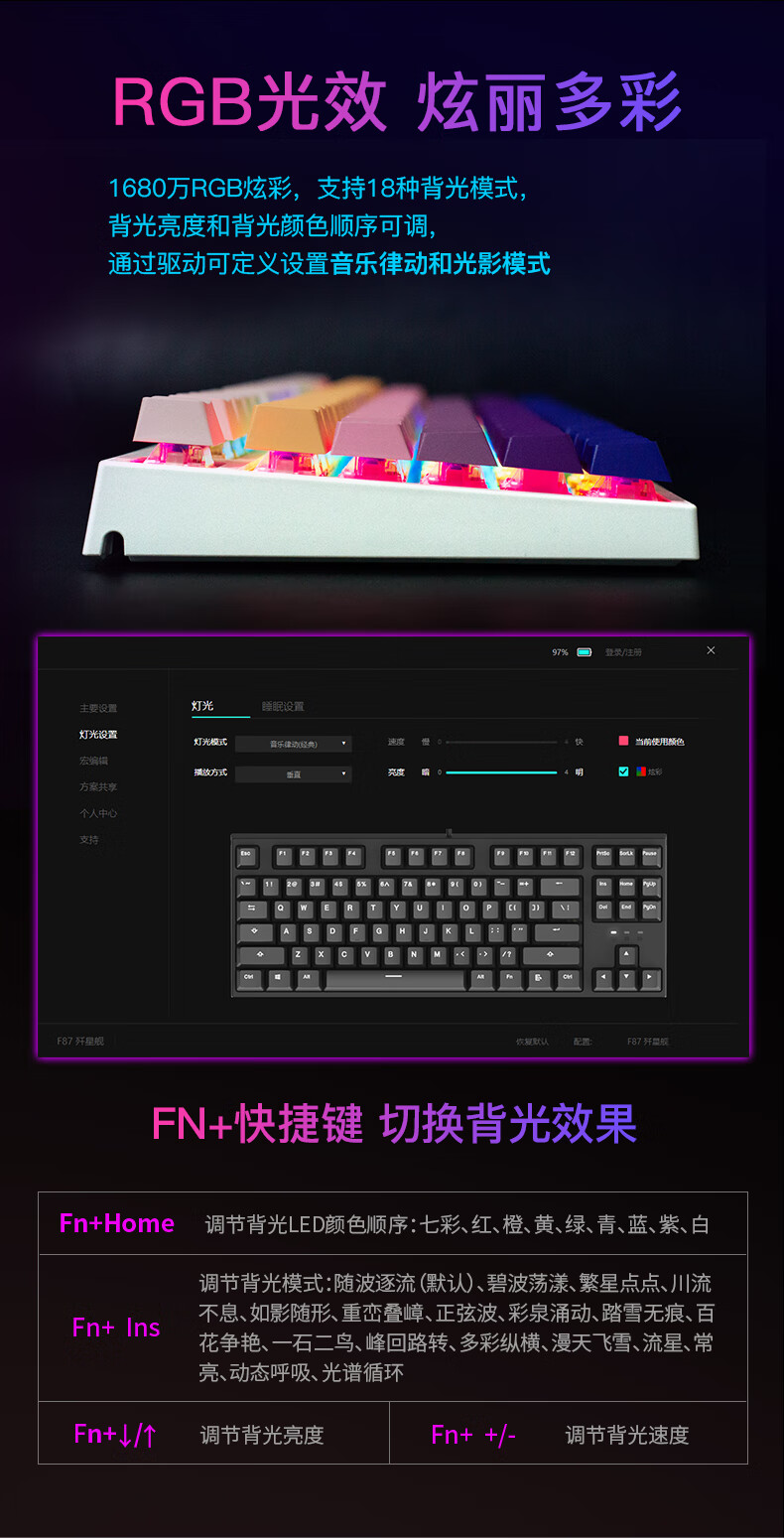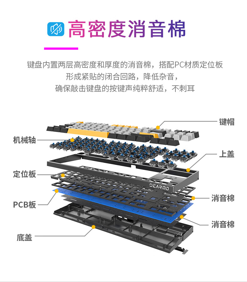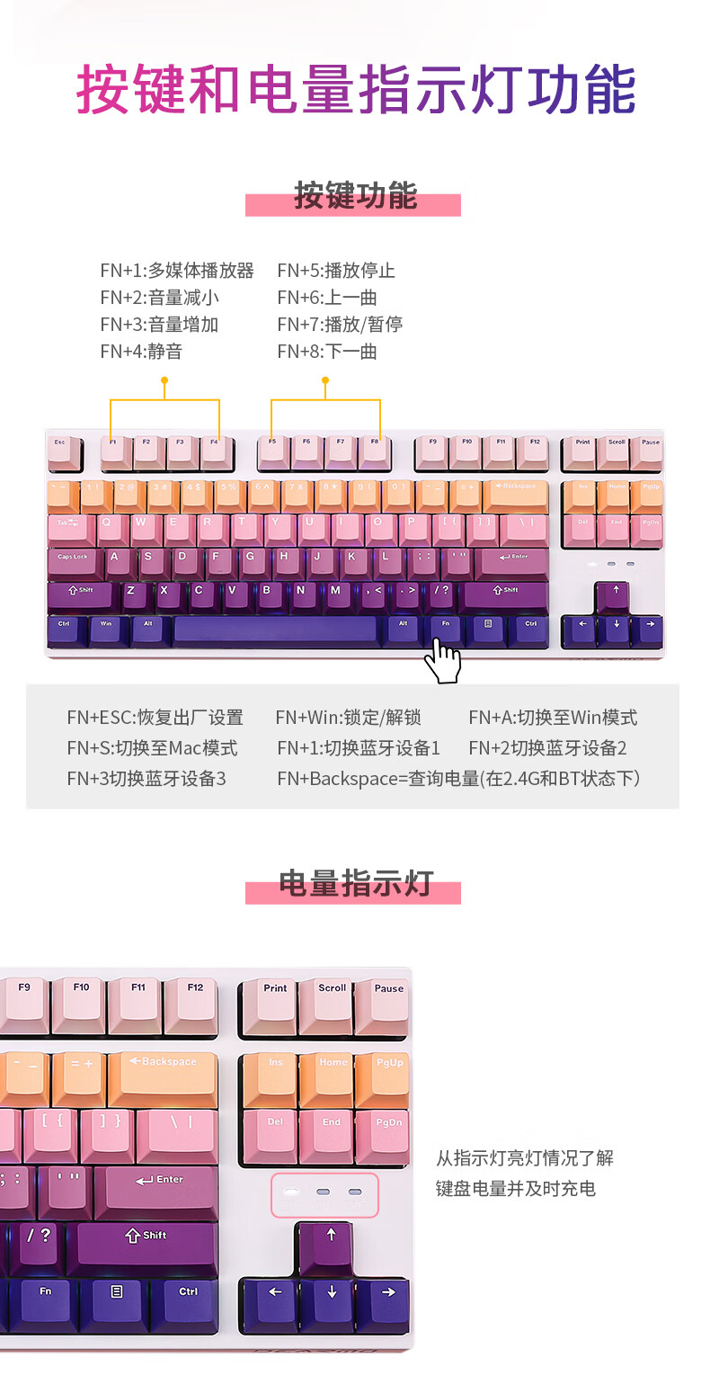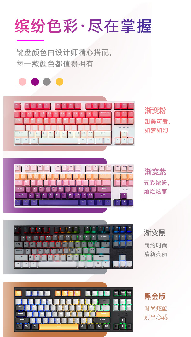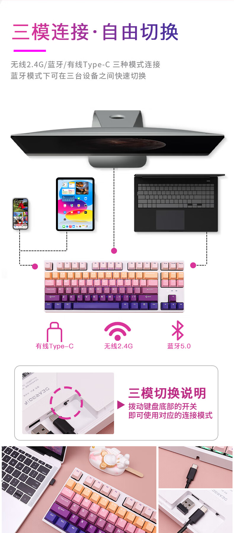 DEARMO F87 mechanical keyboard three-mode hot-swappable customized keyboard RGB backlight gaming keyboard laptop office keyboard gradient purple black axis