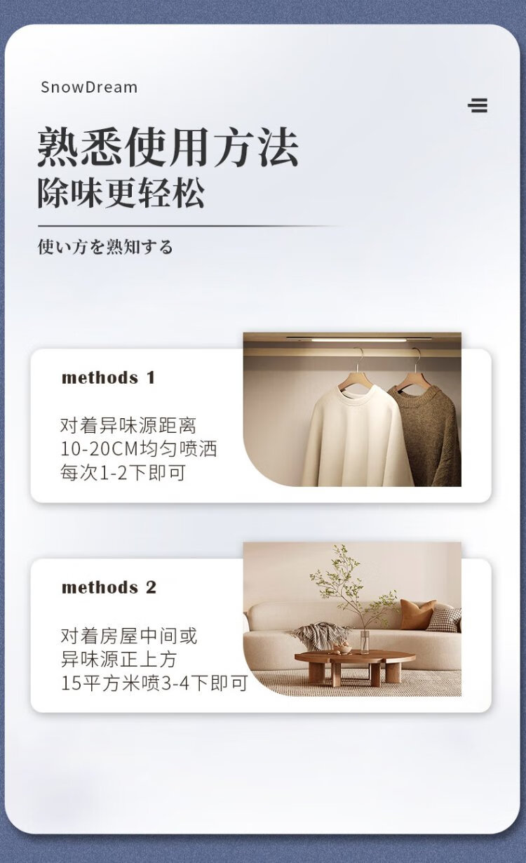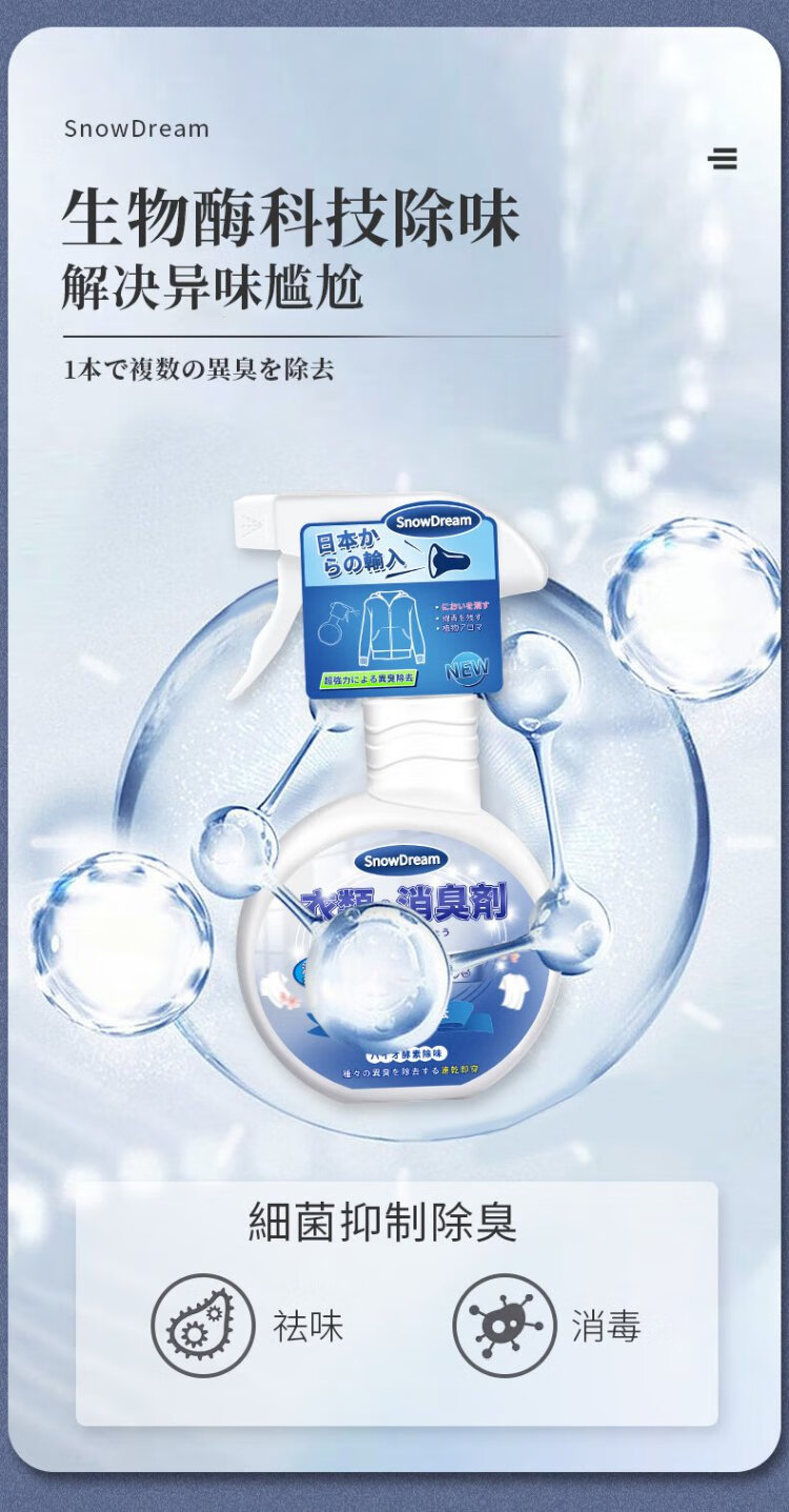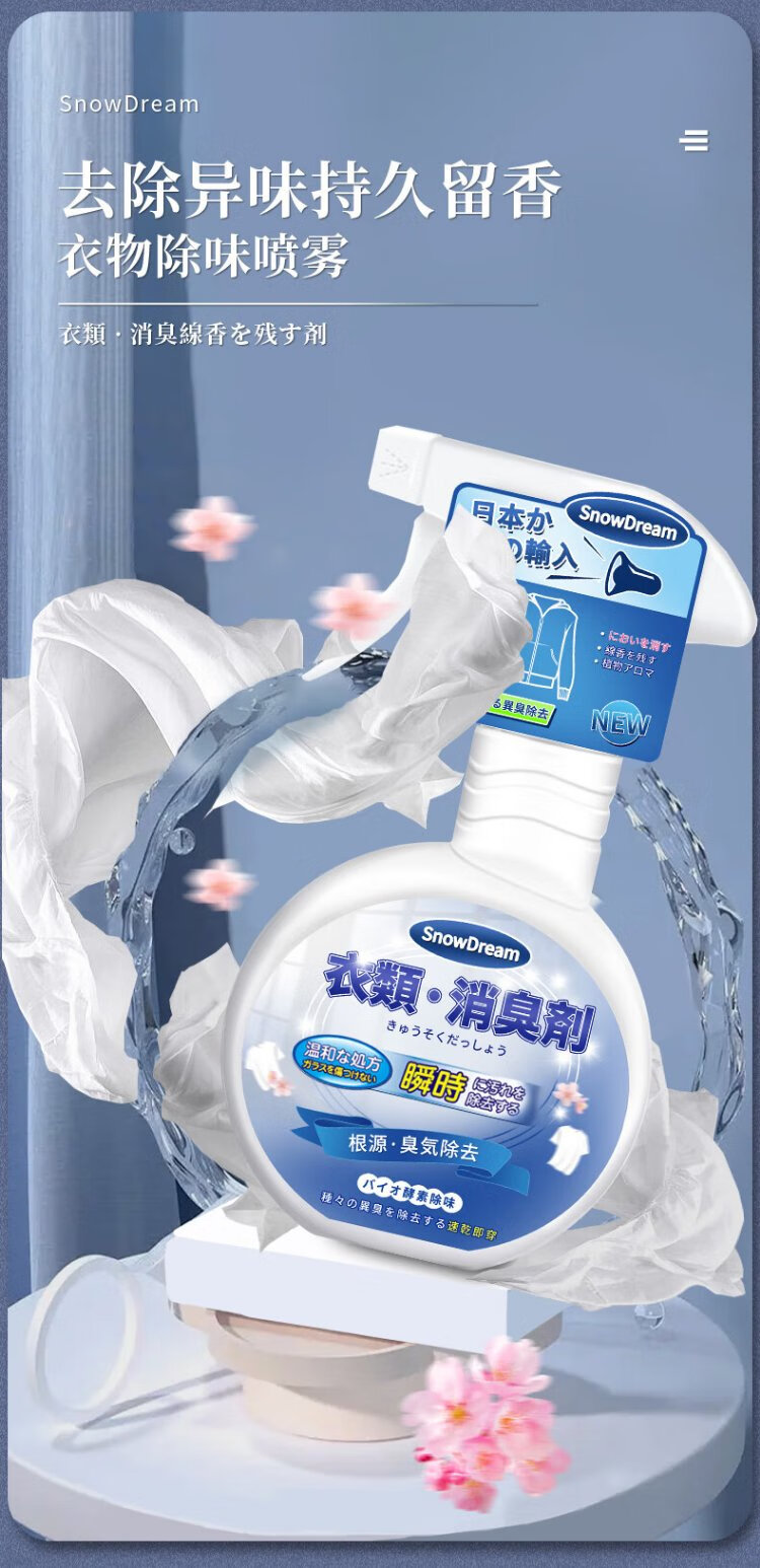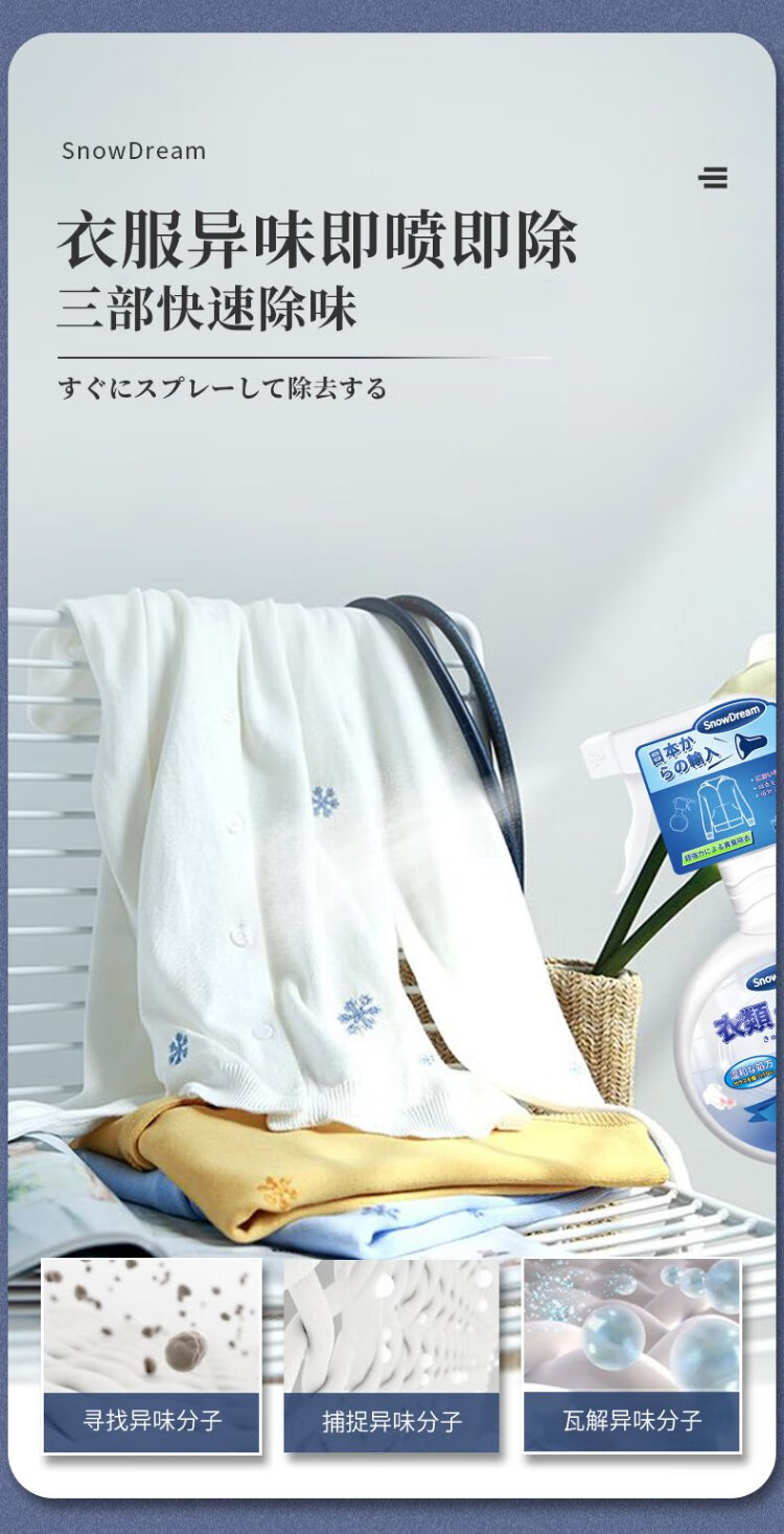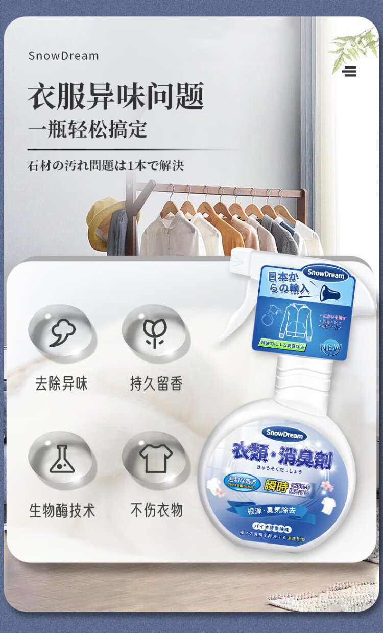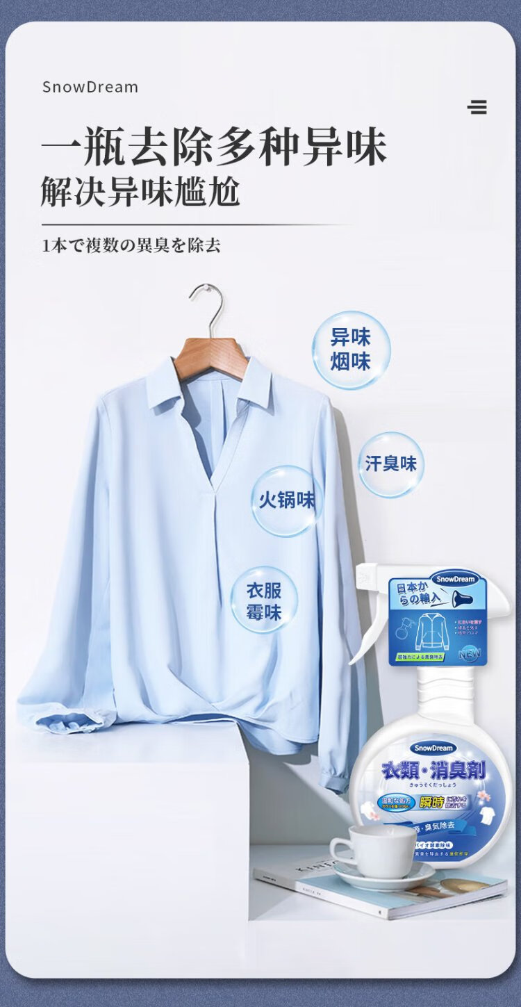 SnowDream Japanese Clothes Deodorizer Spray 300ml Clothes Fragrance Deodorizer to Remove Hot Pot Smell and Smoke Smell and Remove Odor Magical Device