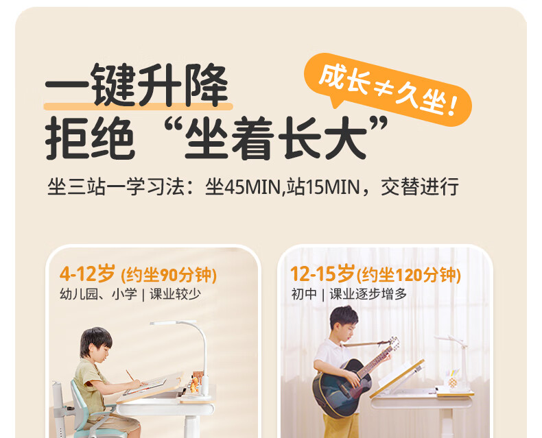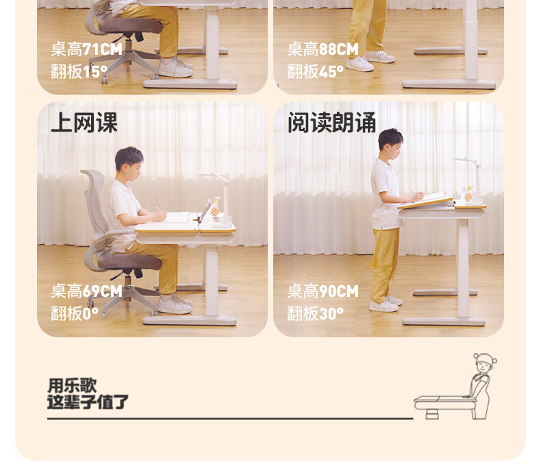 Loctek government subsidy children's study table solid wood electric lift table primary school writing desk home 1.2mT4
