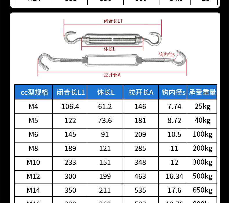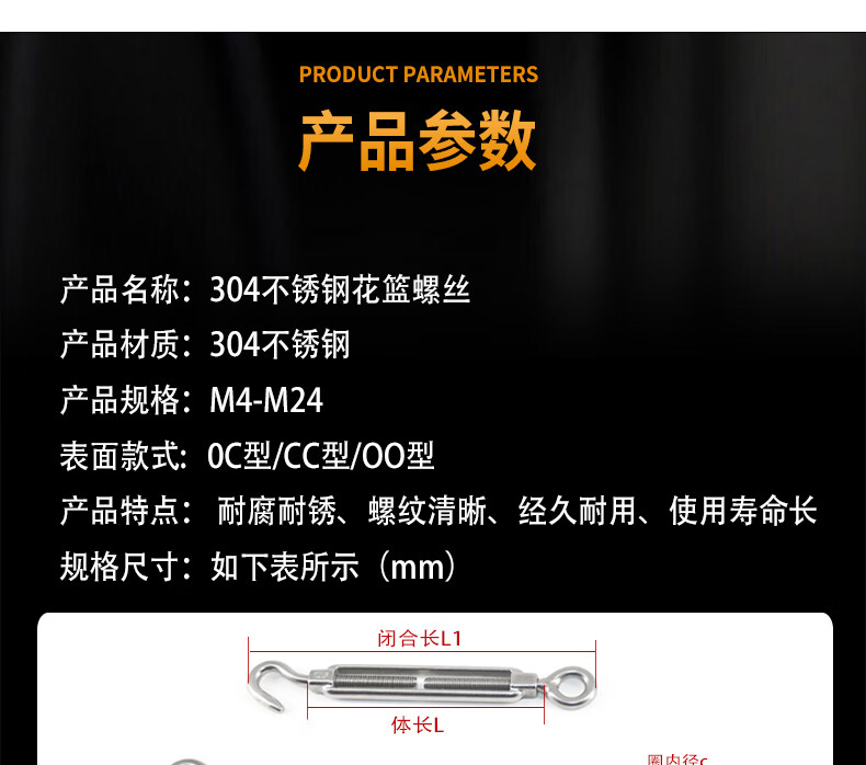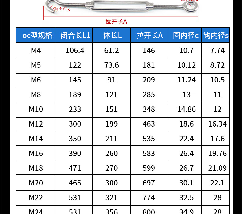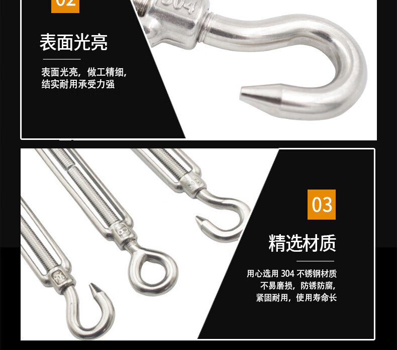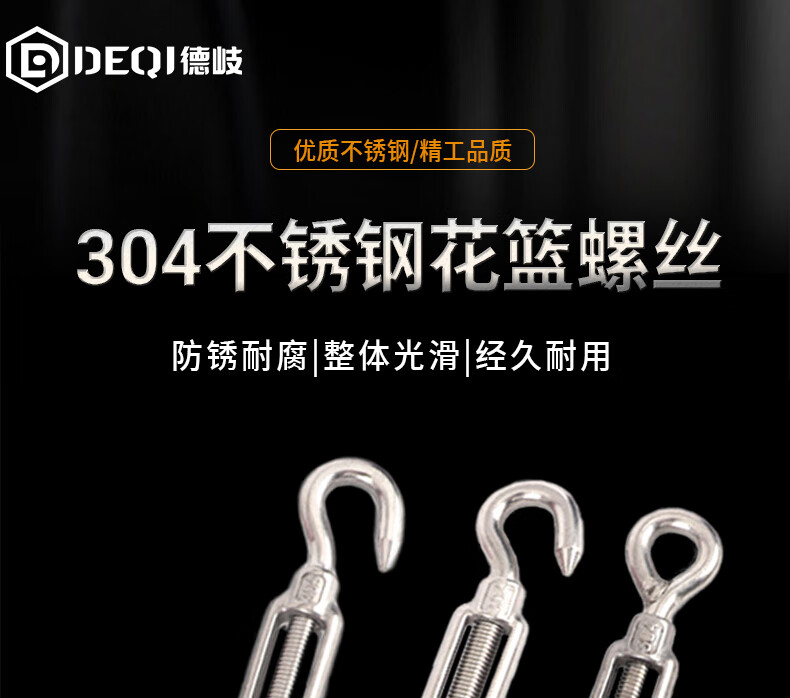 Deqi 304 stainless steel turnbuckle screw OC type wire rope tightener accessories open body turnbuckle bolt M6 OC type