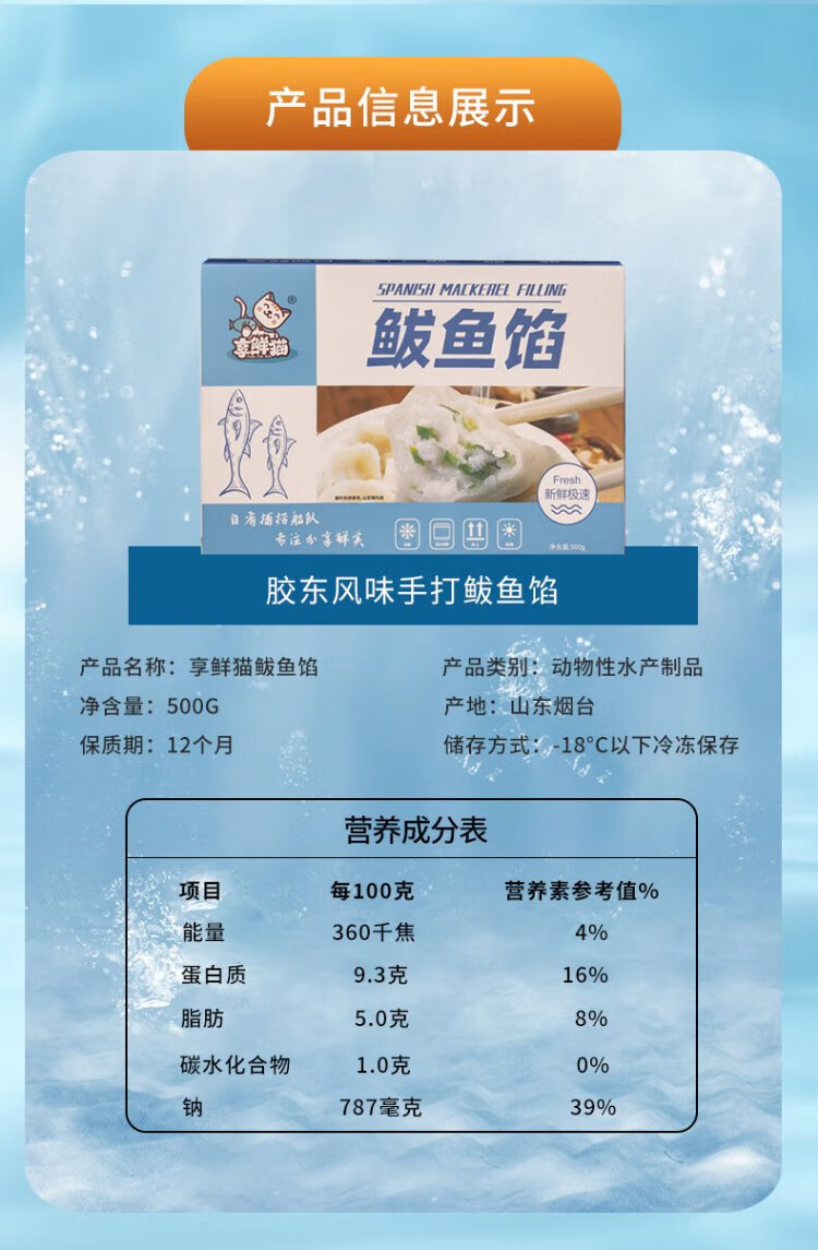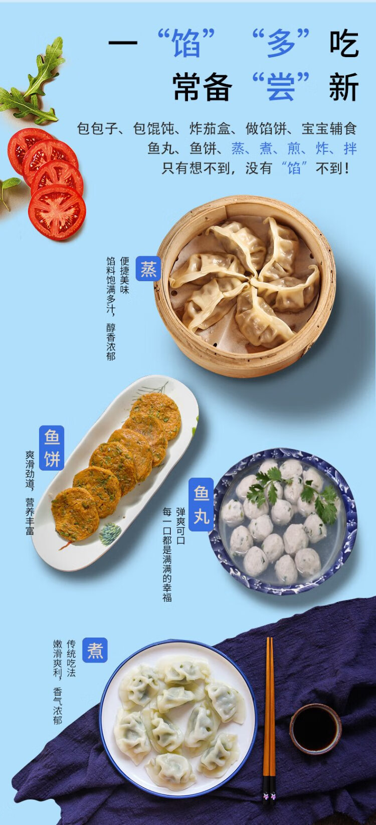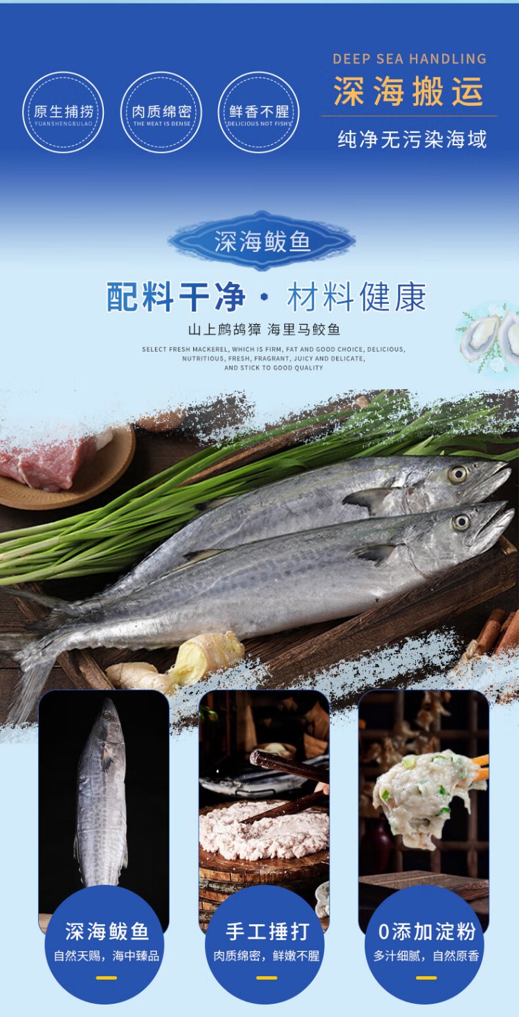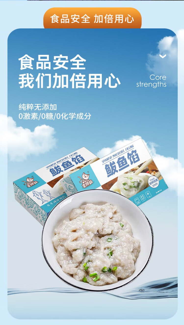 Enjoy fresh cat mackerel filling, seafood dumpling filling, dumpling filling, can make 50 dumplings, 80 wontons, can be made into hot pot meatballs 500g