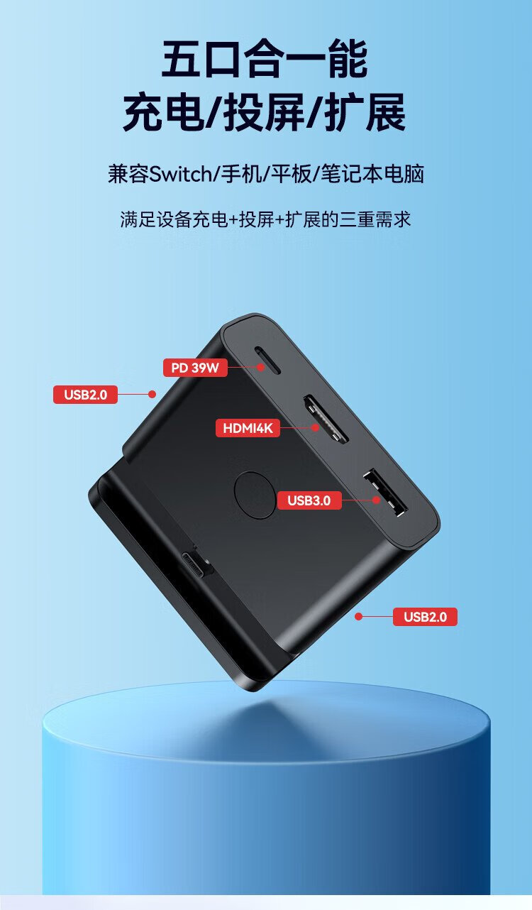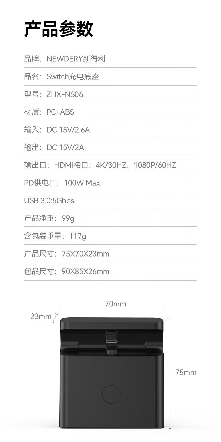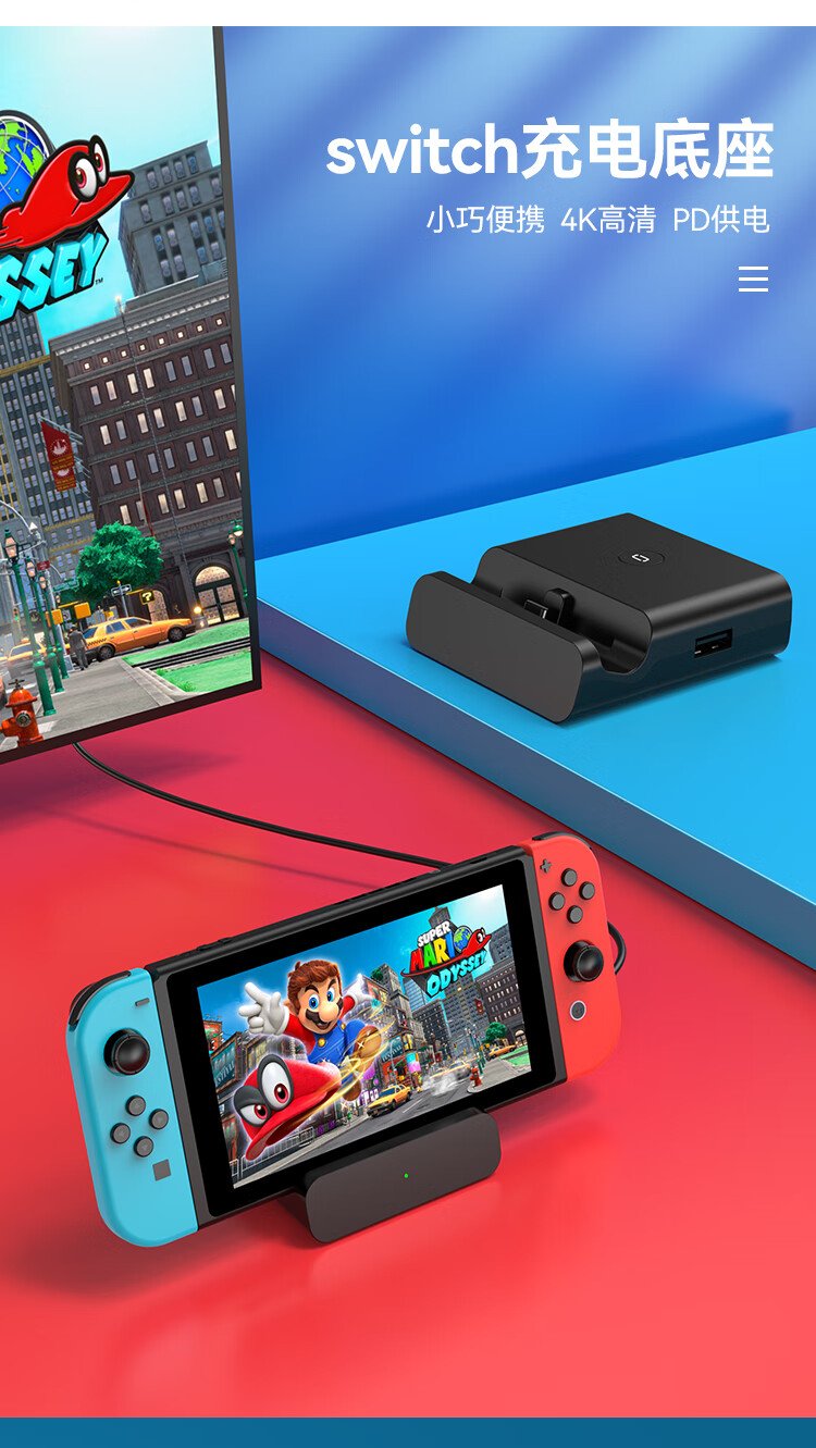 NEWDERY Switch Portable Base NS Charger OLED Screen Cable Host Charging Stand Expansion Dock Lite Game Console Desktop Stand