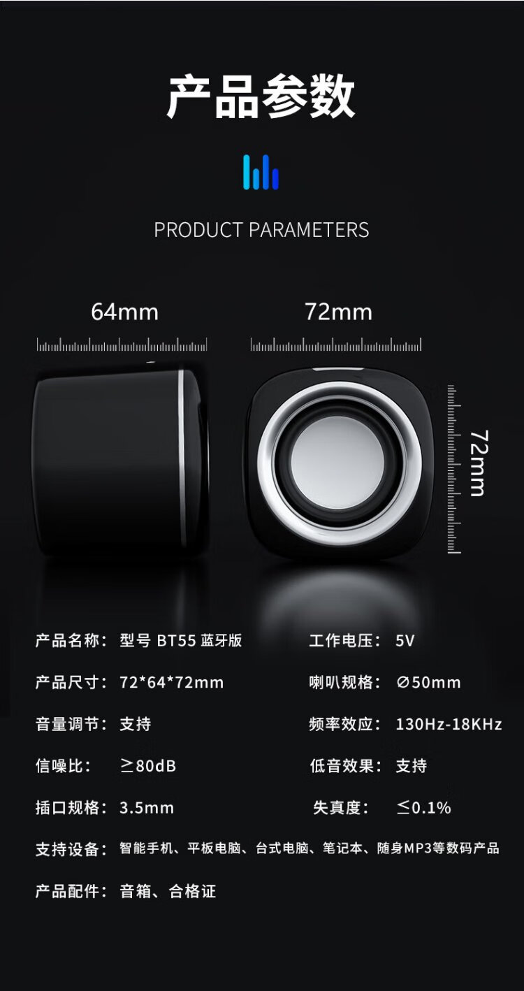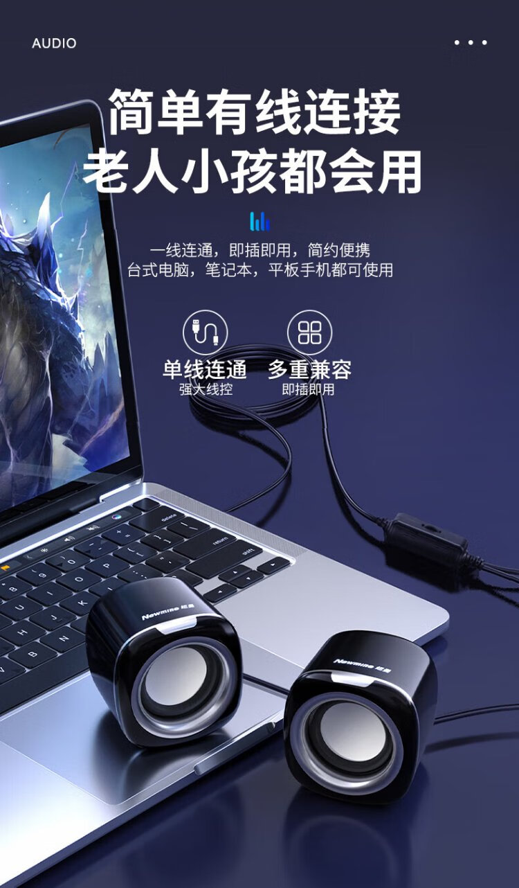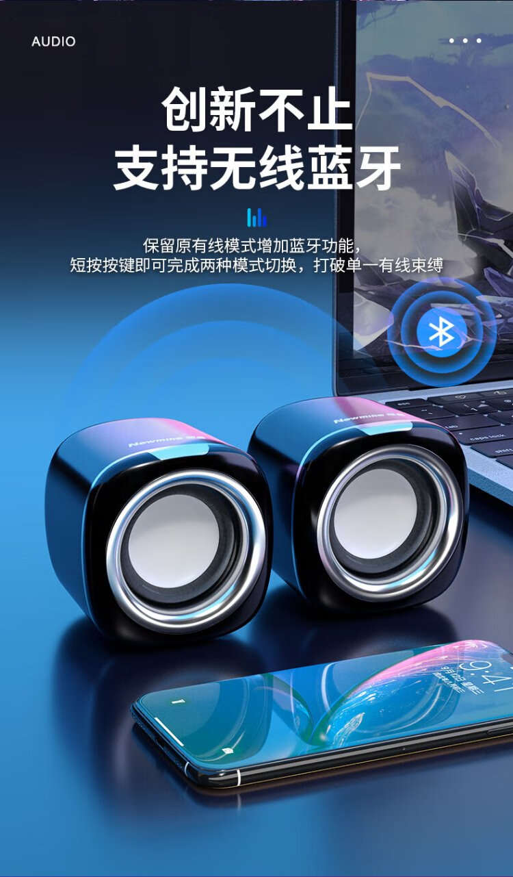 Newmine BT55 audio computer speaker mini Bluetooth small audio multimedia laptop desktop home player desktop small subwoofer black