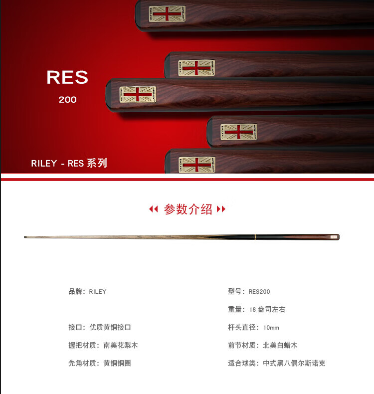 RILEY Riley RES-200 billiard cue black eight small head black 8 Chinese eight-ball snooker middle head table cue 10mm