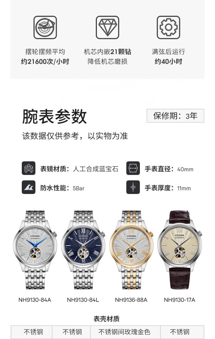 CITIZEN watch men's Japanese and Korean watch automatic mechanical dial belt retro student New Year gift NH9130-17A