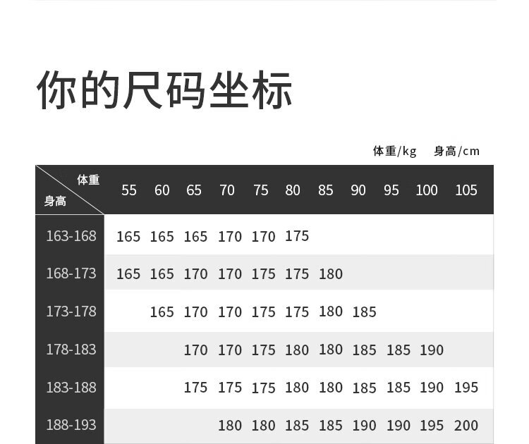 China (cm) 160-165/84-86 165-170 / 88-90 167-172 / 92-96 168-173 / 98-102 170-176 / 106-110