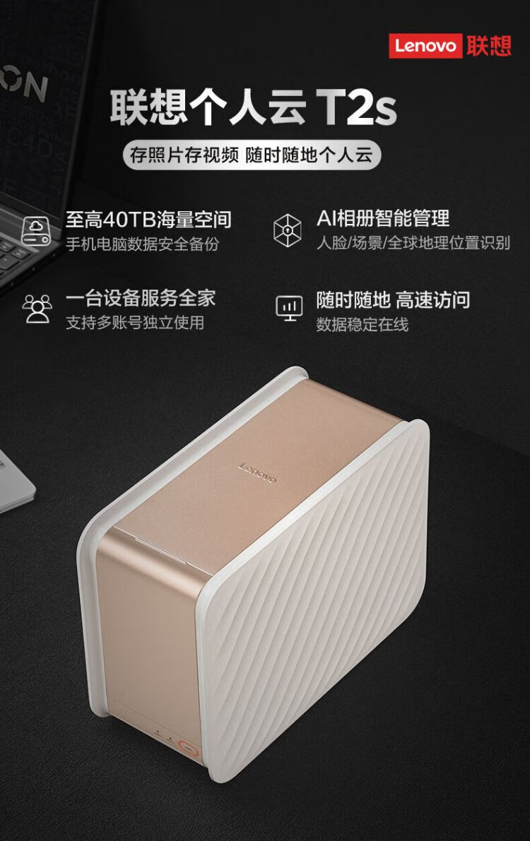 Lenovo Lenovo Personal Cloud T2S dual-disk NAS, including 2 4T Western Digital Red Disk Plus home network storage server, mobile photo album backup private cloud