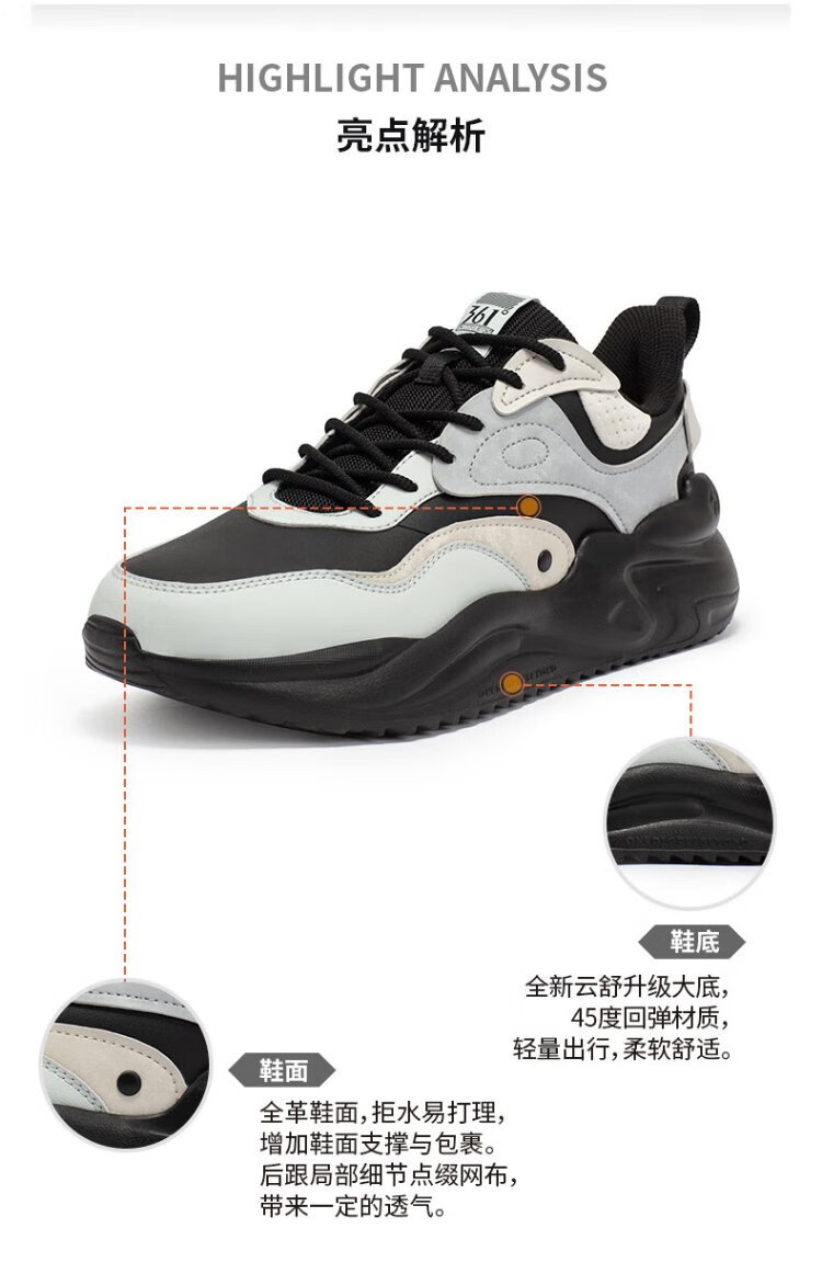 361 Men's Sports Shoes Yunshu 3 Winter Retro Mesh Thick Sole Commuting Casual Dad Shoes Men 672316706-5