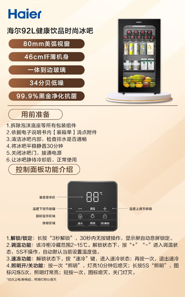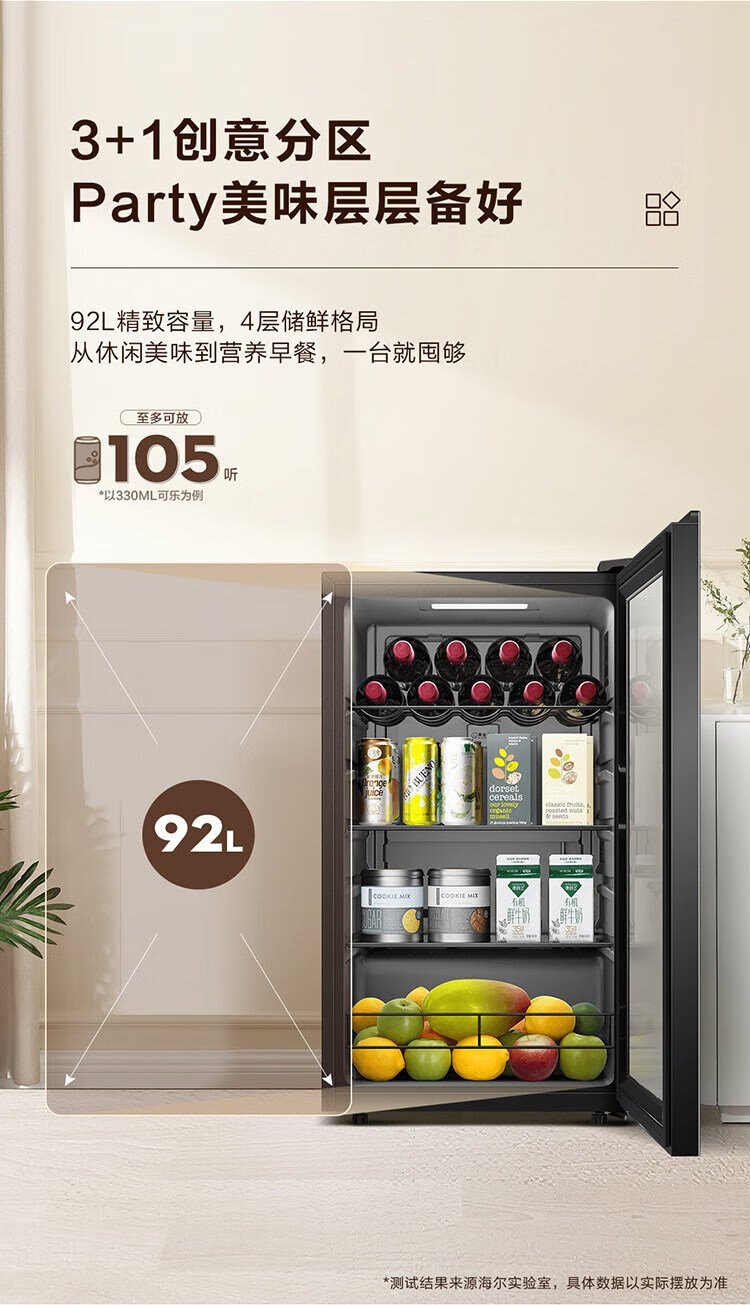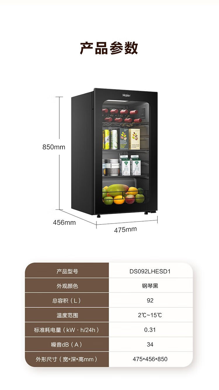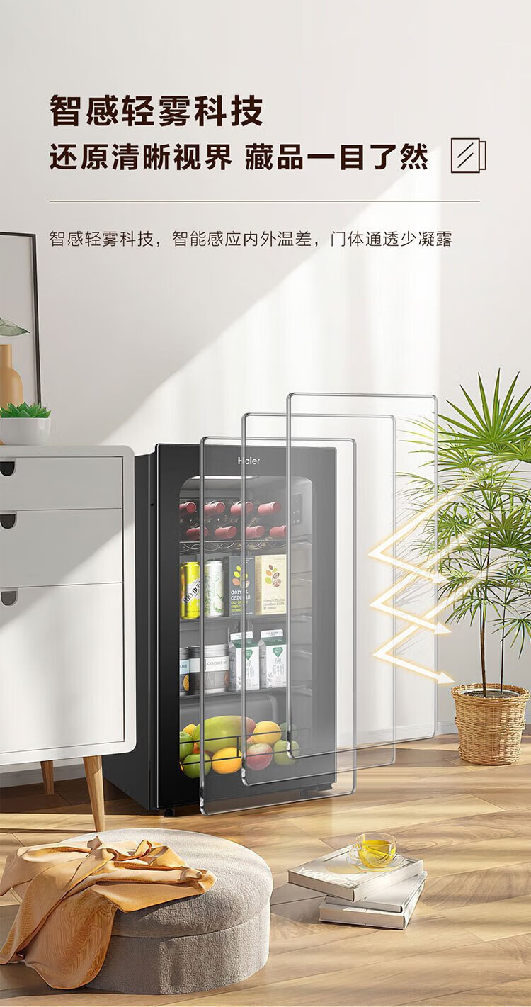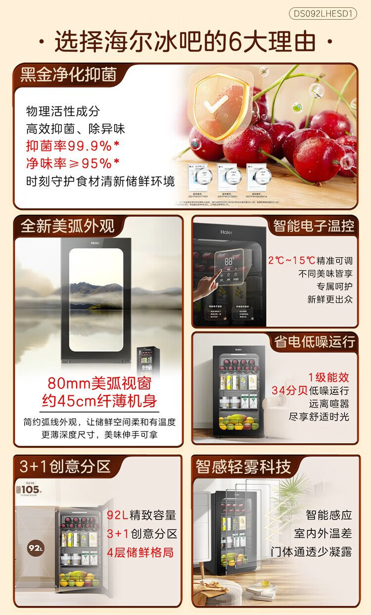 Haier 92L Antibacterial Ice Bar Home Living Room Tea Refrigerator Fresh Cabinet Office Small Refrigerator Small Mini Beverage Fruit Display Cabinet DS092LHESD1 National Subsidy